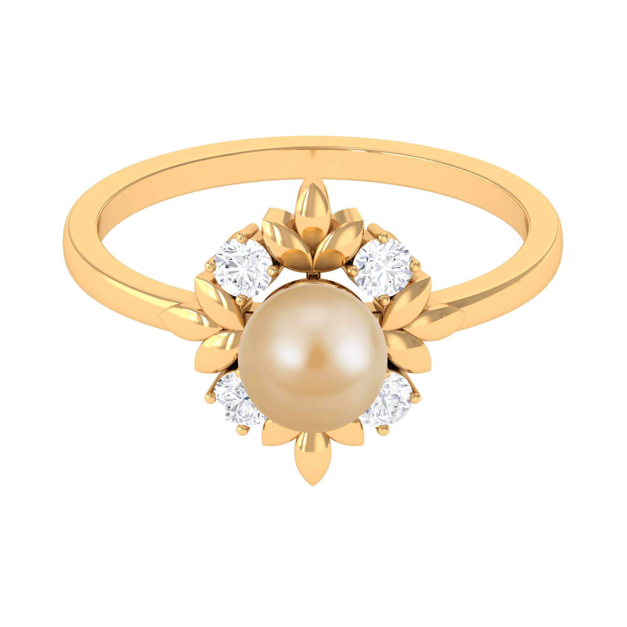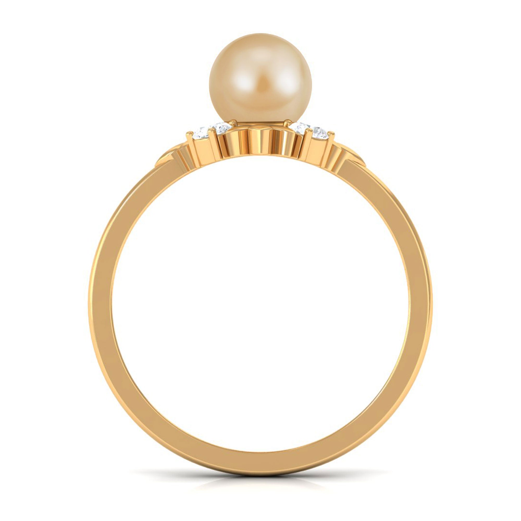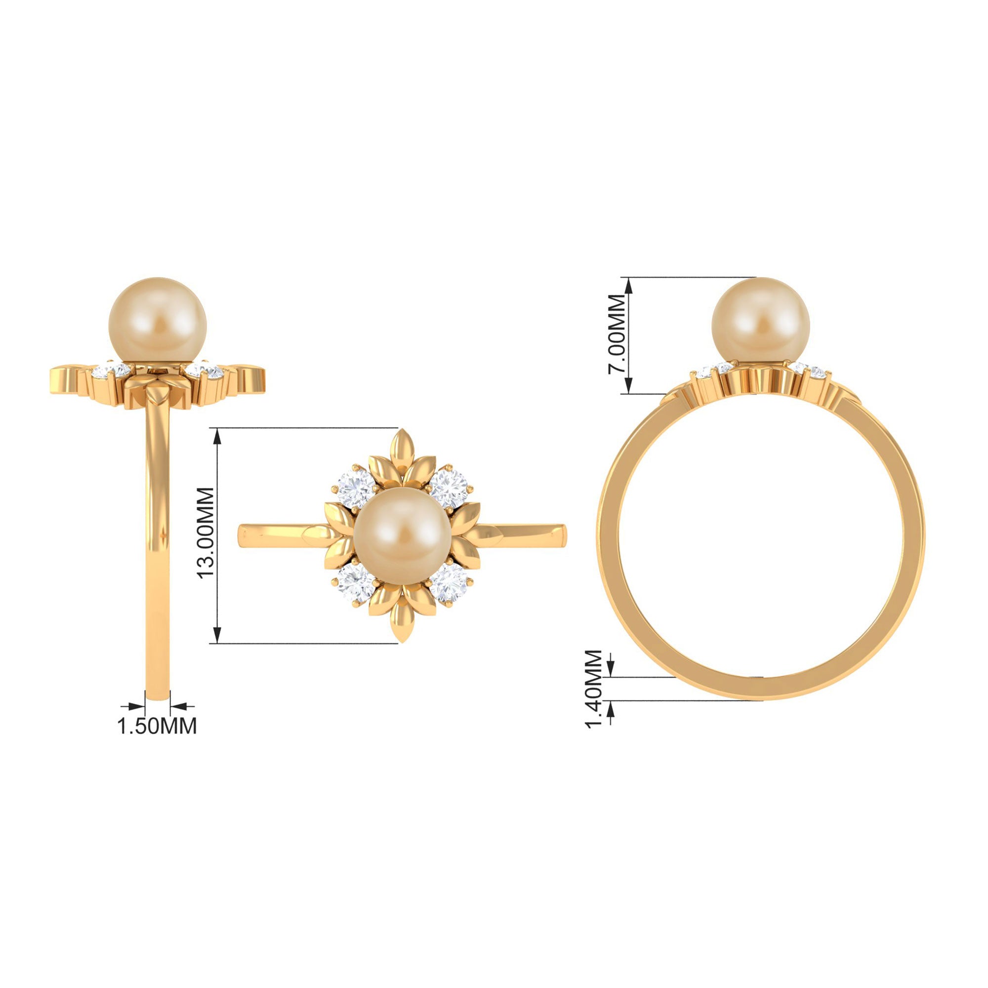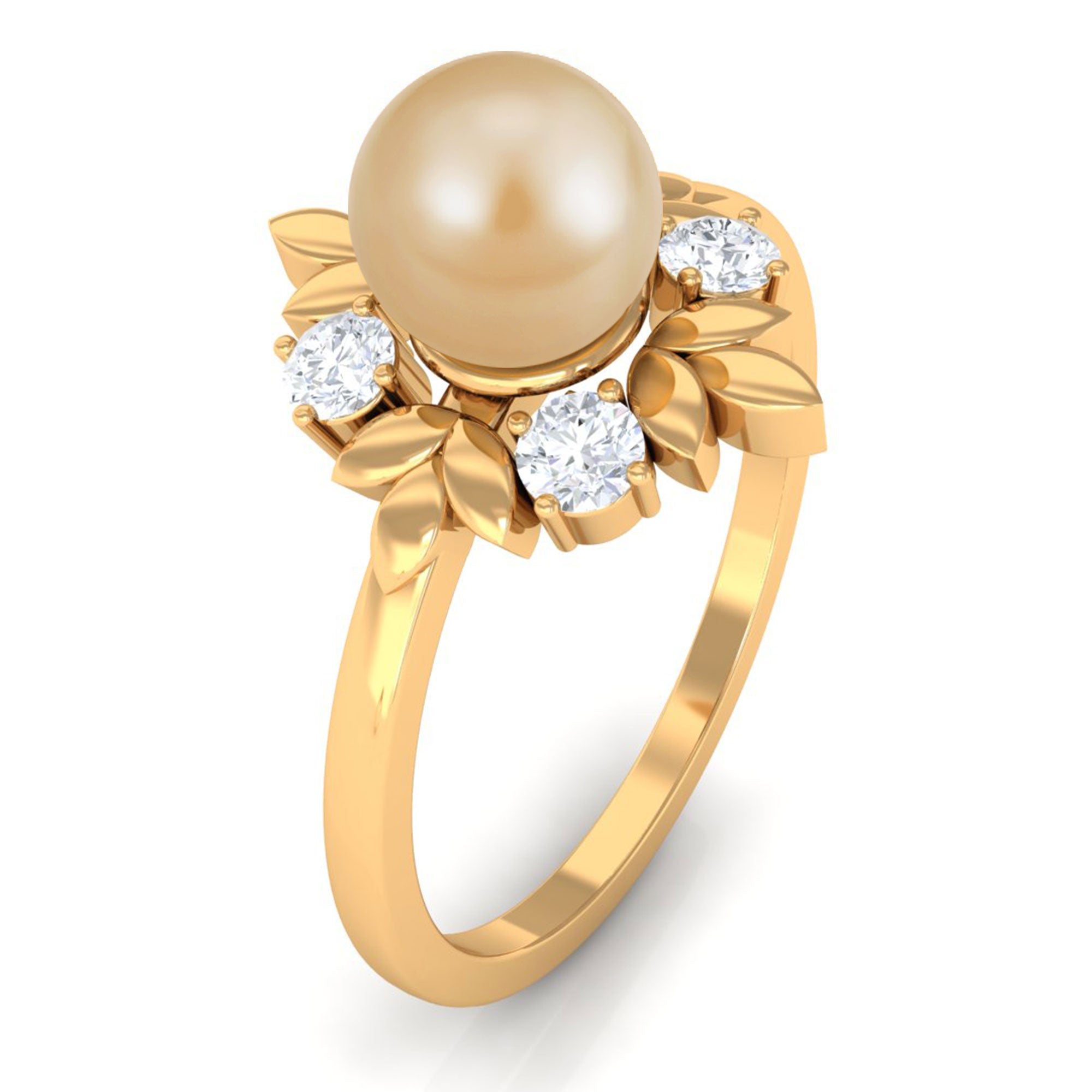 Light up her universe with this dazzling South Sea Pearl Engagement Ring that sparkles like crazy. This absolutely stunning South Sea Pearl Cocktail Engagement Ring will make her fall in love all over again. The Bliss features a gorgeous Round Shape South Sea Pearl in an absolutely gorgeous Diamond accent with gold leaf detail in a minimalistic way.