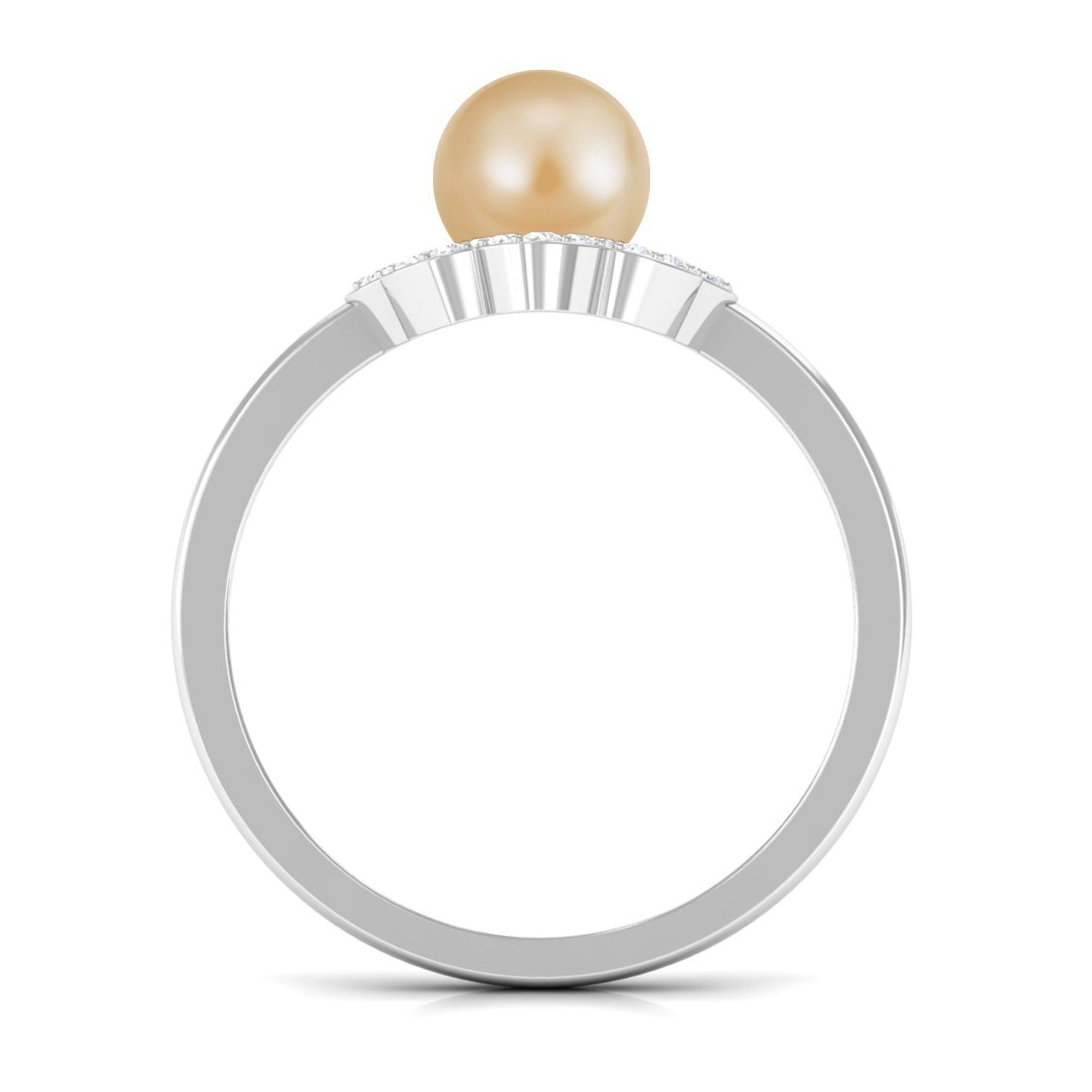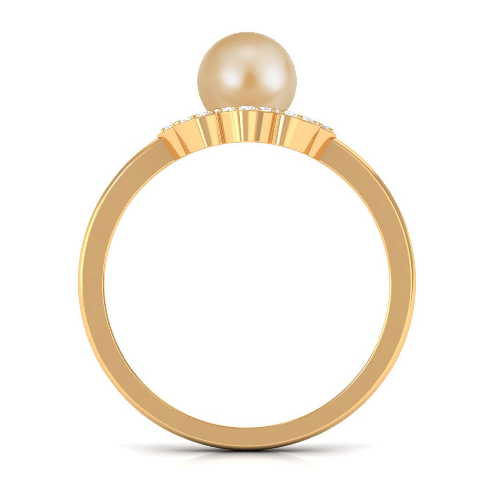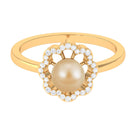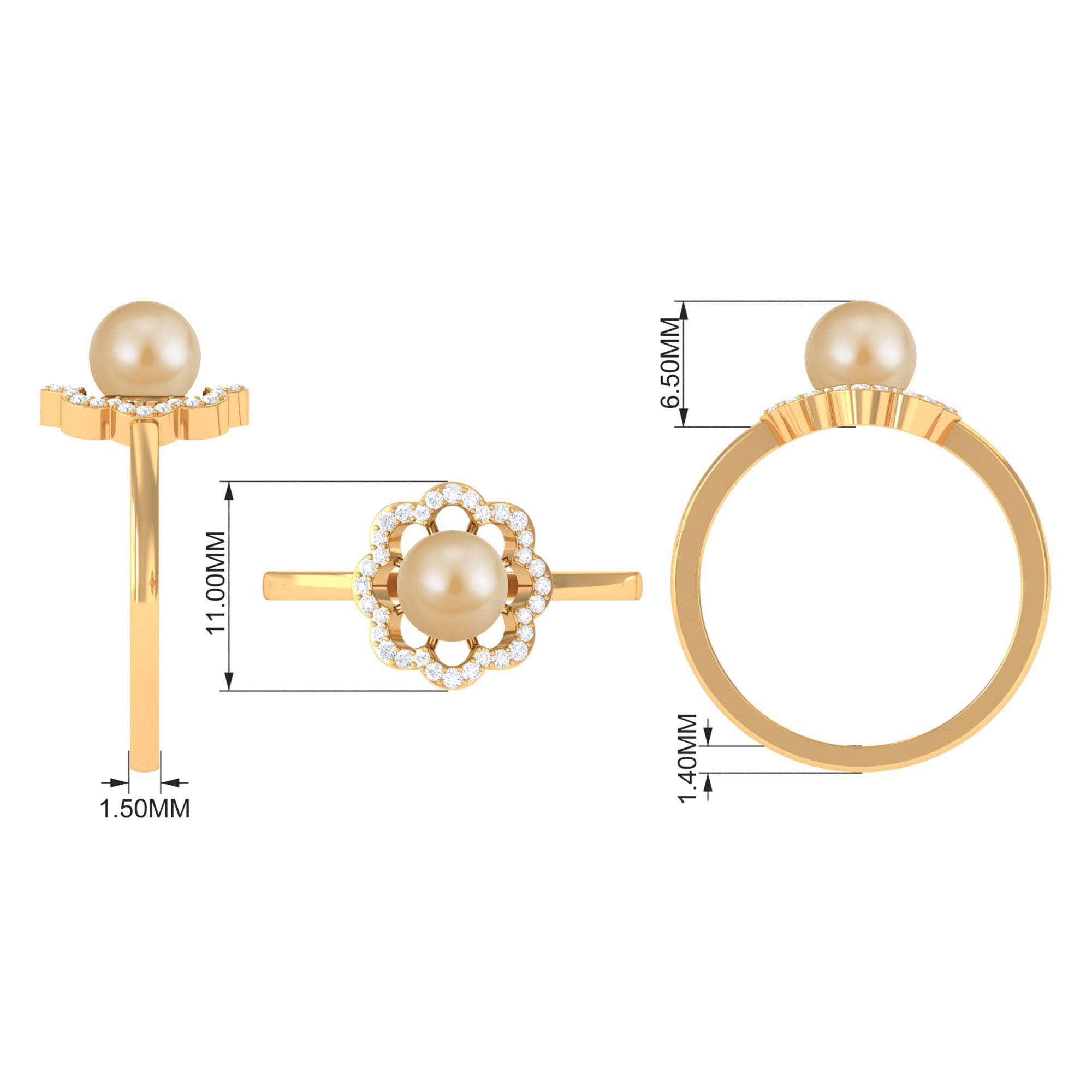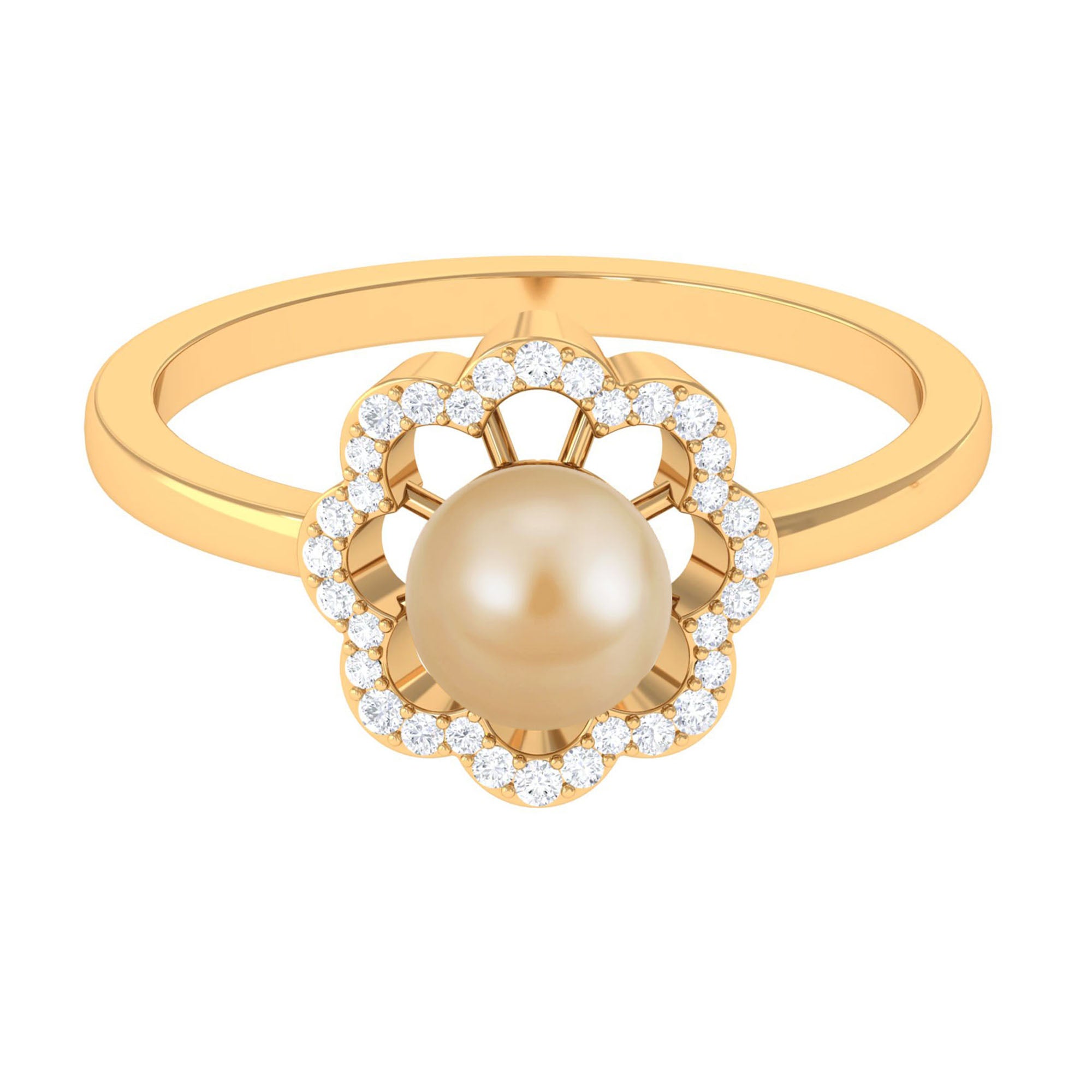 A Simply amazing and Classic South Sea Pearl Diamond Engagement Ring embellished with Round Shape South Sea Pearl is studded as Solitaire with Round Shape Diamond Studded Beautifully as a floral halo in Surface Prong Setting. This beautiful South Sea Pearl Engagement Ring is composed of Gold to make it a piece of womens fine jewelry.