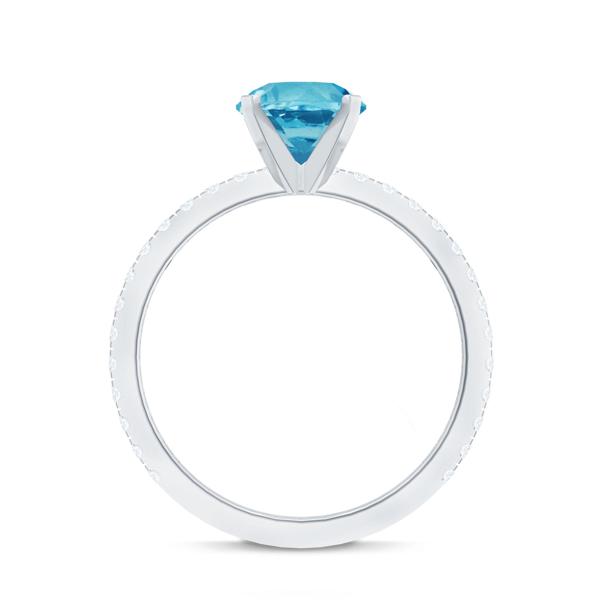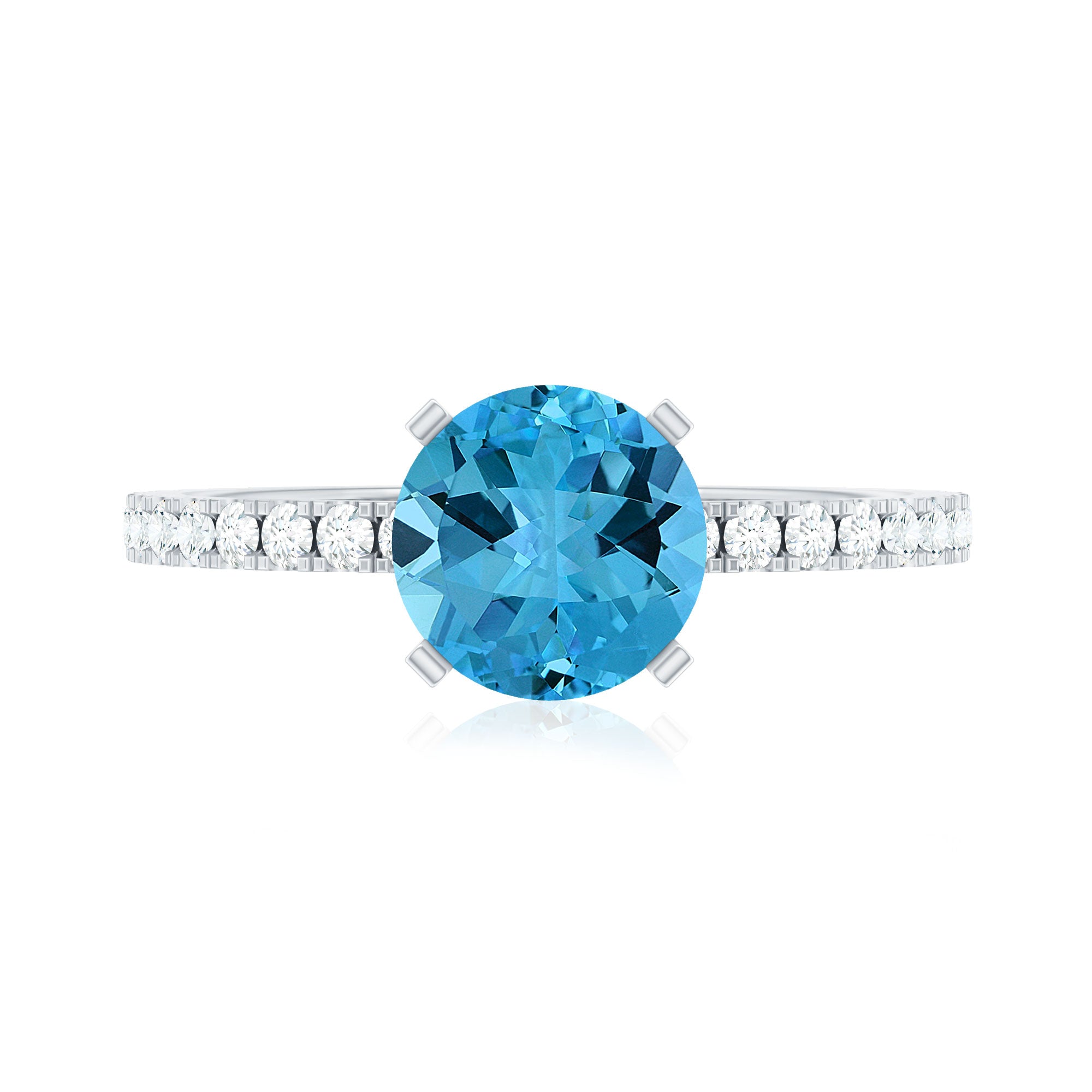 2.75 CT Swiss Blue Topaz Solitaire Ring with Diamond Side Stones