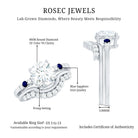 Burst with brilliance when you wear this Diamond Wedding Ring Set, a timeless jewel that is ready to make a statement. This ring set of 2 includes an Engagement Ring with Band, it features a central 8 MM round-shaped lab grown diamond of EF-VS quality set in secure prong setting with round blue sapphire and smaller diamonds set as side stones. The matching Enhancer Band is graced with more diamond stones and perfectly curved to complement the solitaire ring. Whether worn together for a bold statement or separately for versatile styling, this Bridal Ring Set is a true reflection of love and commitment, perfect for the bride-to-be who deserves something extraordinary.