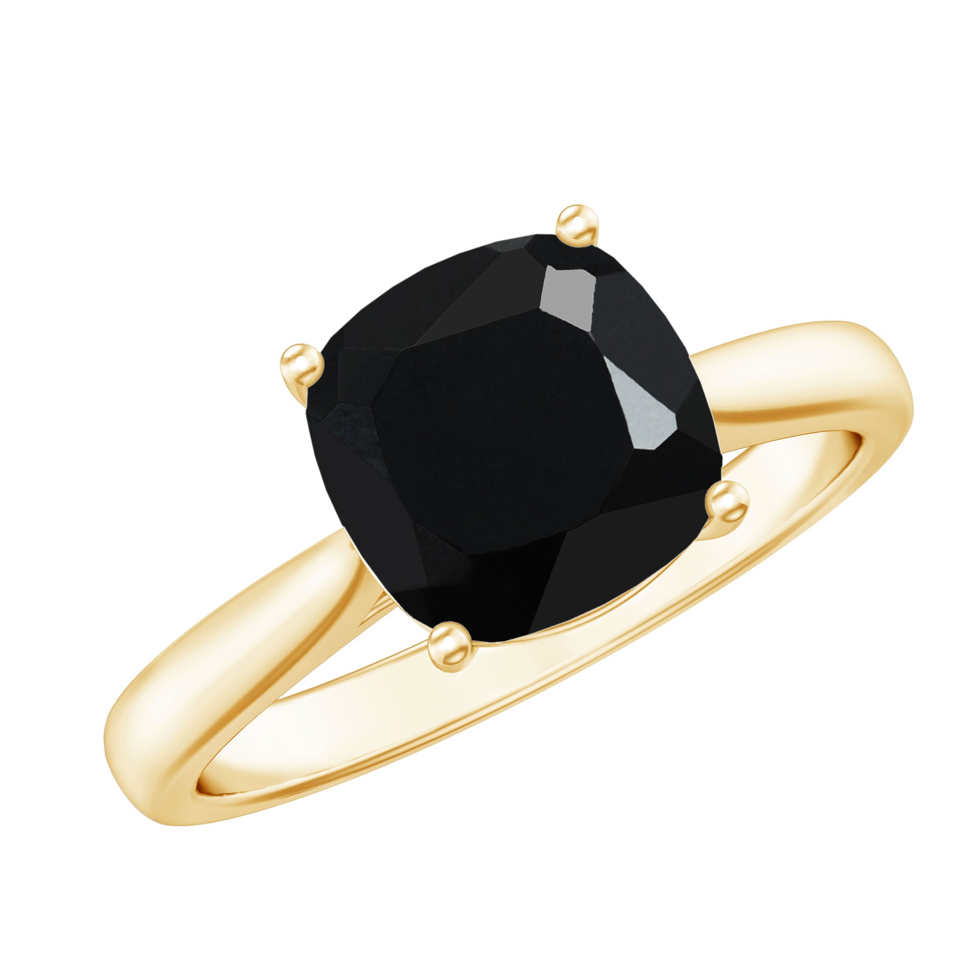 2 Carat Cushion Cut Black Spinel Solitaire Engagement Ring