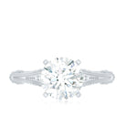 This Diamond Engagement Ring completes the moment when love is in the air, it is curated with intricate detailing to shine with timeless beauty. At its heart, an 8 MM round cut lab grown diamond of EF-VS quality commands attention, set in a secure prong setting. The band of this Vintage Style Engagement Ring is a true work of art, featuring an antique design decorated with small diamonds and fine beadwork. This Lab Grown Diamond Ring comes with a certificate of guarantee for quality assurance and comes packaged in a chic, protective box, ideal for gifting or safe storage when not in use. Whether you are a bride looking for a Solitaire Ring or someone who appreciates old-world inspired pieces for special occasions, this ring will surely add a unique touch to your style.