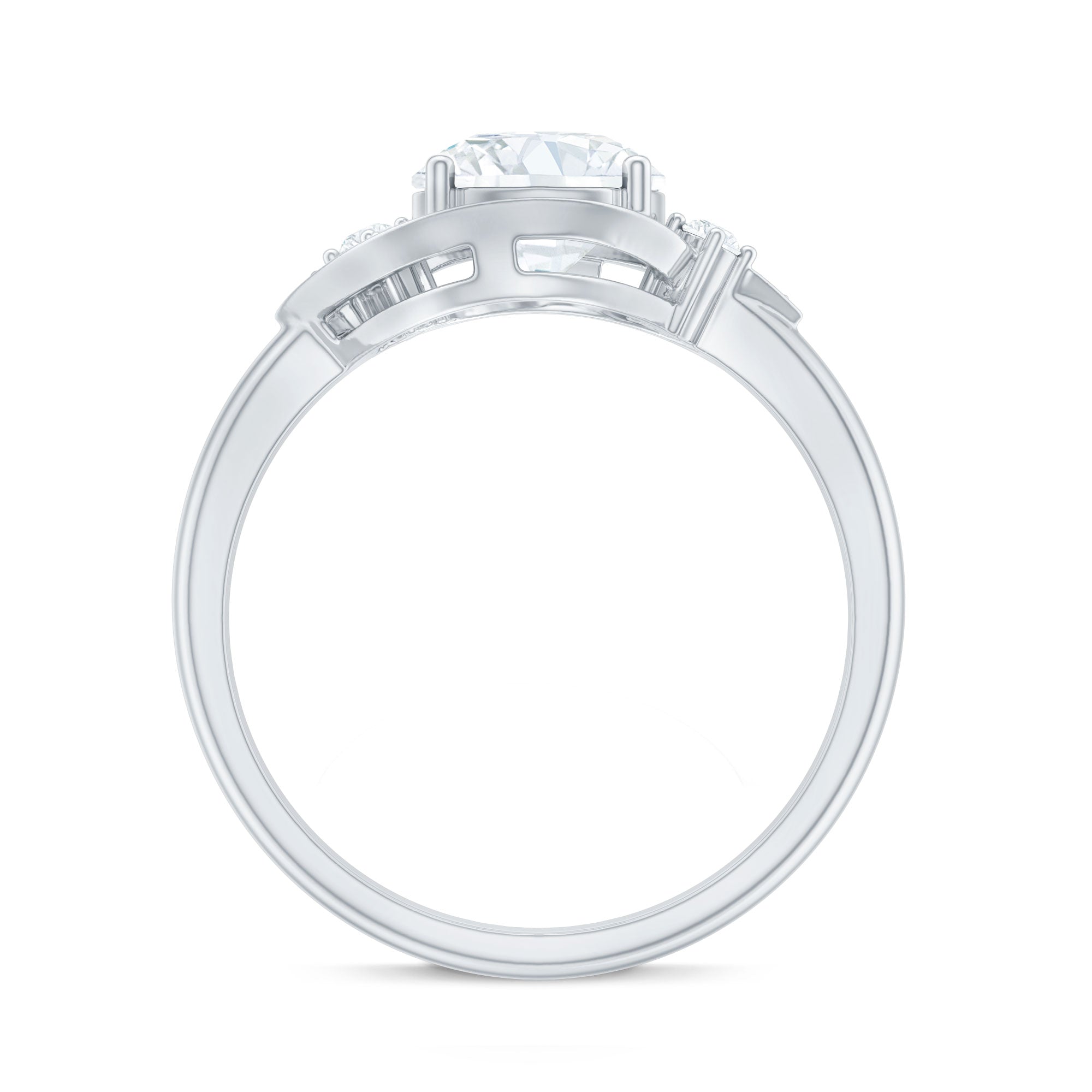 Proclaim your love in sophisticated style with this gorgeous Lab Grown Diamond Engagement Ring. This breathtaking Bypass Engagement Ring features a 2 carat Diamond of round shape set in prong setting with a bypass shank that symbolizes two souls intertwining as one. The curved design is adorned with a series of sparkling accent diamonds, meticulously set along the shank to enhance its brilliance. All the diamonds in this Classic Ring are lab-grown, and produced in an ethical and eco-friendly way. Utterly enchanting this Round Cut Diamond Ring has a graceful radiance with an undeniable charm which is perfect to celebrate your one-of-a-kind love.