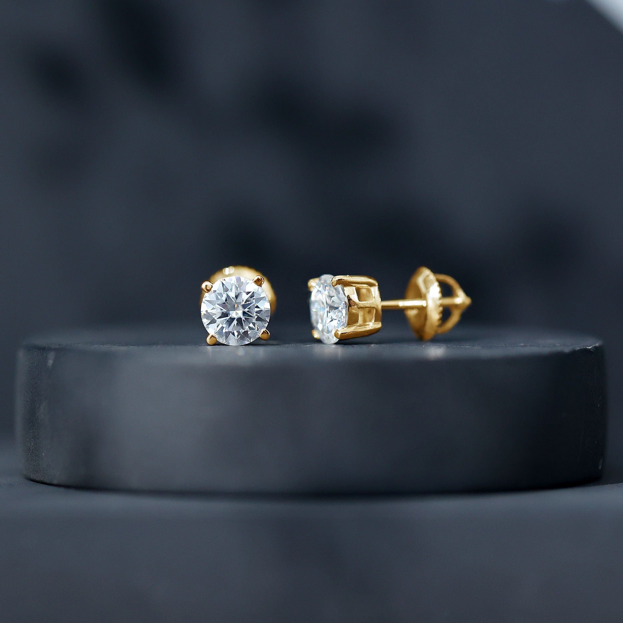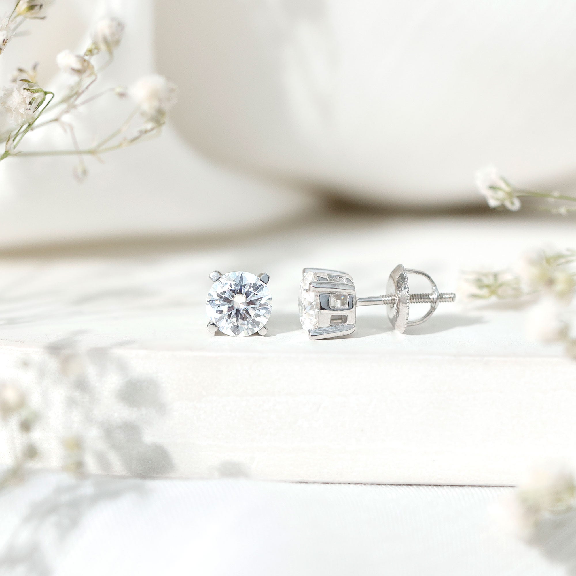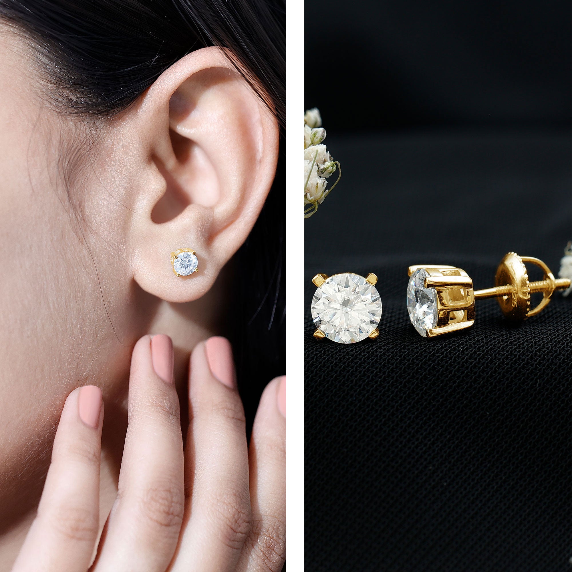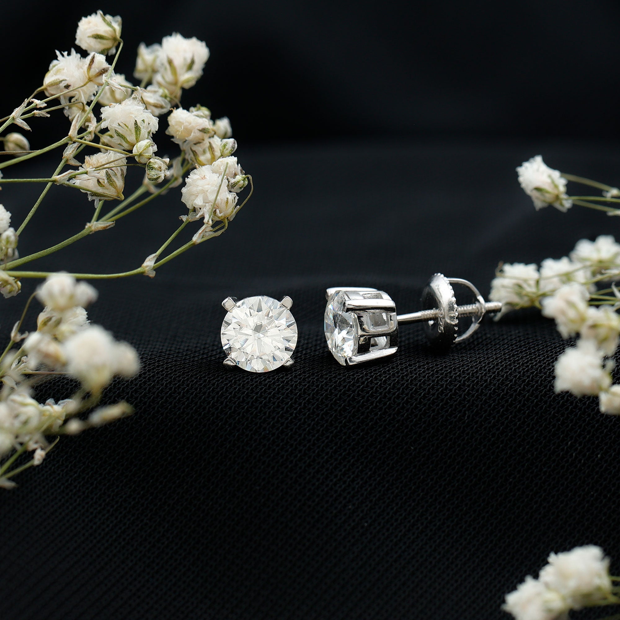 2 Carat Moissanite Solitaire Stud Earrings with Screw Backs