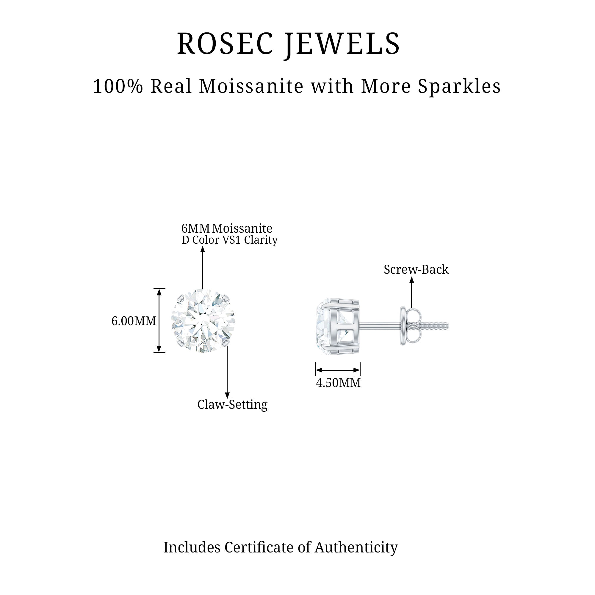 A little sparkle goes a long way - and these Solitaire Moissanite Stud Earrings prove it effortlessly. Designed for those who love confident jewelry, these studs feature 6MM round brilliant cut moissanites held securely in claw setting. With a total weight of approximately 2 carats (1 carat each stud), they deliver eye-catching shine without feeling too much for everyday wear. The setting allows light to hit the stones from every angle, giving off that unmistakable moissanite fire. Crafted with D color, VS1 clarity moissanites, these studs offer exceptional brilliance that rivals traditional diamonds. Their classic solitaire style keeps things versatile, making them easy to wear with casual outfits, workwear, or dressed-up evening looks. The design works beautifully for both men and women, adding just the right amount of sparkle to any look. Comfort matters too. That is why these Solitaire Earrings come with secure screw-back closures, so they stay in place all day long. Whether you wear them daily or save them for special moments, these 2 CT Moissanite Earrings fit right into any jewelry routine.