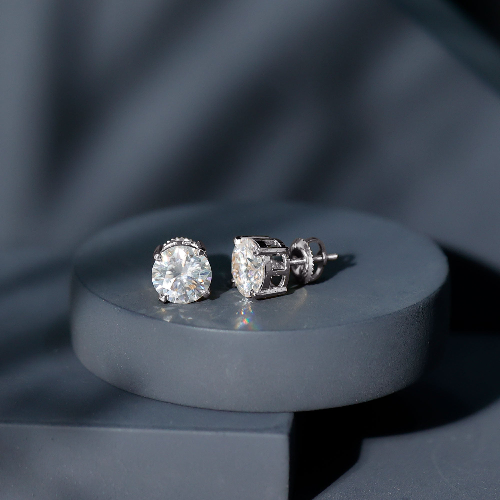 2 Carat Round Cut Moissanite Solitaire Stud Earrings