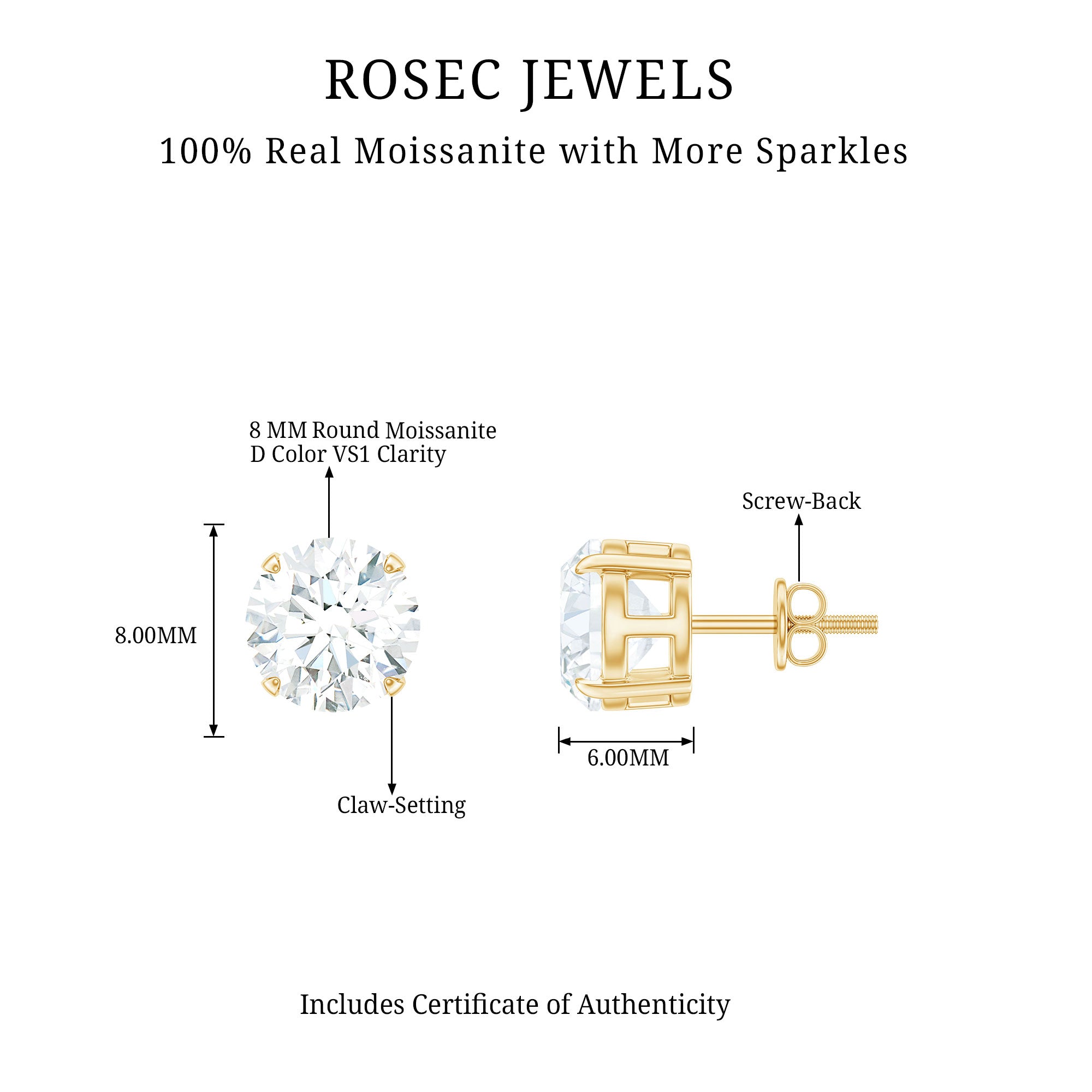 The little sparkle of these Moissanite Stud Earrings will brighten your everyday look. Each earring holds an 8 MM round moissanite in secure claw setting, allowing the stone to shine beautifully from every angle. The simple design makes them easy to match with any outfit, whether you are going to work, heading out casually, or dressing up for a special event. A screw back closure keeps the Solitaire Stud Earrings comfortably in place, making them a great choice for all-day wear. The moissanites are eco-friendly and ethically created, making the 2 Carat Stud Earrings a thoughtful option for anyone who values sustainability. This pair comes with a certificate of authenticity to confirm its high quality. Packaged in a lovely jewelry box, the Everyday Earrings are perfect for gifting on birthdays, anniversaries, or any meaningful moment. They also make a wonderful treat for yourself if you enjoy simple, bright jewelry. These Moissanite Earrings become an easy favorite for everyday wear and special occasions alike.