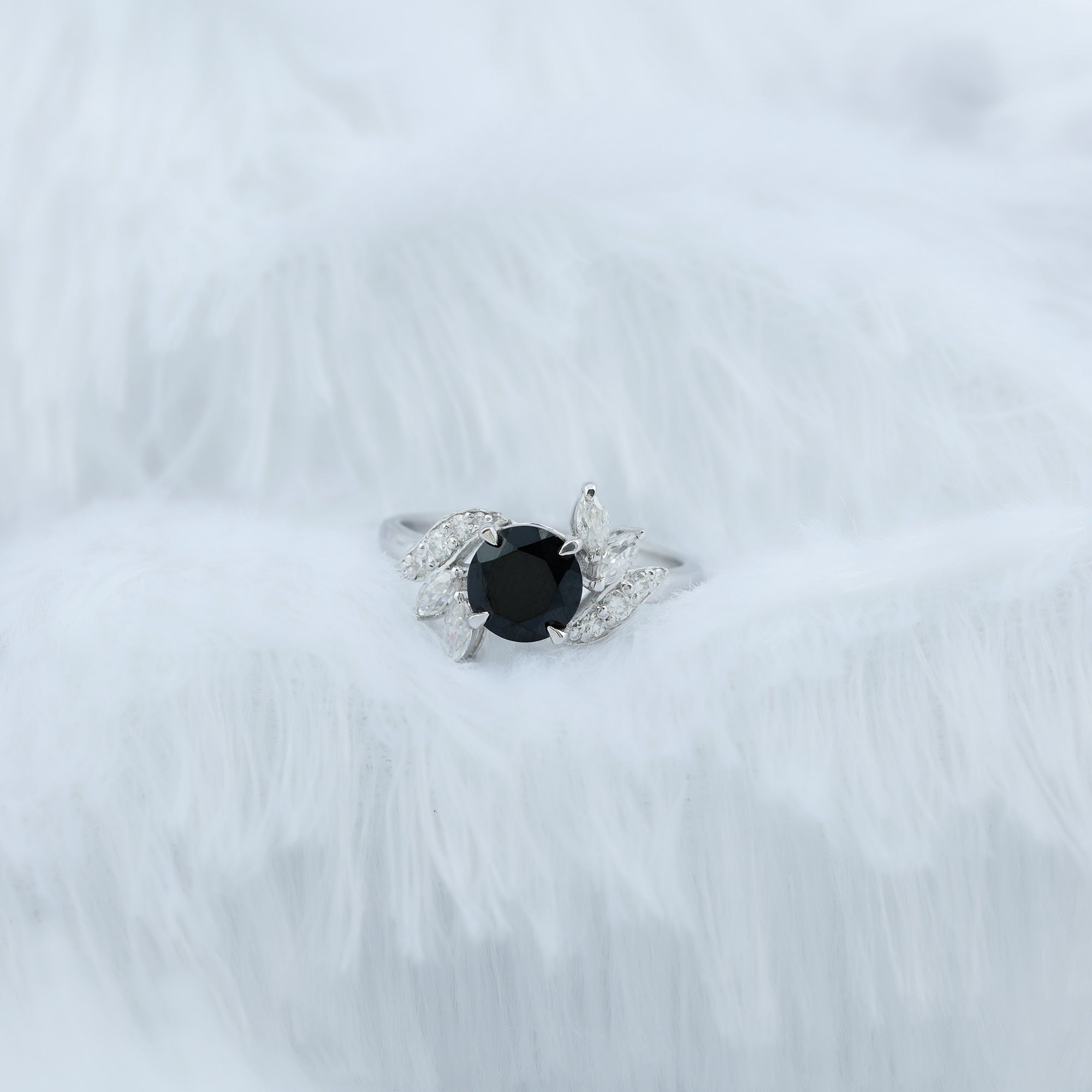 2 CT Black Spinel Flower Engagement Ring with Diamond