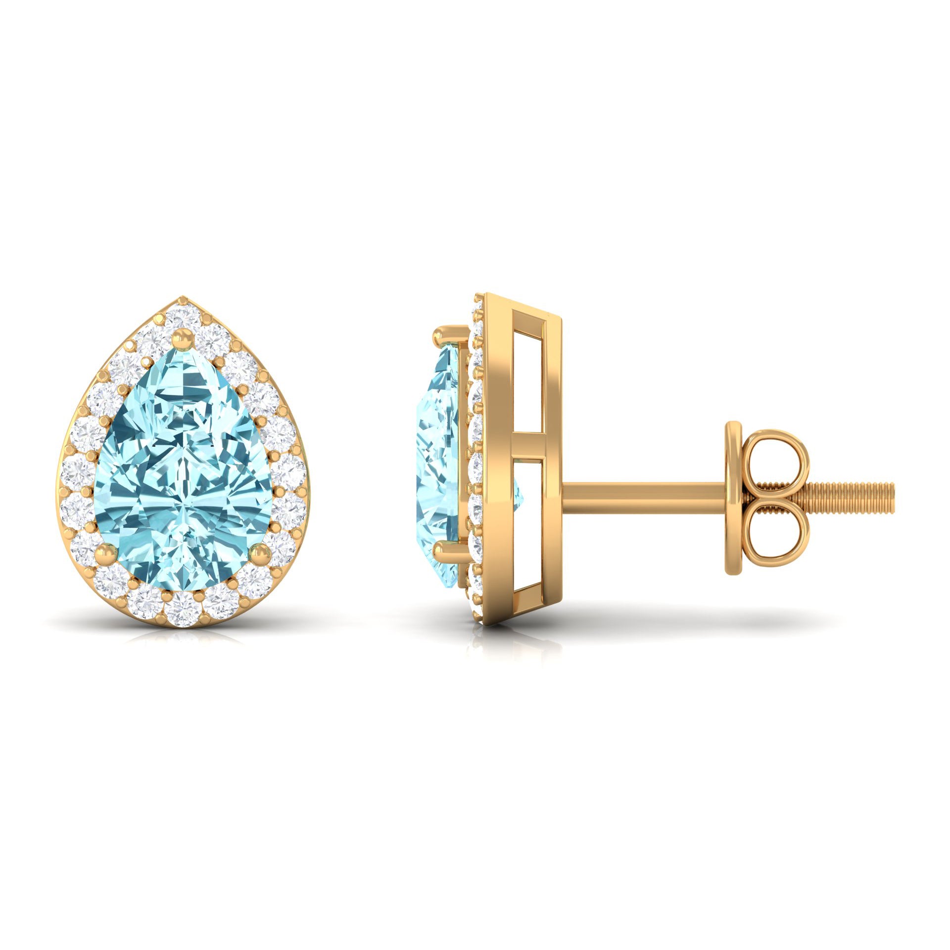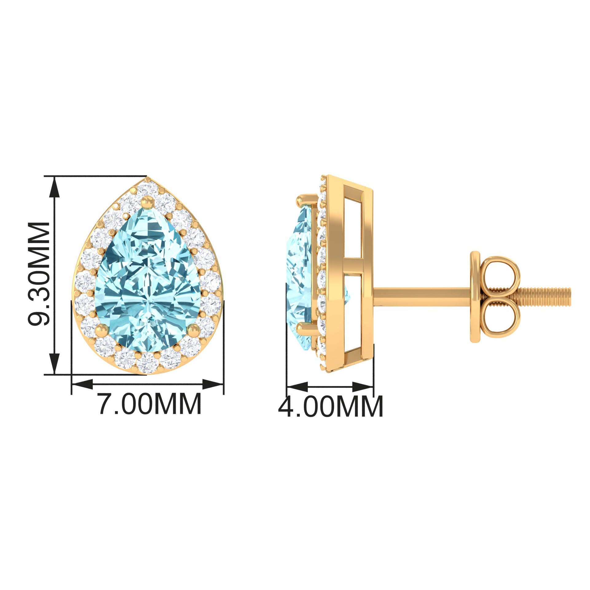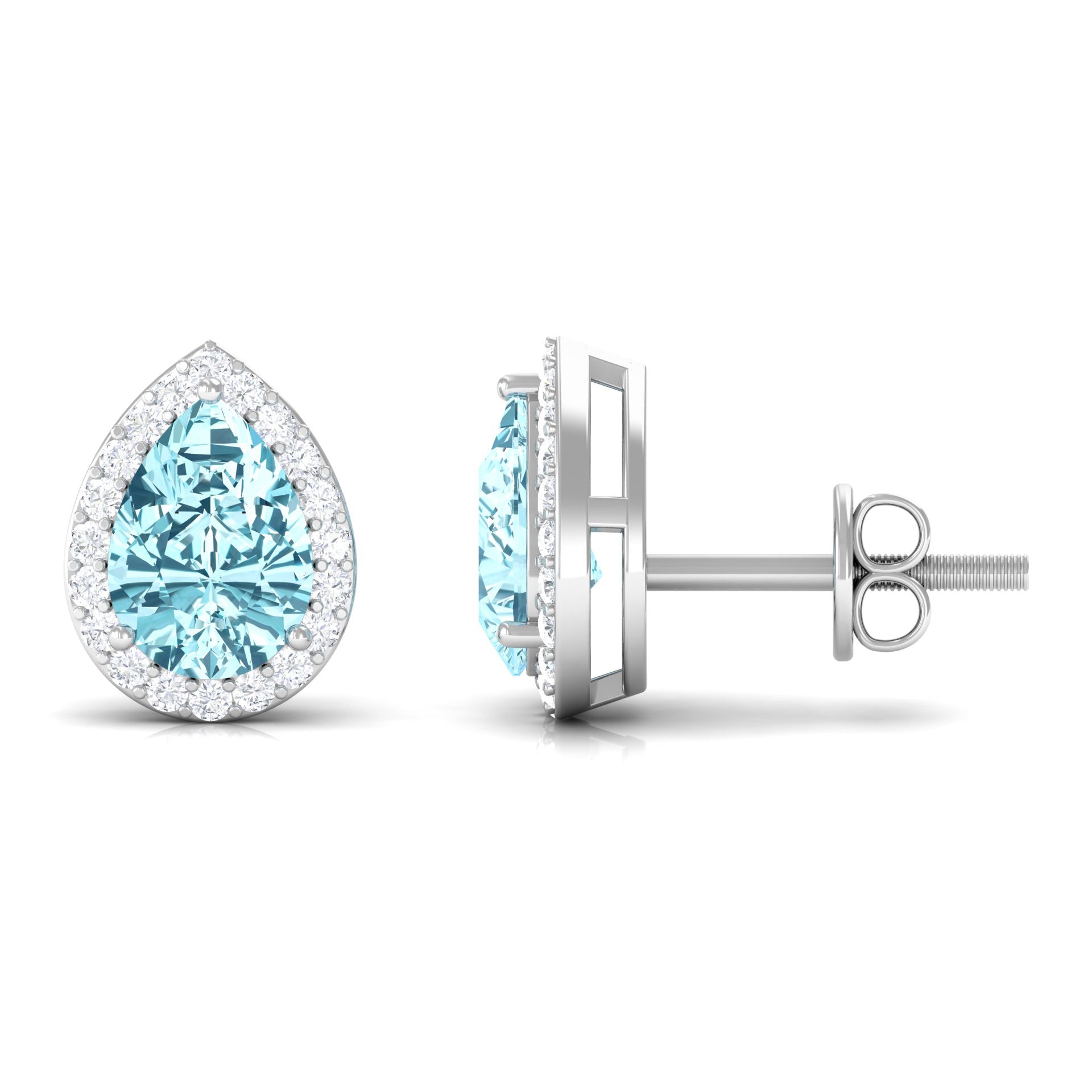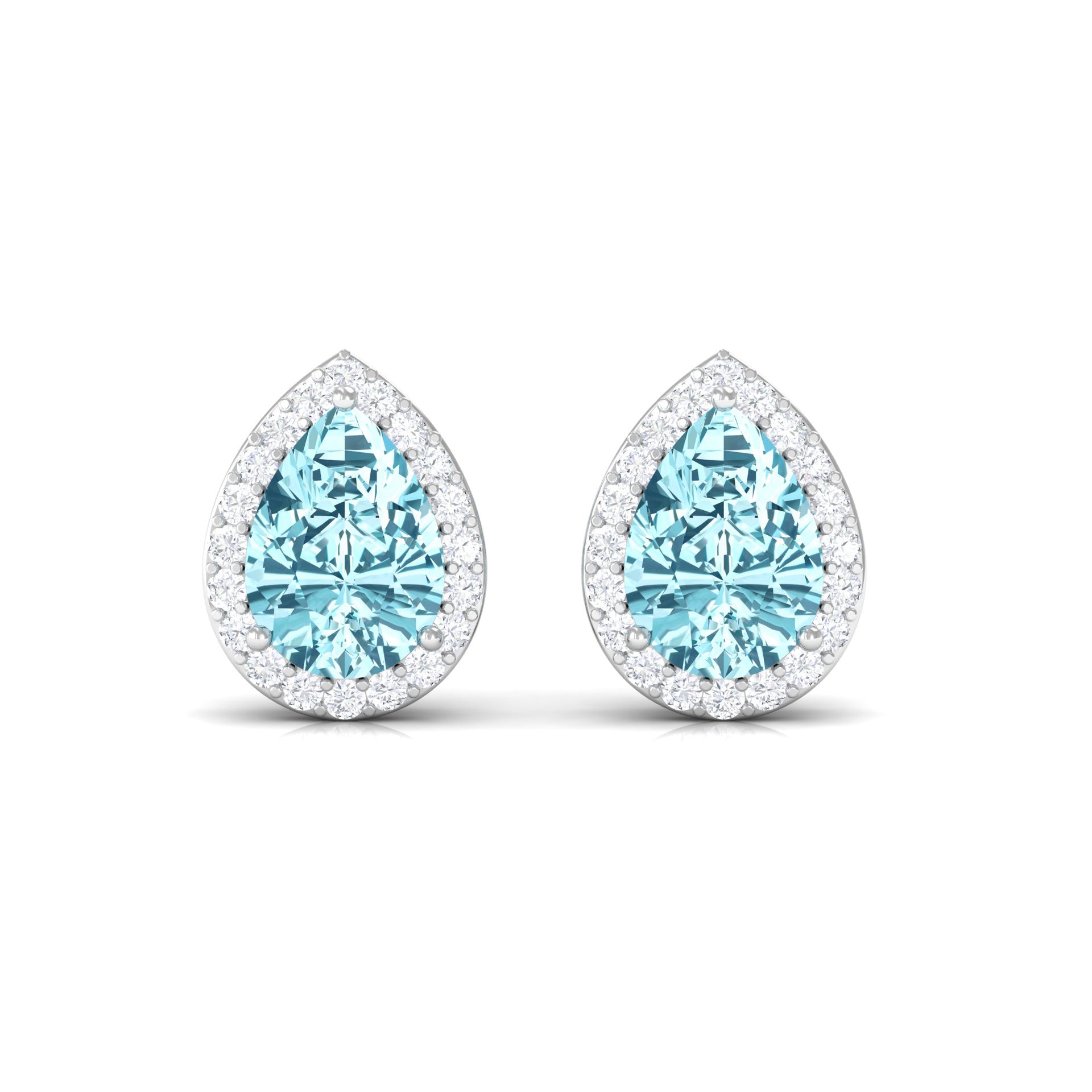 Natural Pear Shape Aquamarine Stud Earrings with Diamond Halo