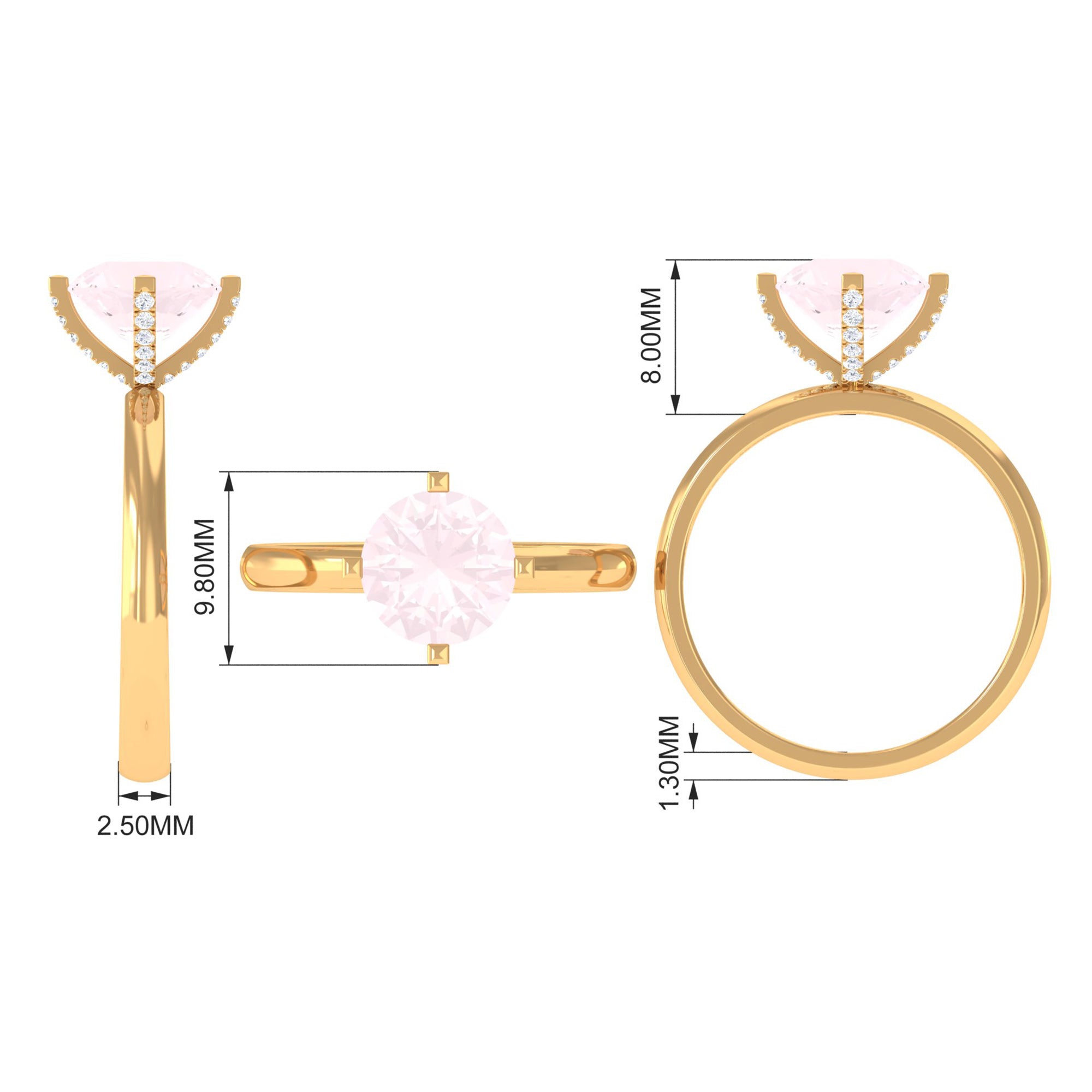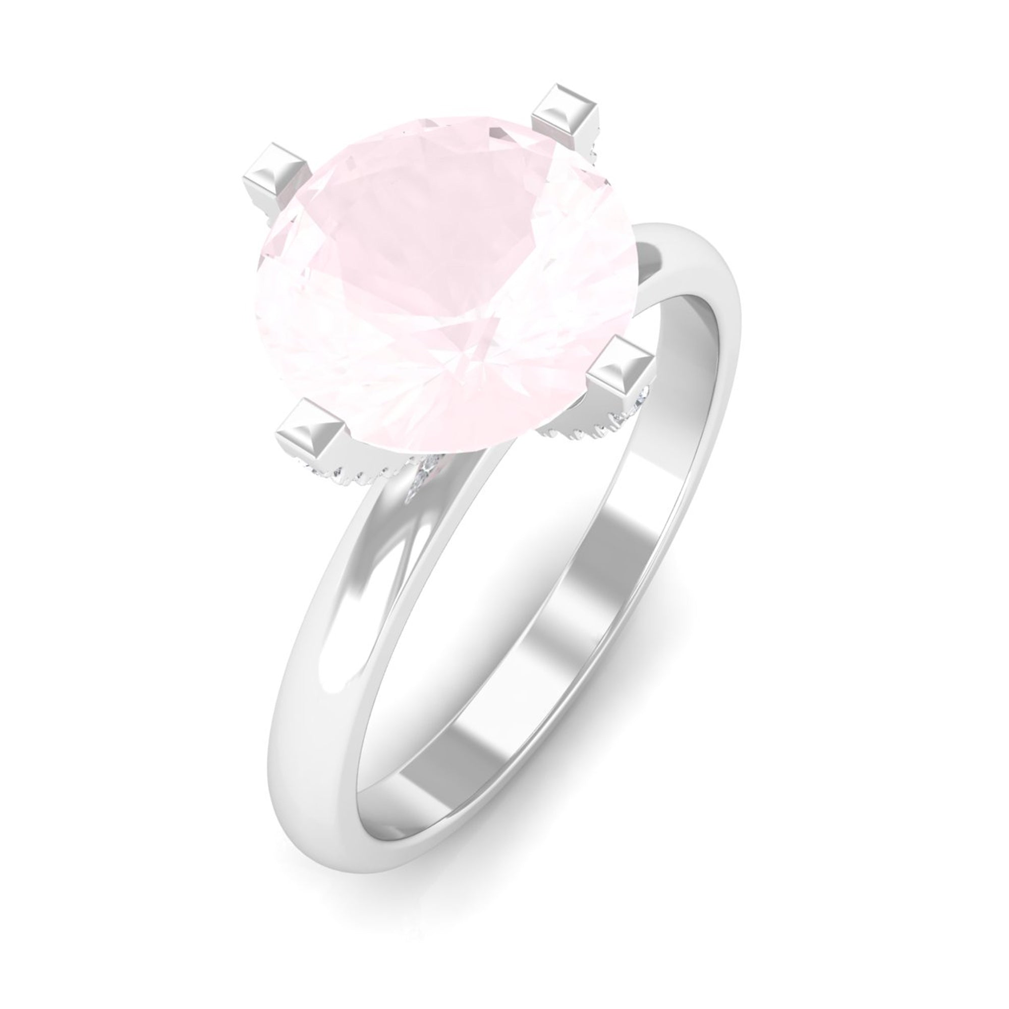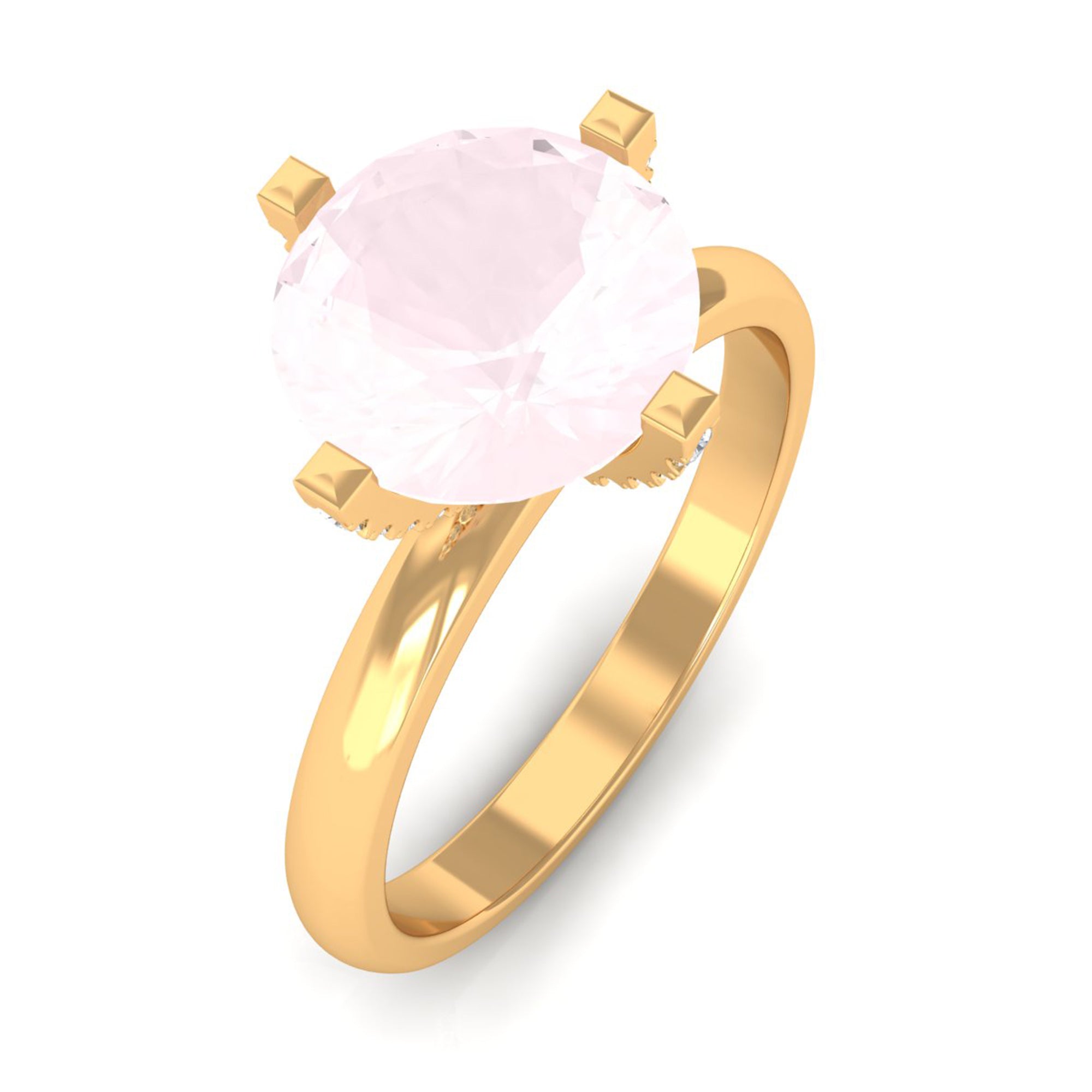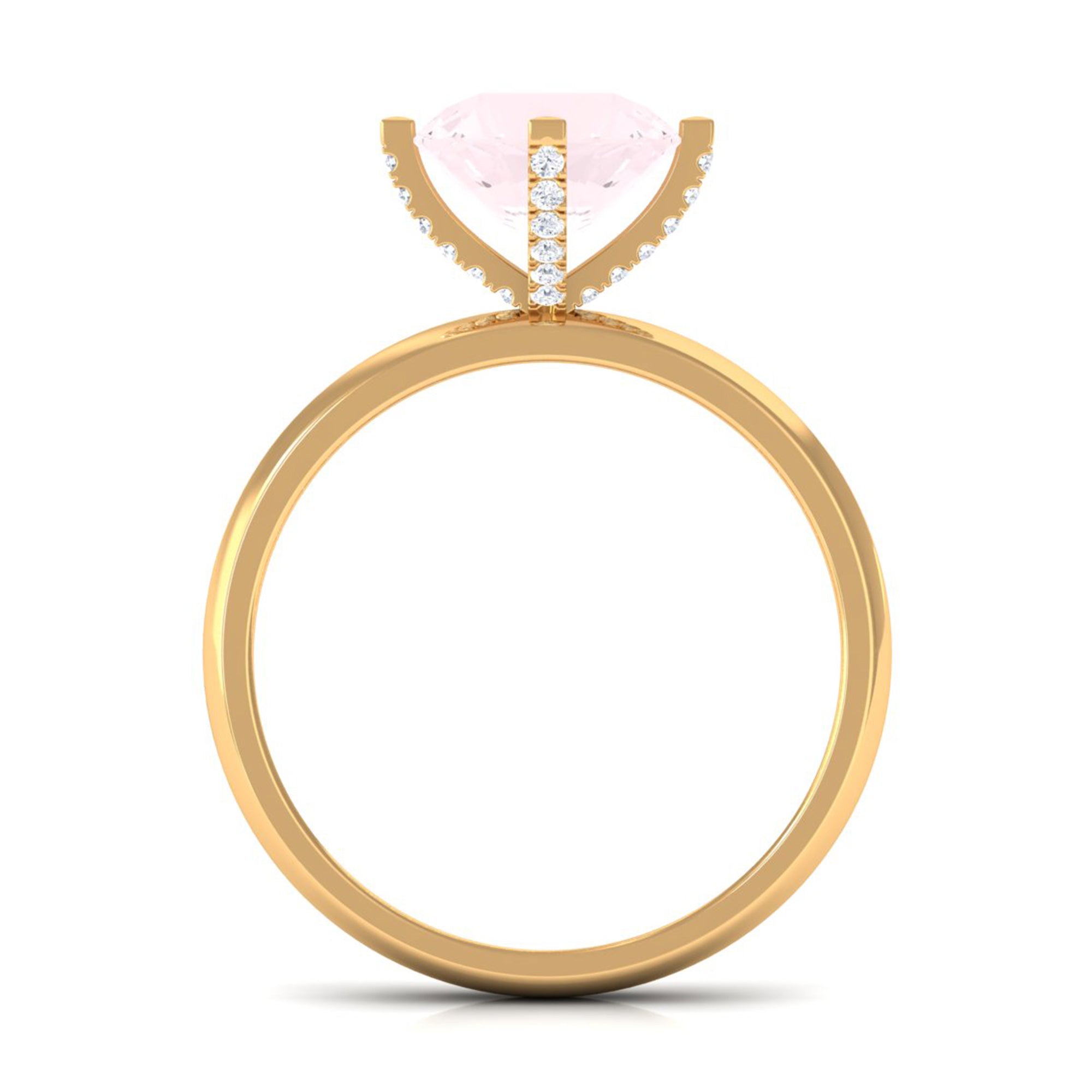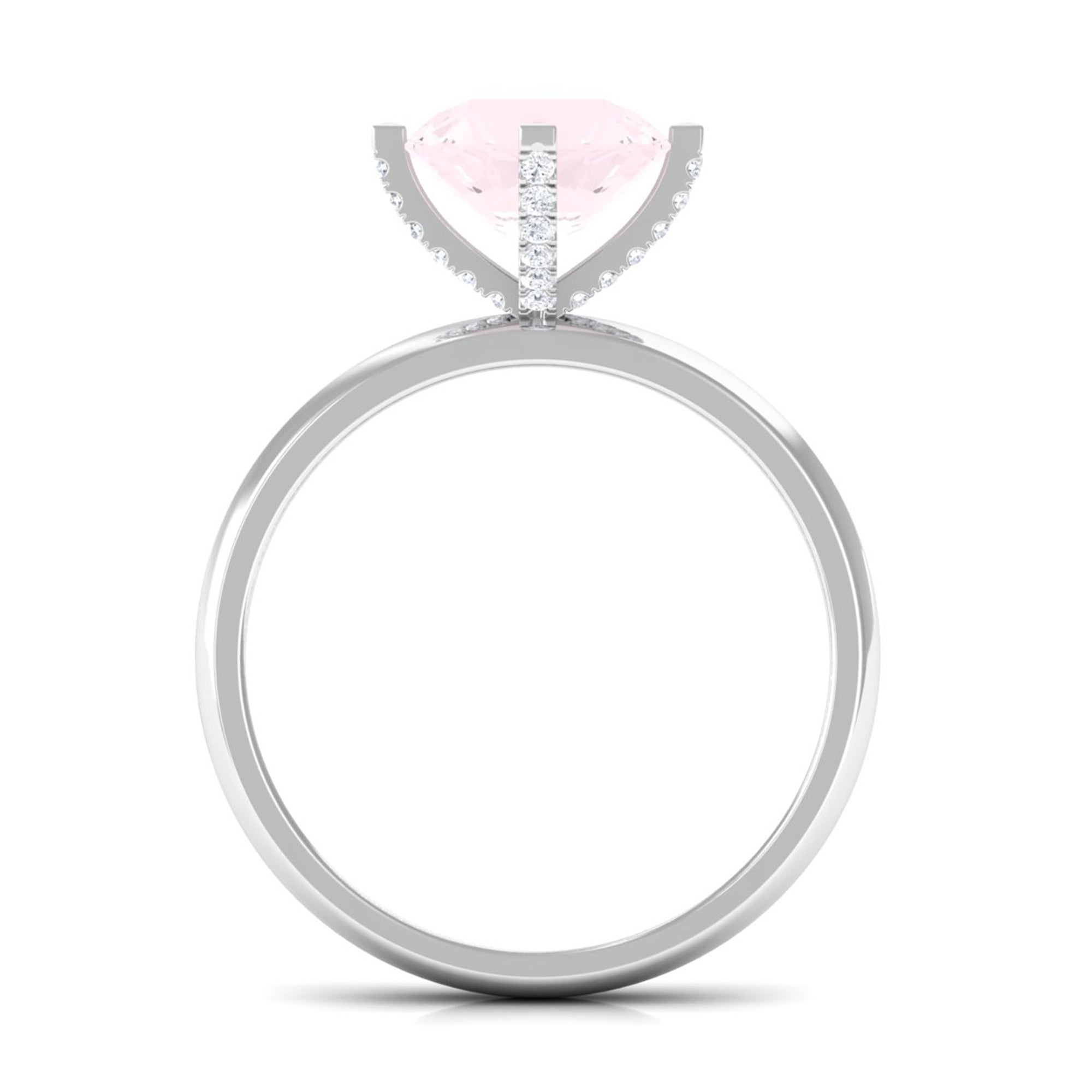 2 CT Classic Round Rose Quartz Solitaire Ring with Diamond