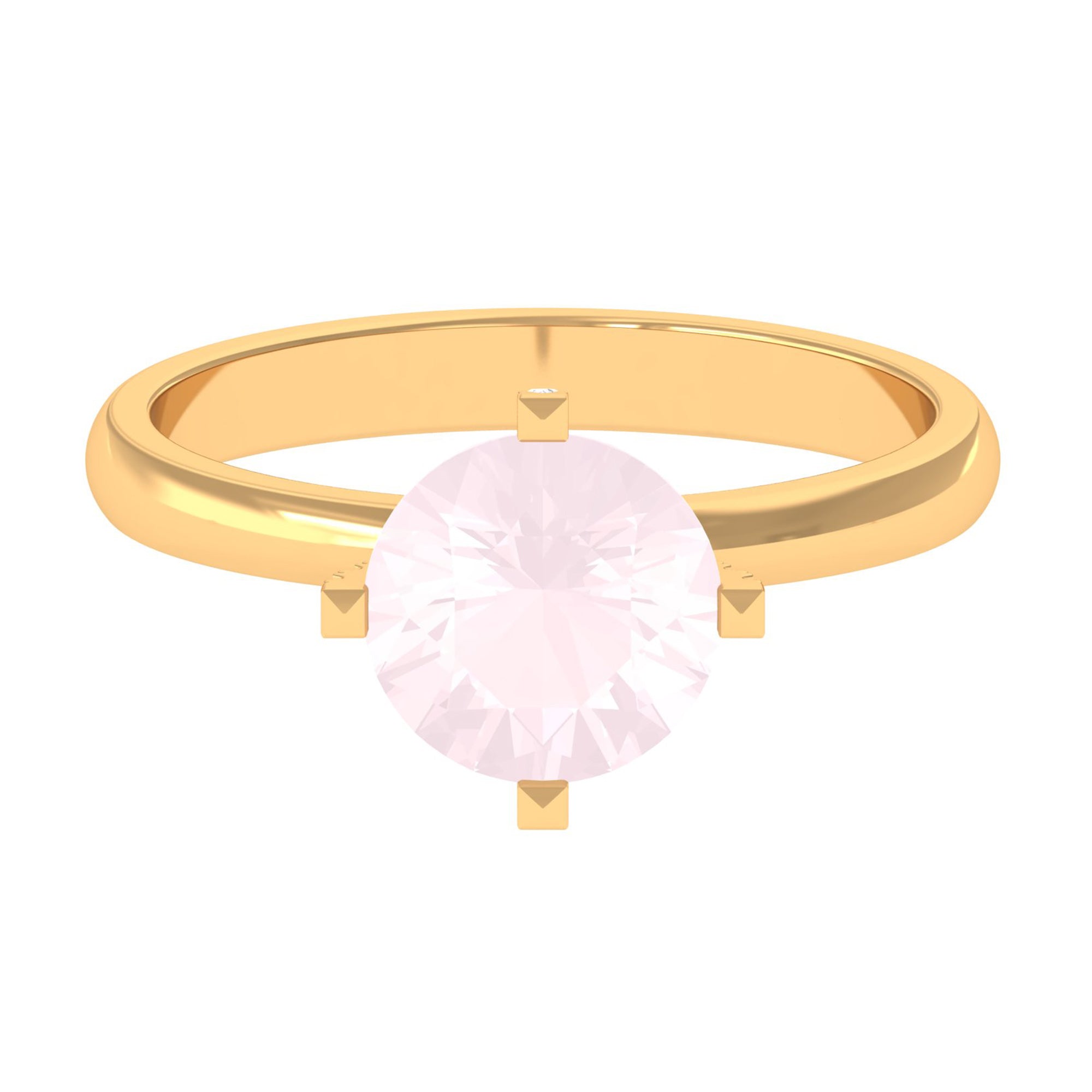 This classic round solitaire ring features a stunning rose quartz gemstone set in a prong setting with sparkling Diamond stones. The rose quartz gemstone is a delicate pink color that catches the light beautifully, while the Diamond adds a touch of sparkle and sophistication to the piece. With its timeless design and high-quality craftsmanship, this rose quartz solitaire ring is the perfect accessory to elevate any outfit. Whether youre looking for a special gift for a loved one or a treat for yourself, this beautiful ring is sure to impress with its unique and elegant style.