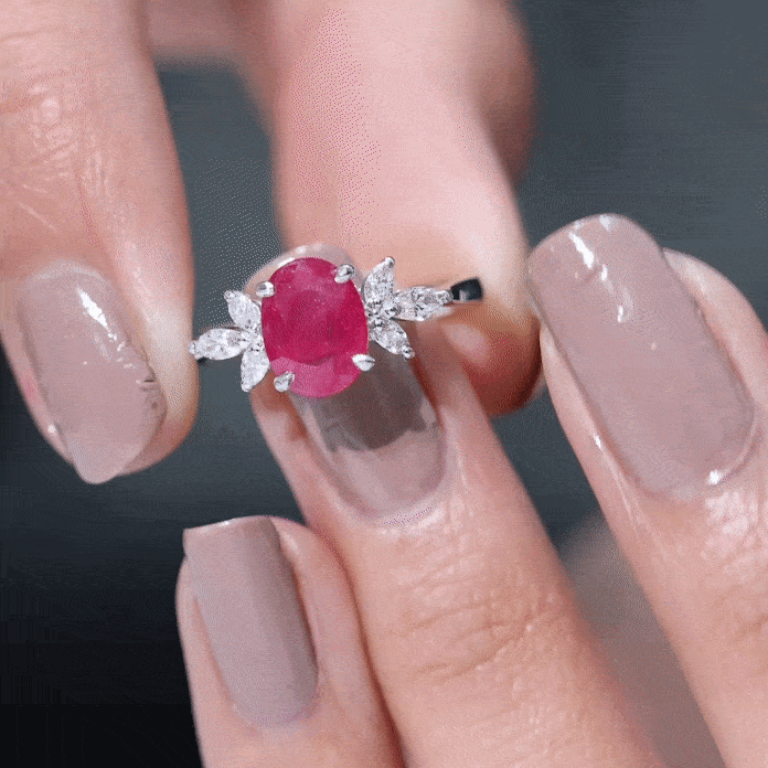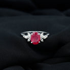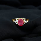 Enhance your appearance with this alluring Oval Created Ruby Solitaire Ring. Adorned with an Oval Cut Created Ruby and Marquise Cut Diamond Accents, the lovely embellishments bring out a charming flower motif in the sparkling ring. Accessorize with this gorgeous ring and add a touch of elegance to your outfit.