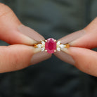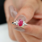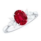 2 CT Claw Set Oval Created Ruby Solitaire and Marquise Diamond Trio Ring