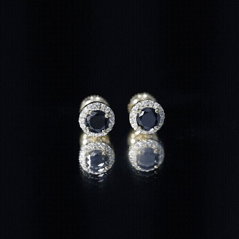 This stunning stud earring is a true beauty, with a created Black Diamond solitarily set in a prong setting and surrounded by a halo of sparkling moissanite stones. The earring is crafted in gold, making it both beautiful and durable. The combination of the created Black Diamond center stone and the surrounding moissanite stones in a halo creates a mesmerizing look that will catch the eye of everyone around you. Wear it to add a touch of elegance to any outfit or as a special treat for yourself. This stud earring is sure to become a cherished piece in your jewelry collection.