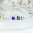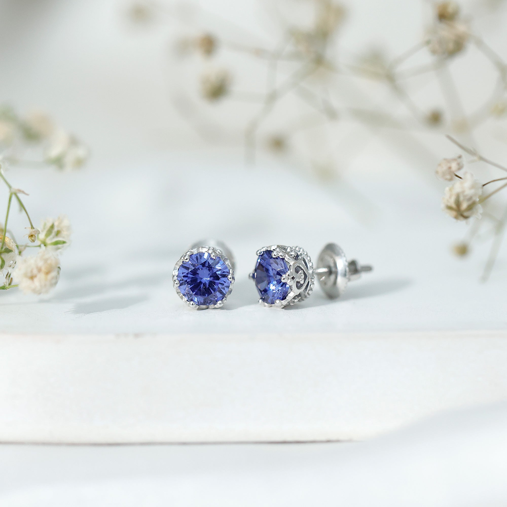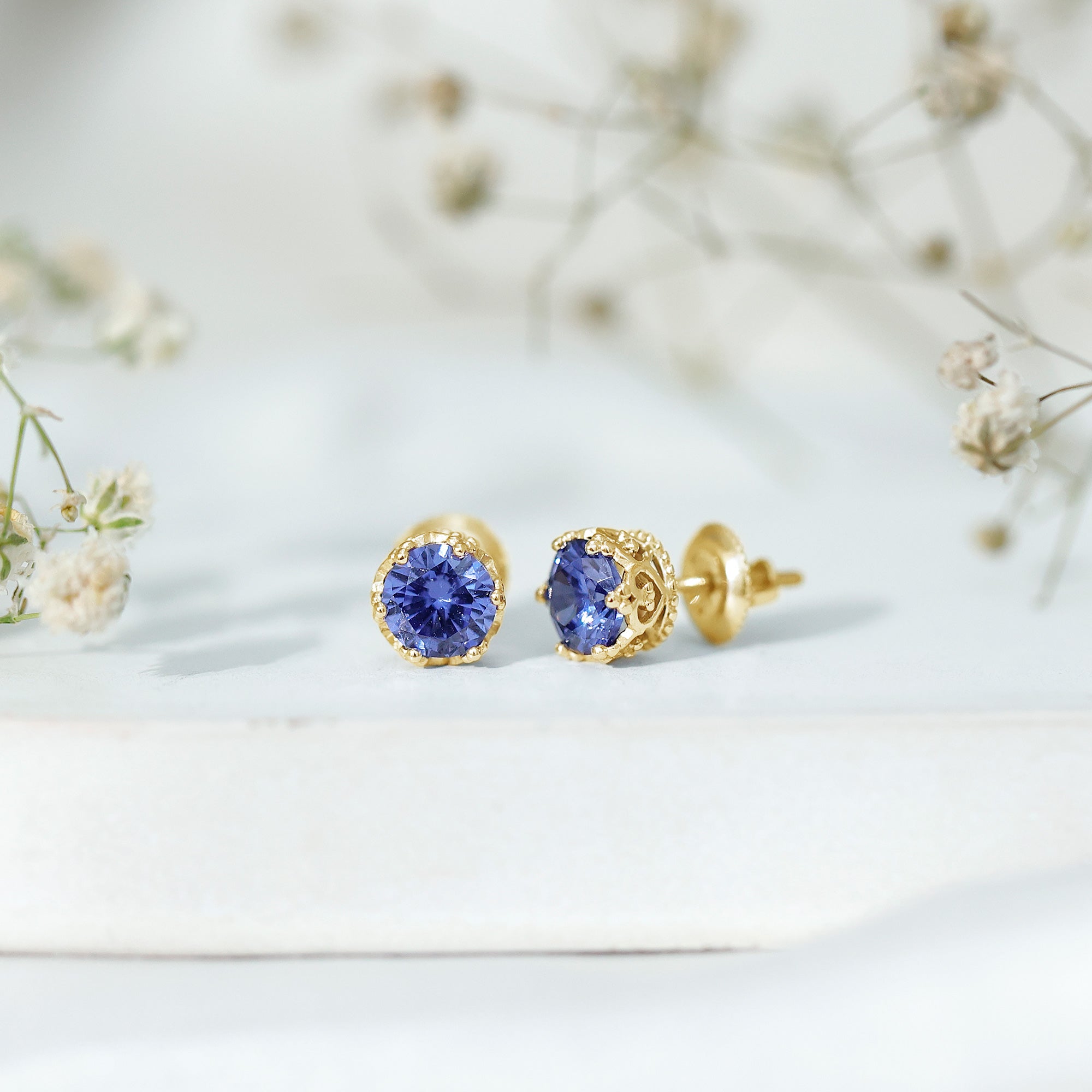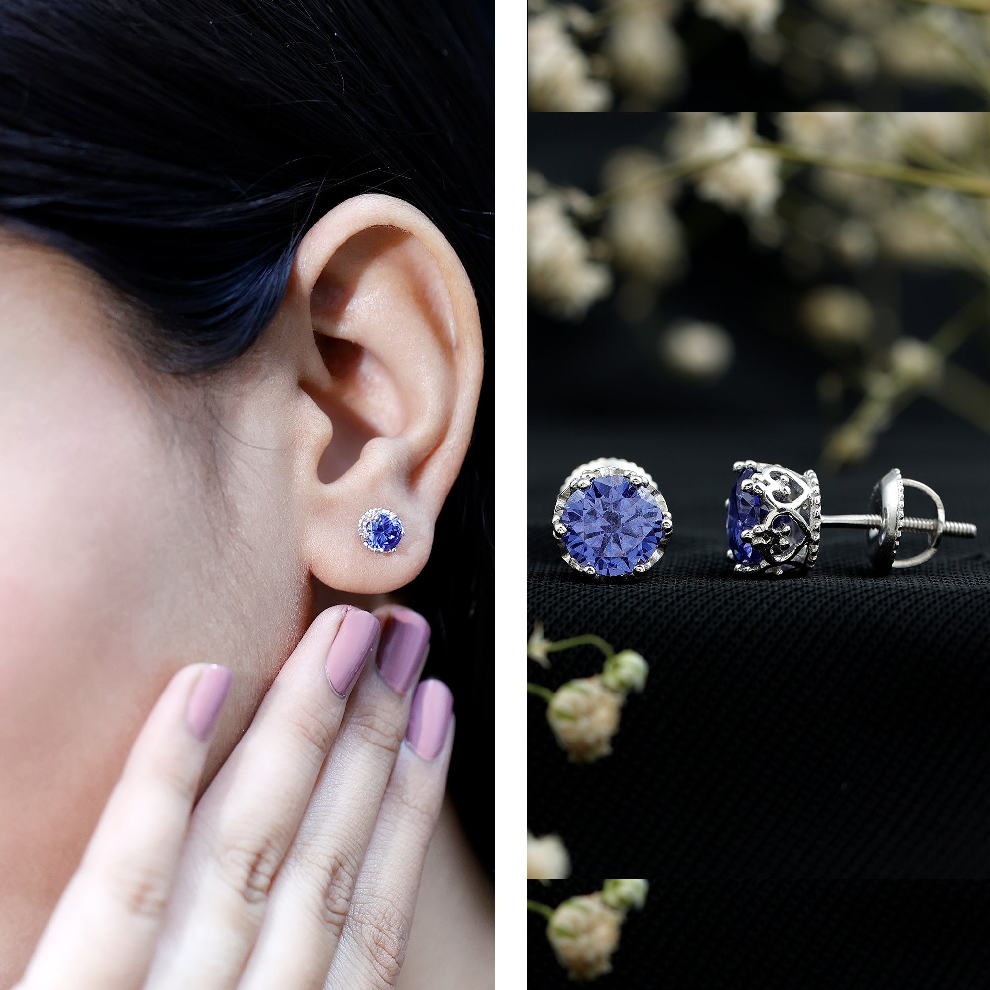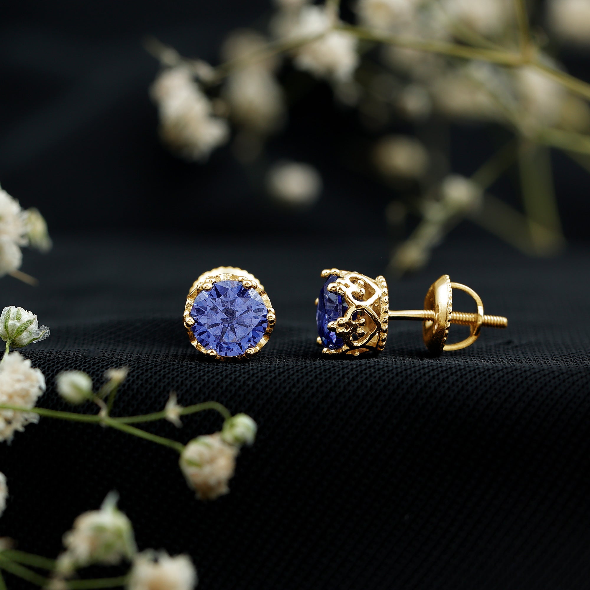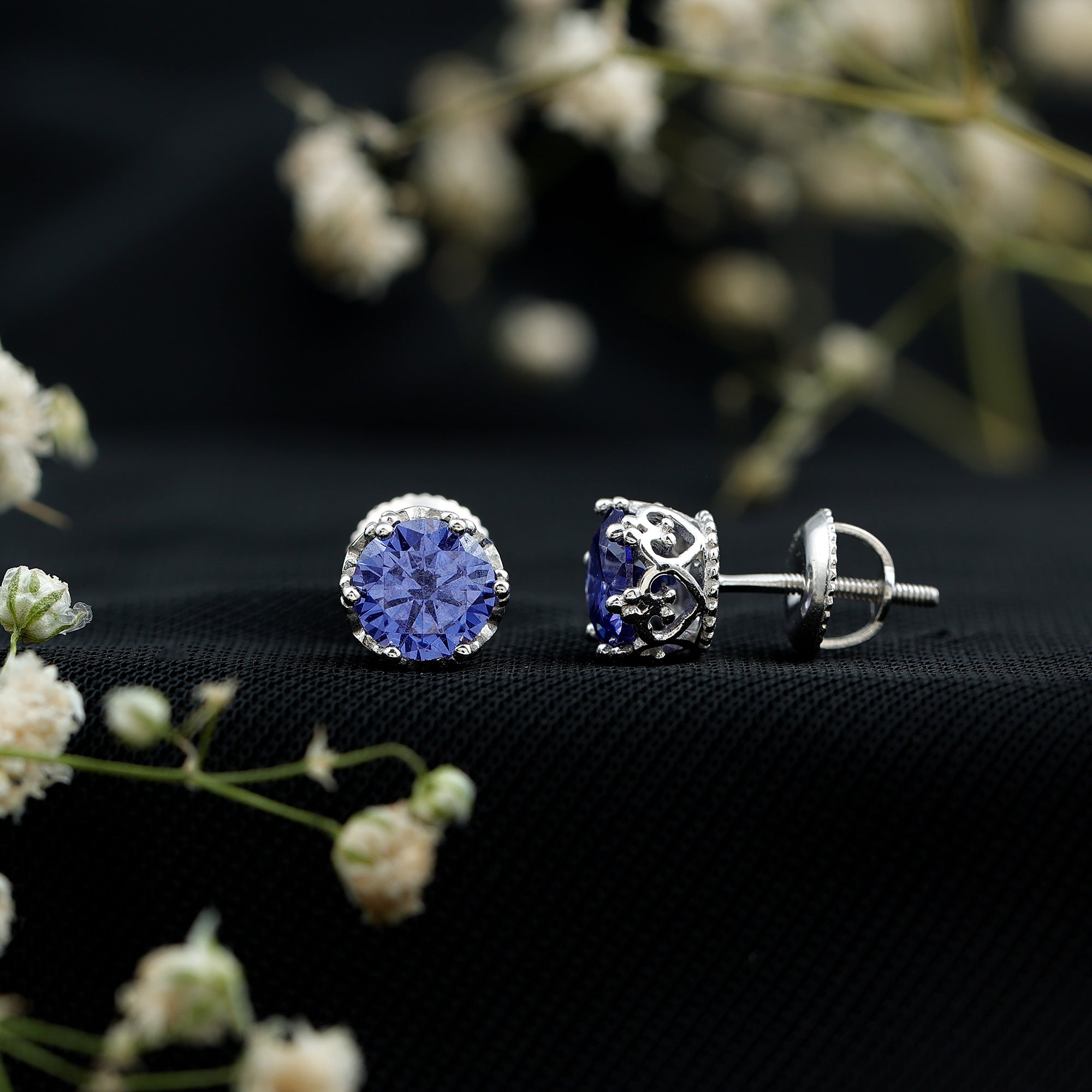 2 CT Created Blue Sapphire Solitaire Crown Stud Earrings