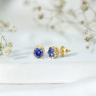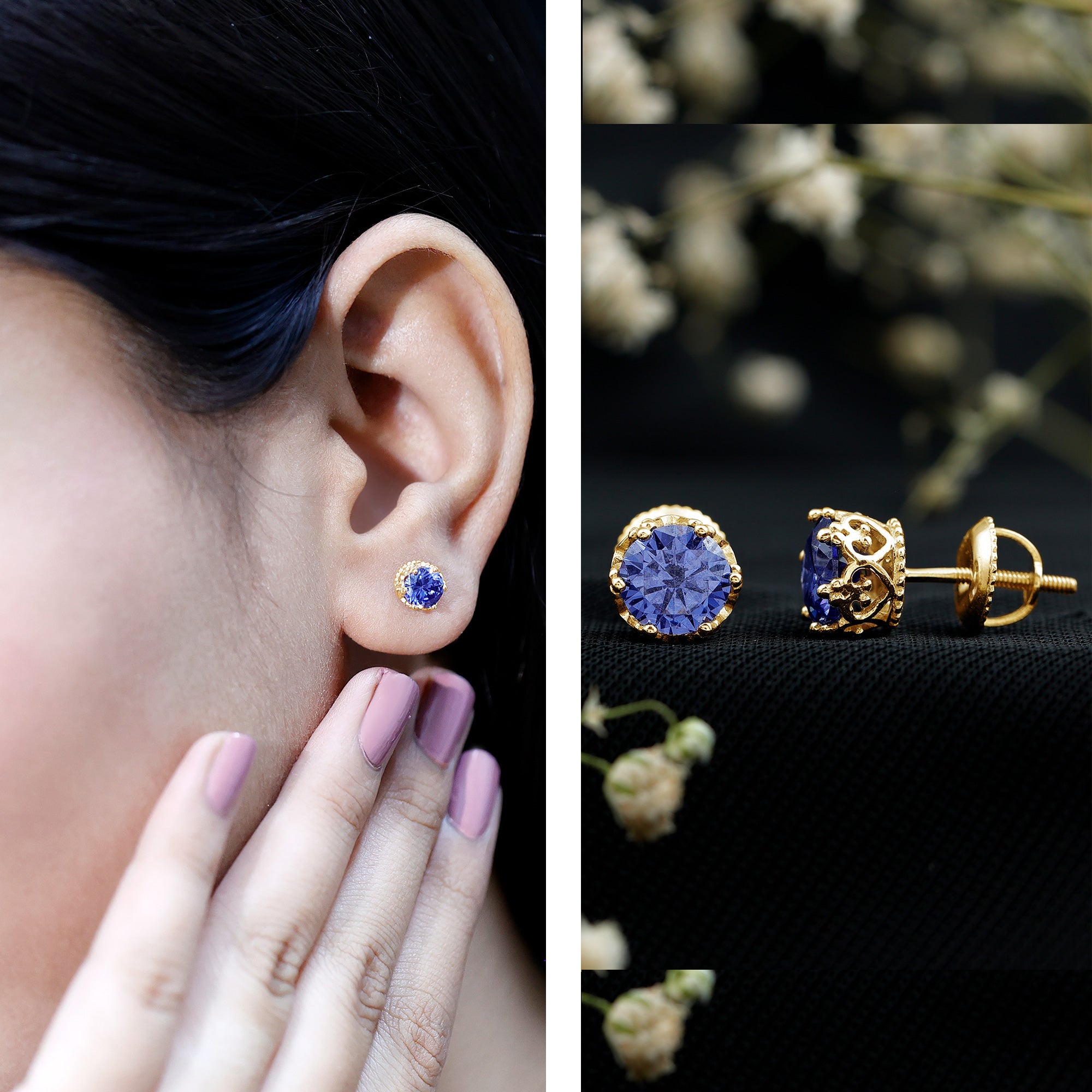 Show indebt gratitude to your mother by gifting these Solitaire Stud Earrings. These earrings are embellished with Created Blue Sapphire, held in Crown Setting for a charming appeal. They are crafted with Solid Gold and backed with Screw closure for a secure fit.