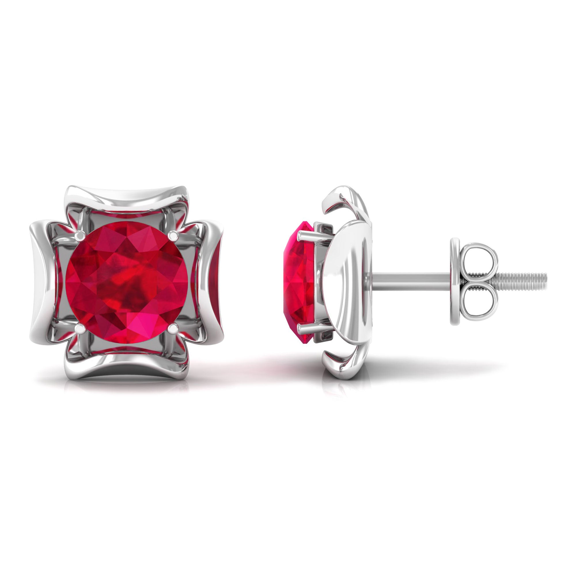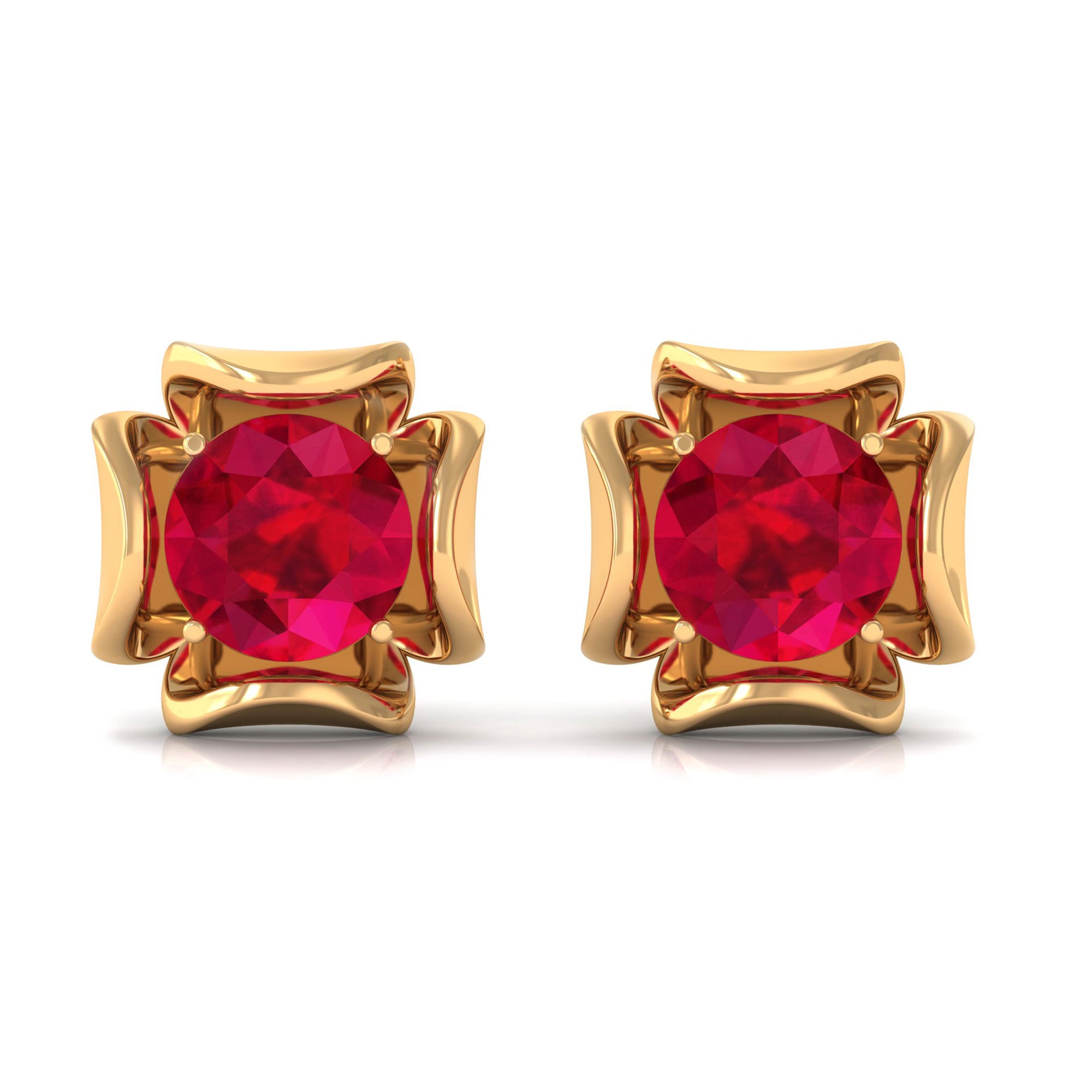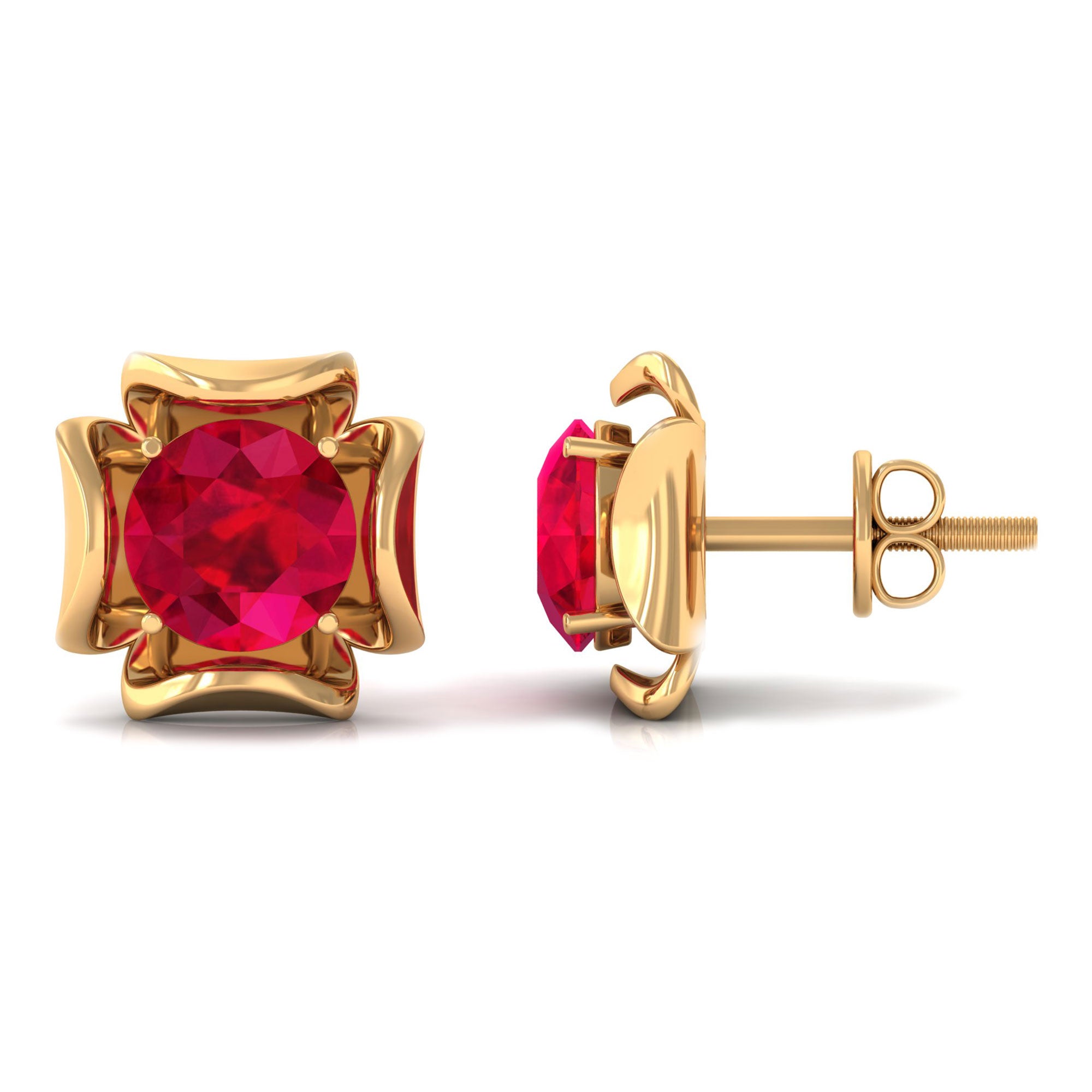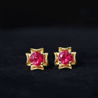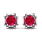 Antique Flower Earring is the beautiful and antique floral piece encased with Solitaire Round Shape Lab Created Ruby in the prong setting. This Solitaire Gemstone Earring is made in Solid Gold.