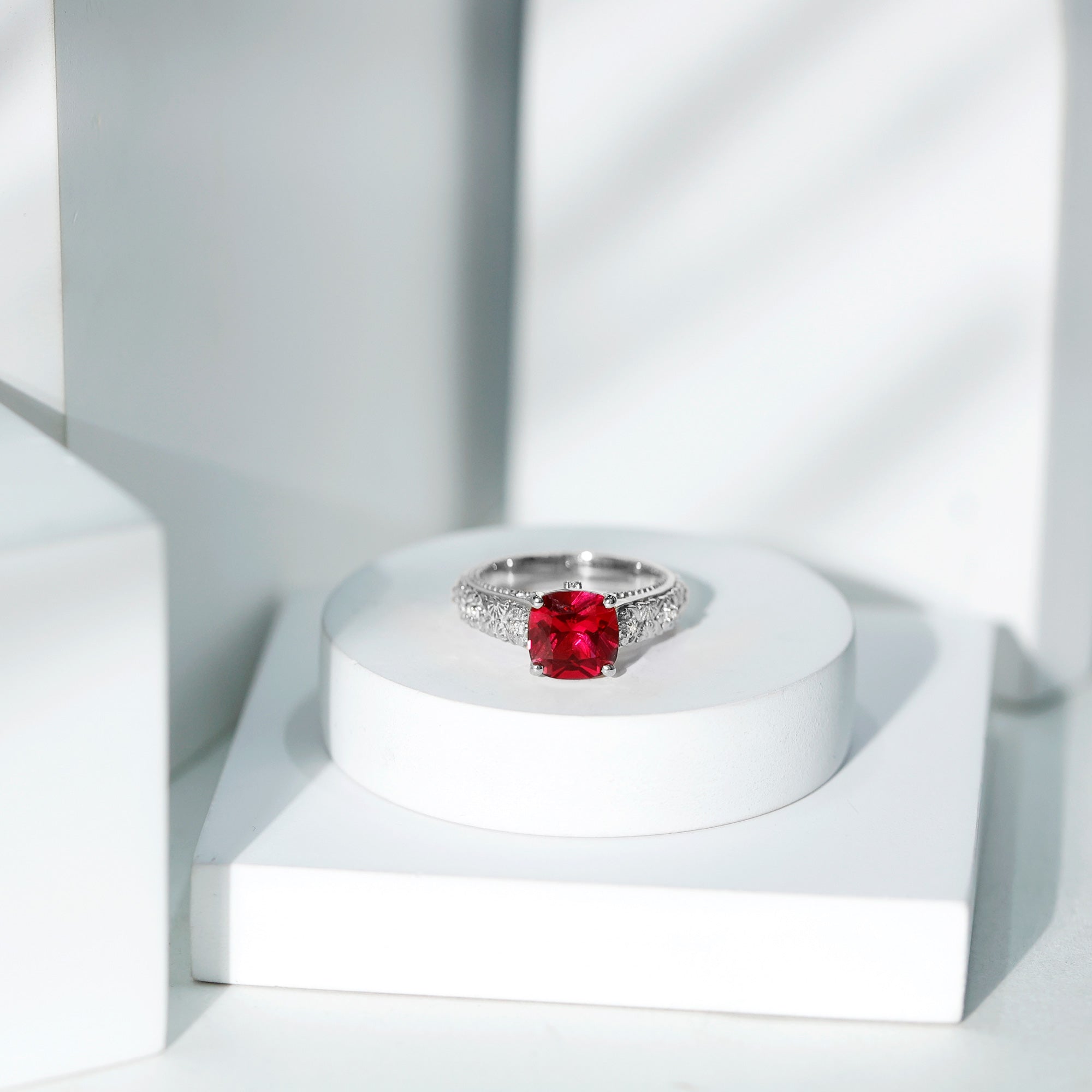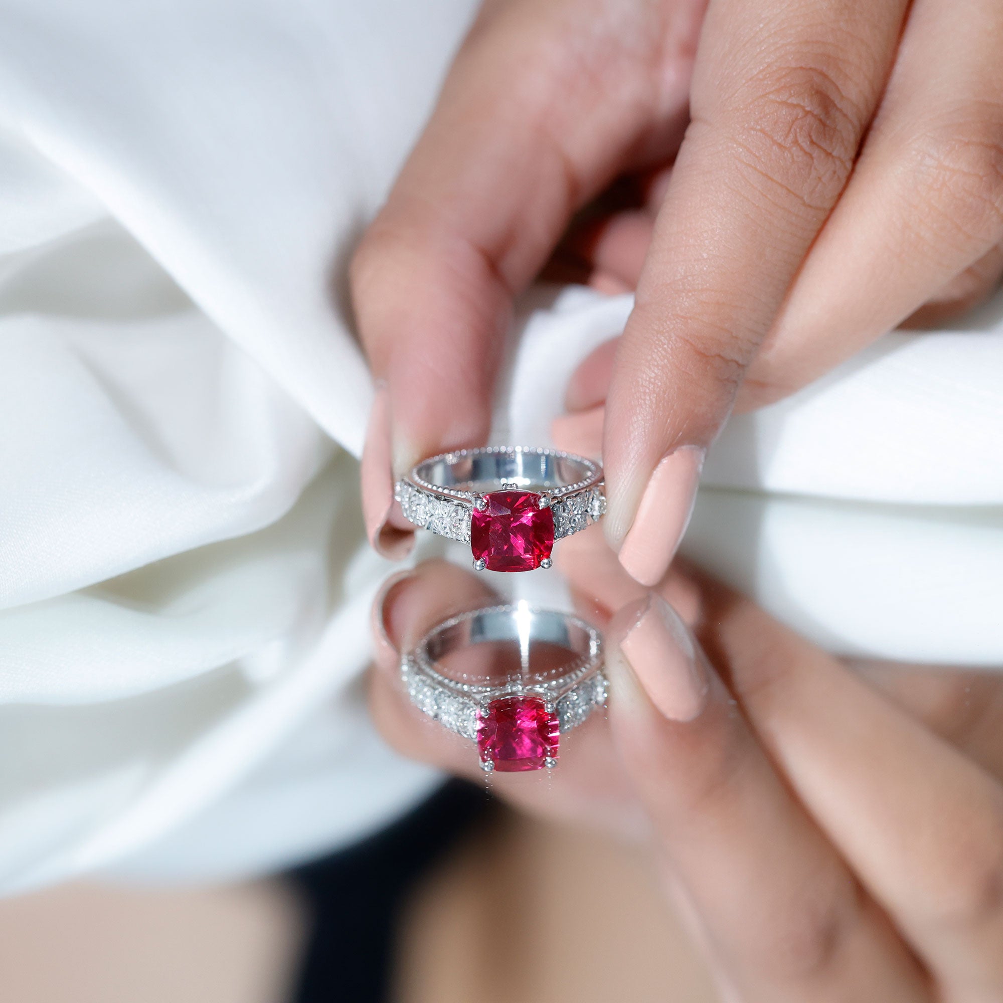 2 CT Cushion Cut Lab Created Ruby Solitaire Ring
