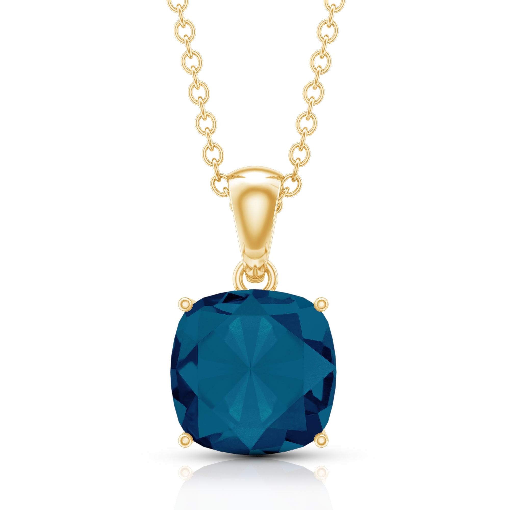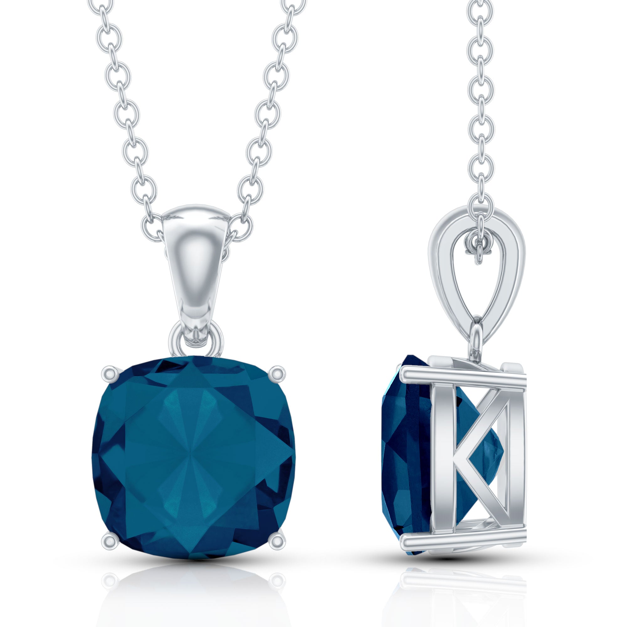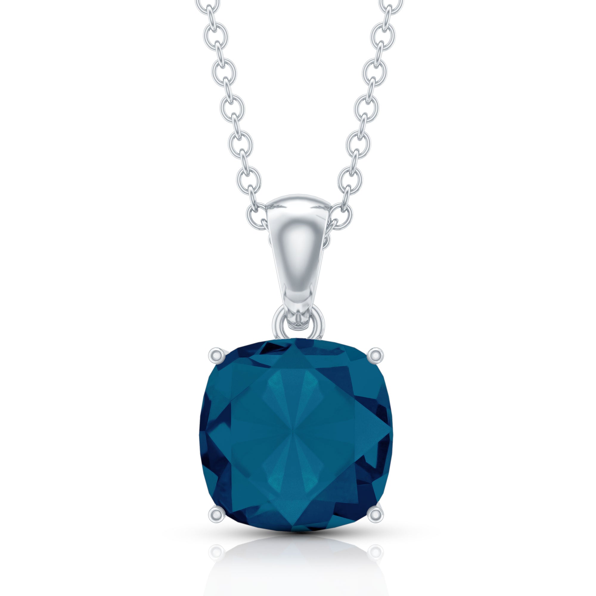 2 CT Cushion Cut London Blue Topaz Solitaire Pendant