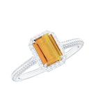 2 CT Emerald Cut Citrine Solitaire Engagement Ring with Diamond Halo