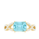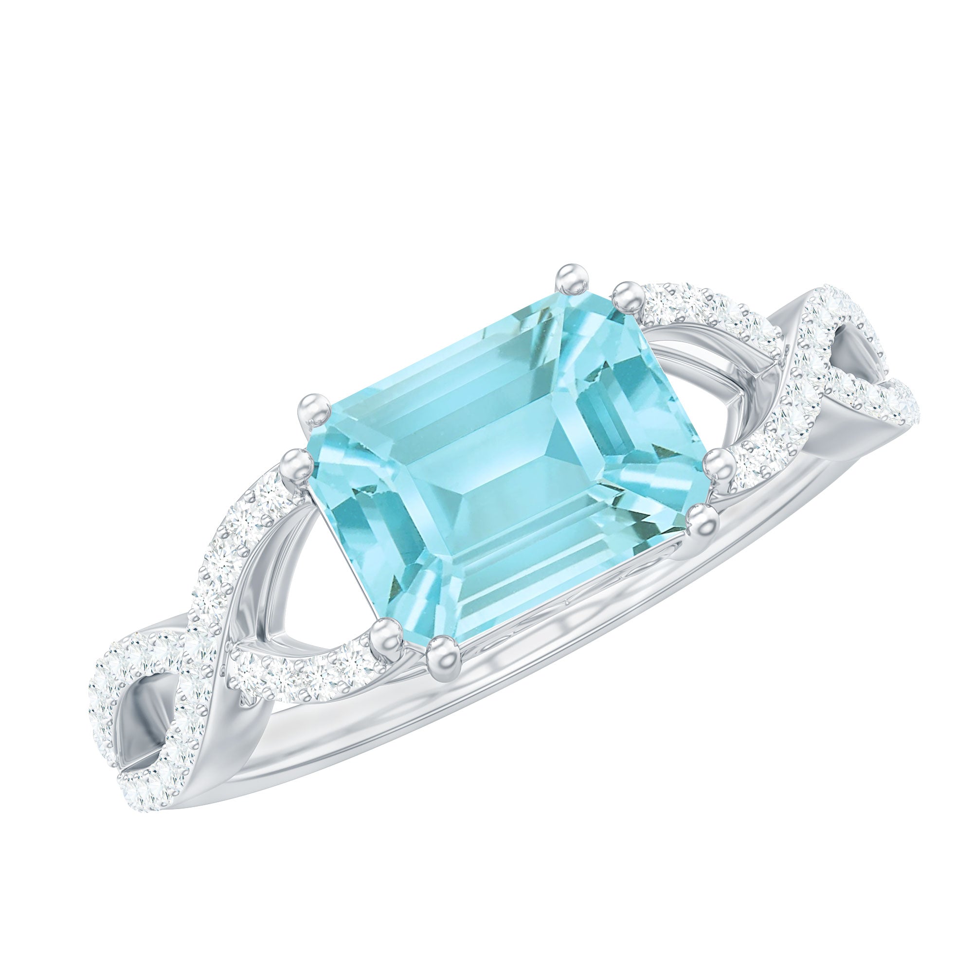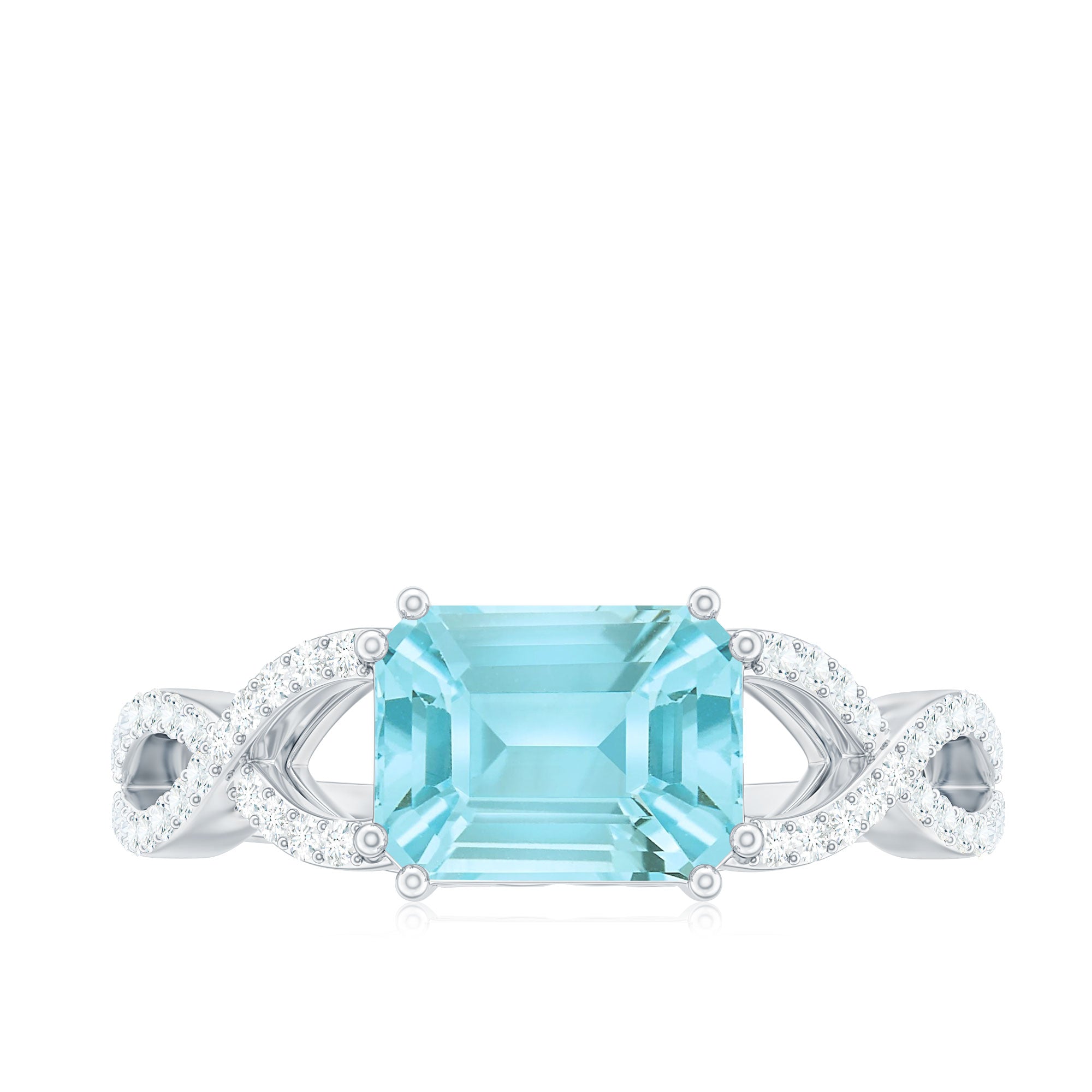 2 CT Emerald Cut Shape Sky Blue Topaz East West Engagement Ring with Diamond