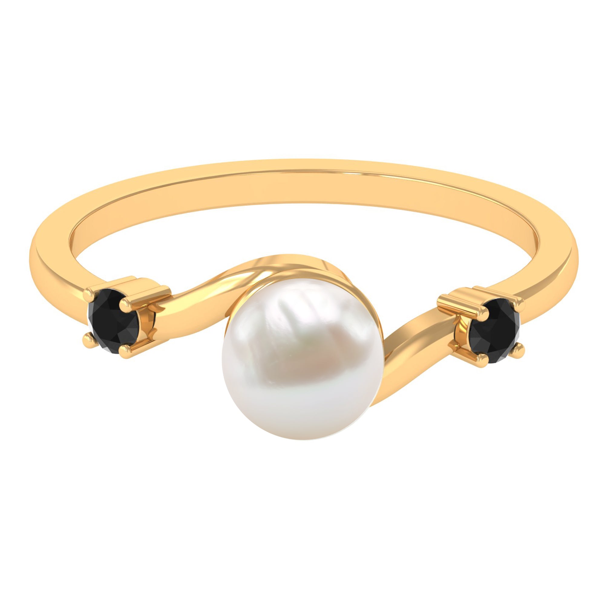 Its time to switch on your queenly side with this royal Freshwater Pearl Bypass Engagement Ring. The scintillating piece looks simply ethereal and thus waiting to be worn by a special woman. It is embellished with round cut freshwater pearl in bead setting with round black diamond on bypass shank to give it a perfect as well as enchanting appeal.