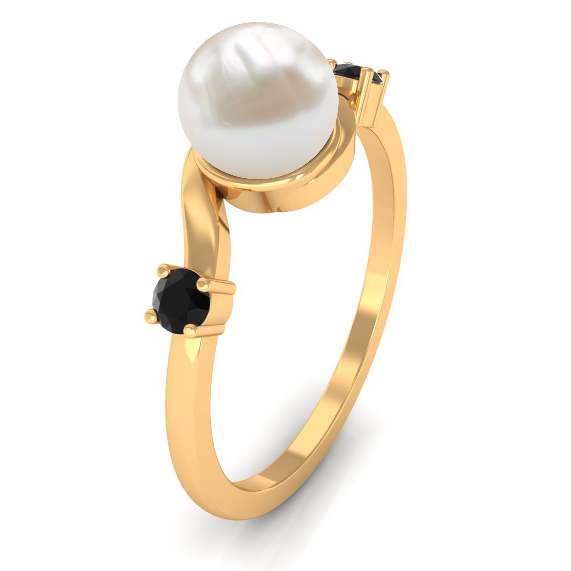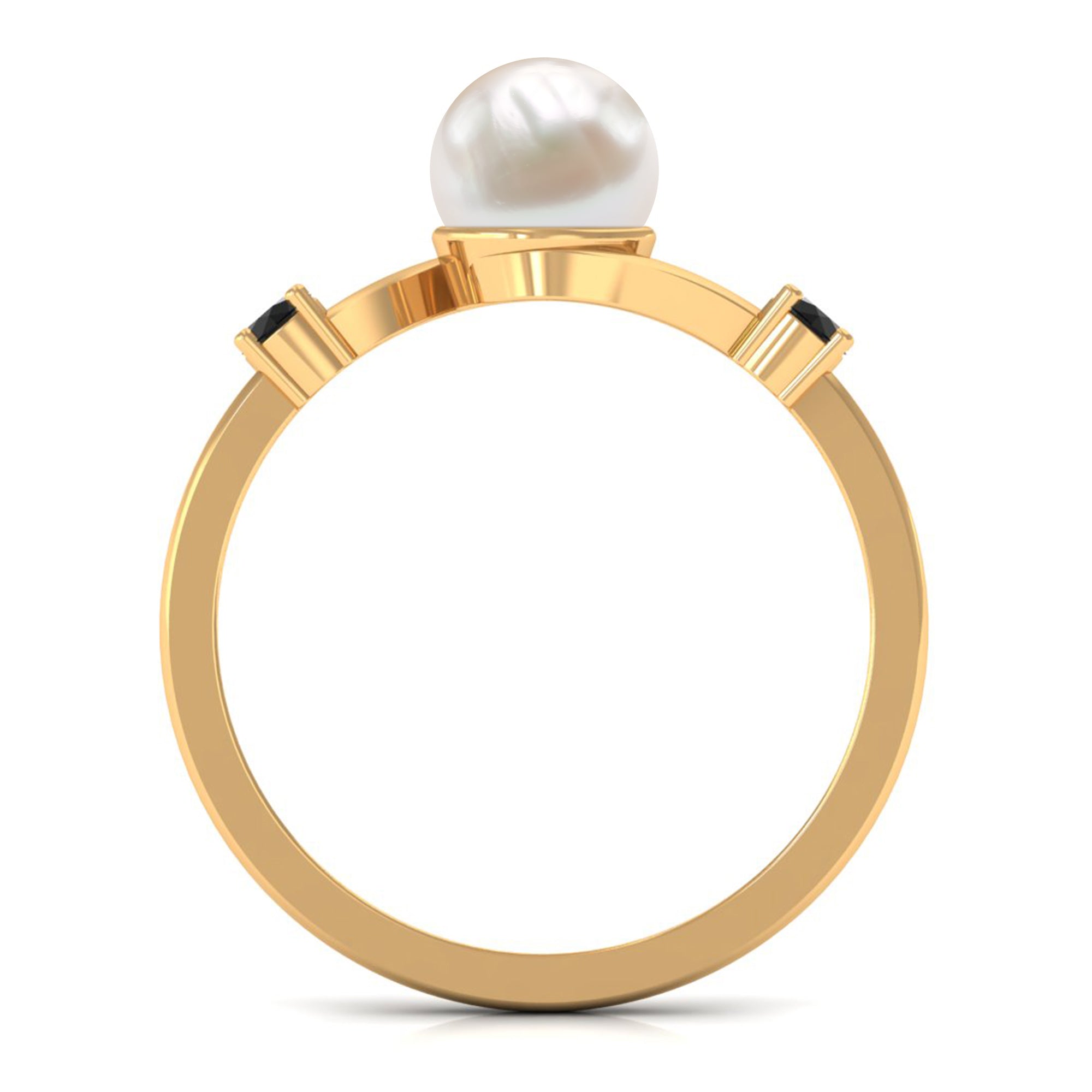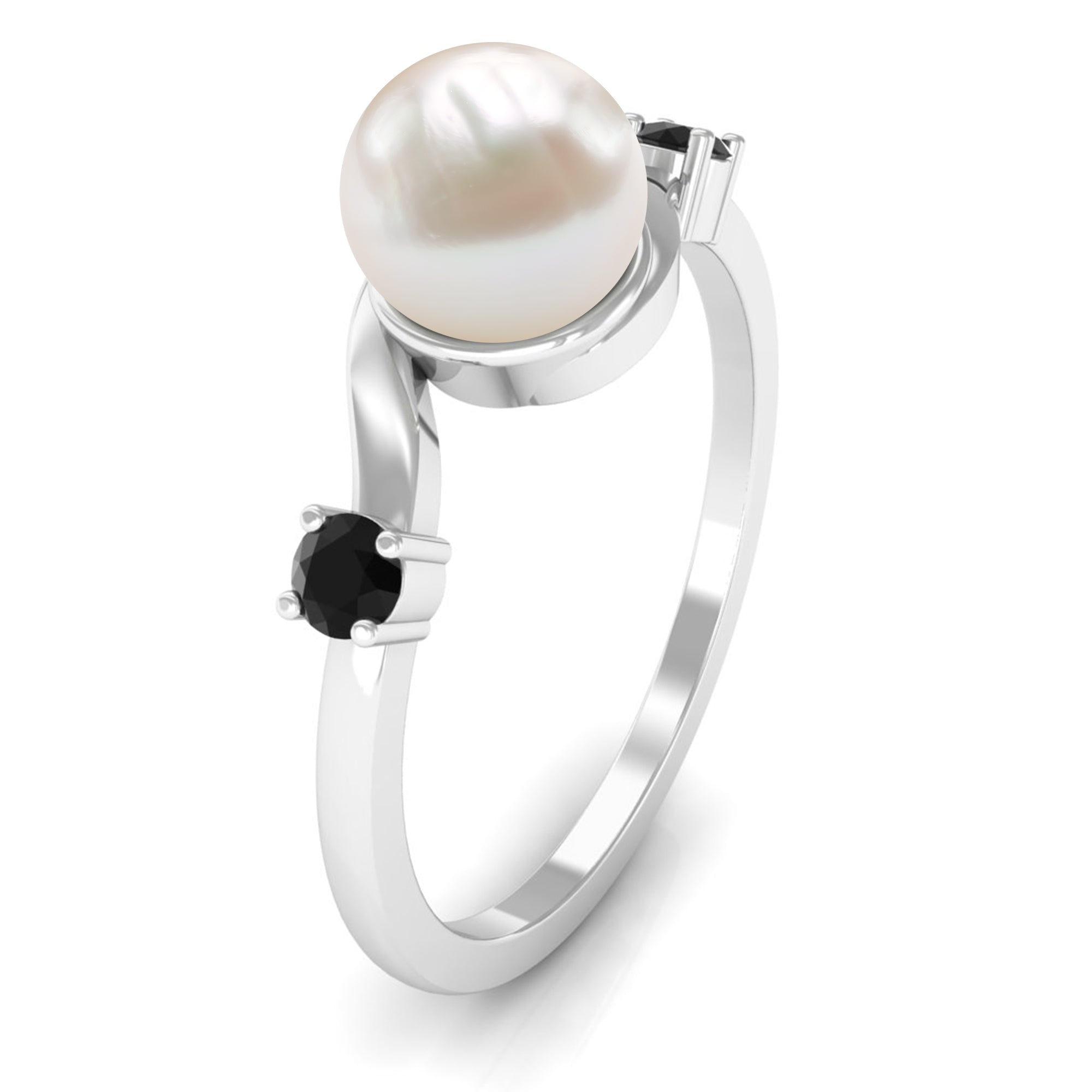 2 CT Freshwater Pearl Bypass Engagement Ring with Black Diamond