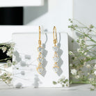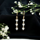 Every woman has a sparkle that complements her unique beauty. Let yours shine with these captivating Heart Dangle Earrings. These Moissanite earrings feature heart-shaped Moissanite arranged in a charming dangle style, complemented by more round cut Moissanite in a prong setting. Crafted from solid gold, these dangler earrings are a must-have accessory that will enhance your radiance and warmth.