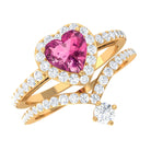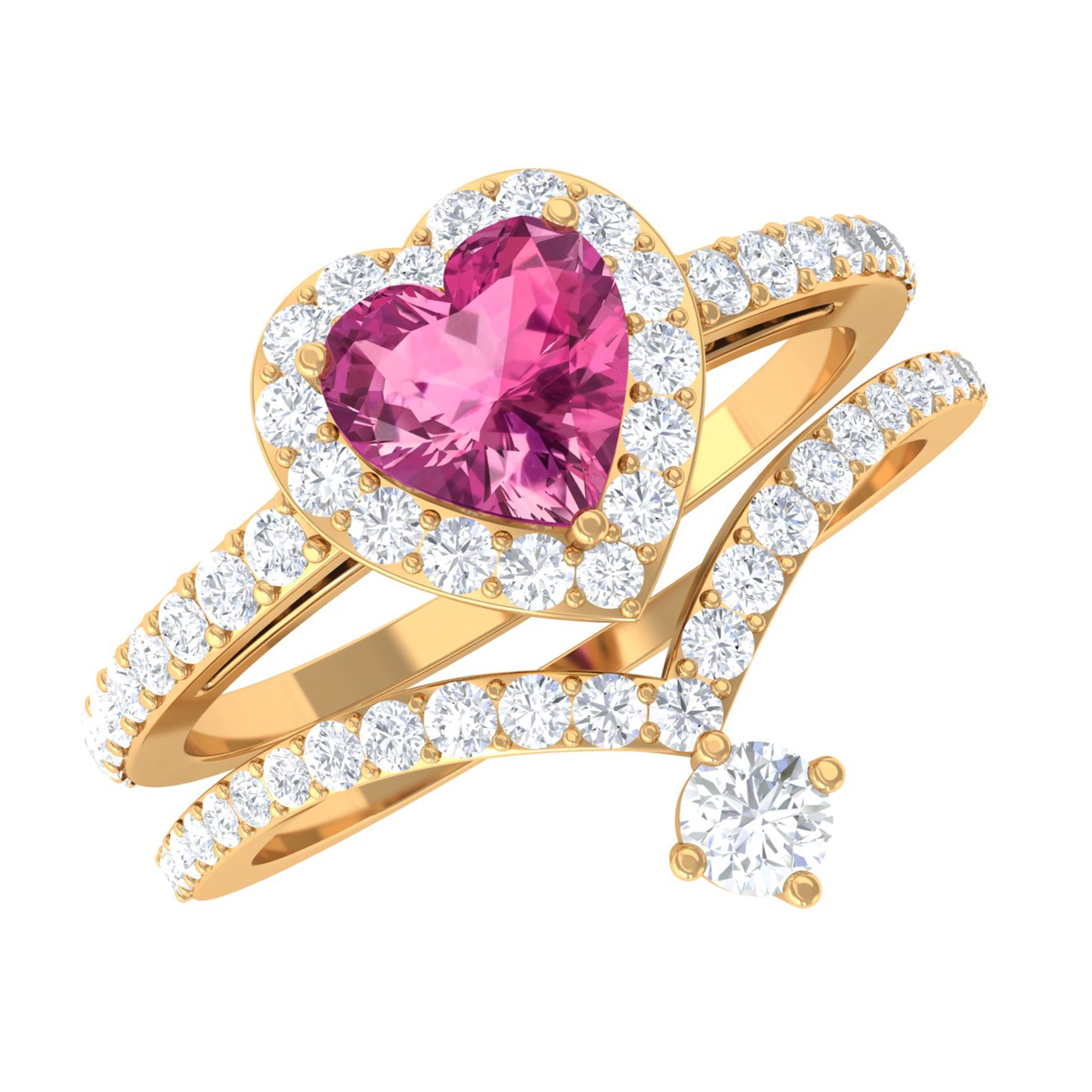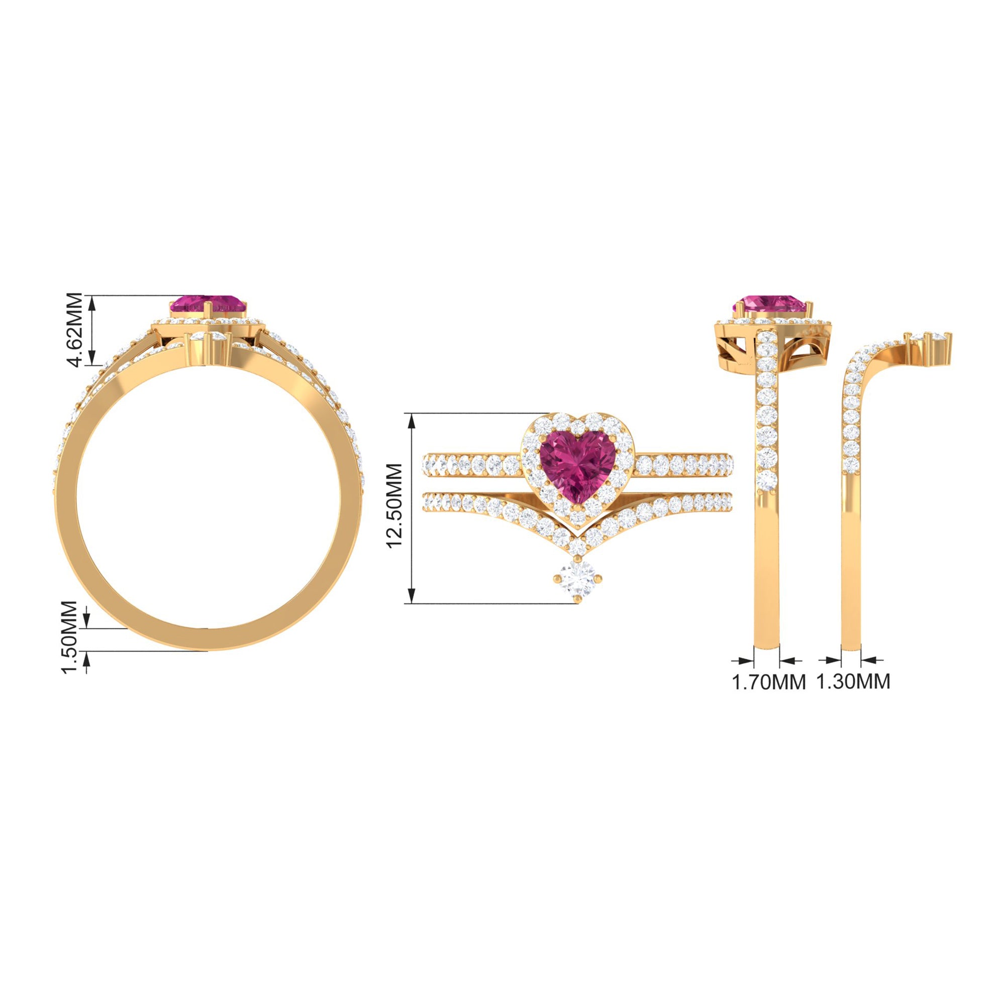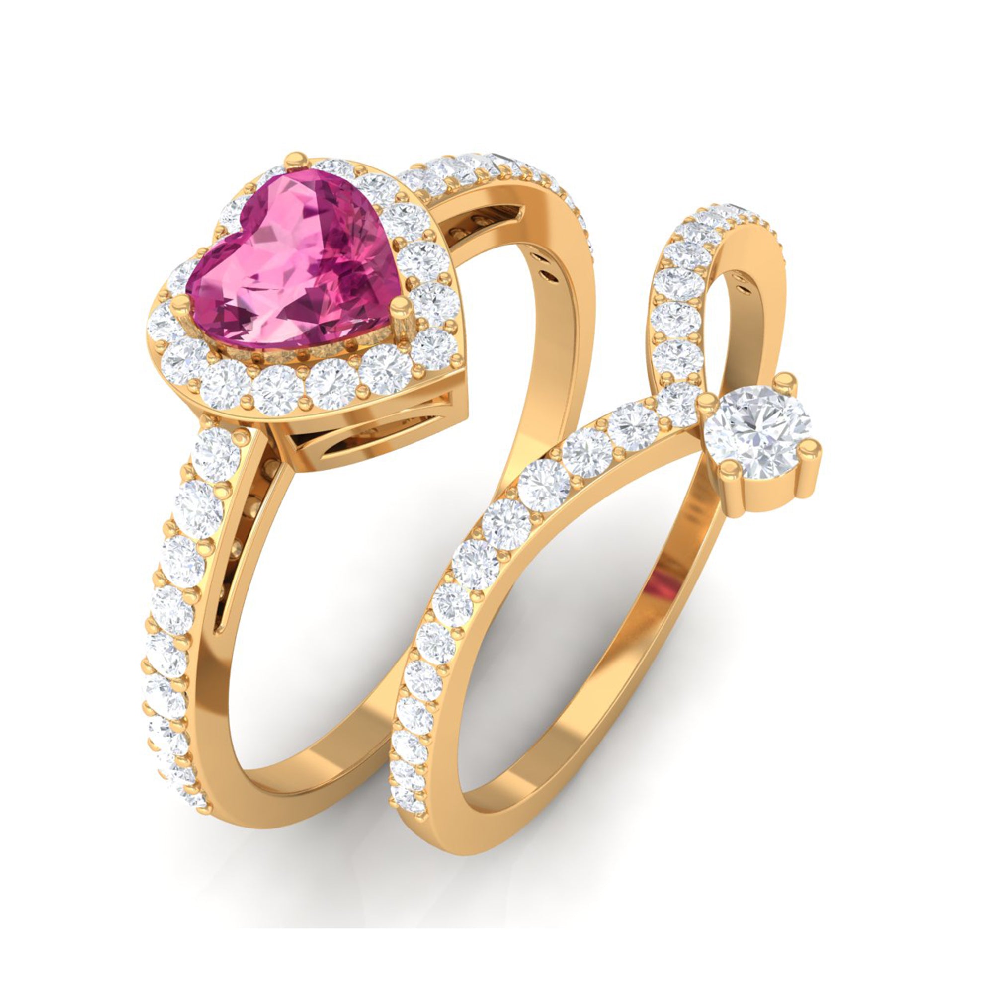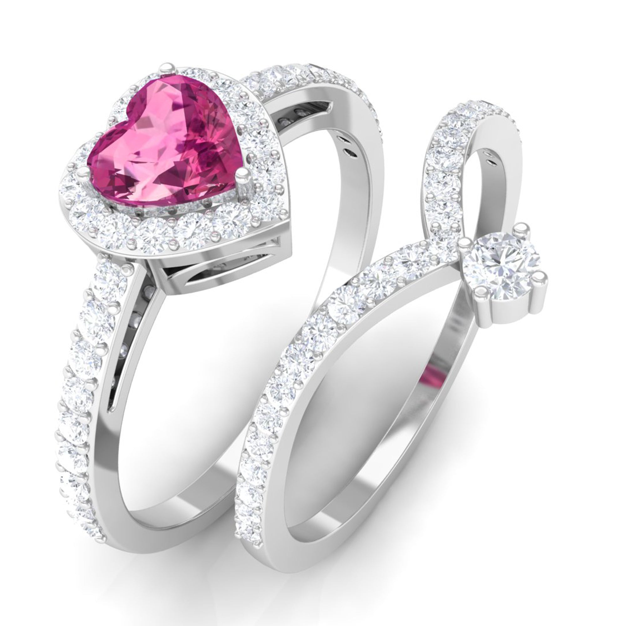 Capture romance and beauty with this Heart Shape Ring Set of 2, adorned with dazzling Heart Shape Pink Tourmaline and Round Shape Moissanite gemstones. The heart shape signifies affection and adoration, making it an ideal token of love or a cherished gift for someone special. Embrace the enchanting allure of this Pink Tourmaline and Moissanite ring set and ignite the magic of love.