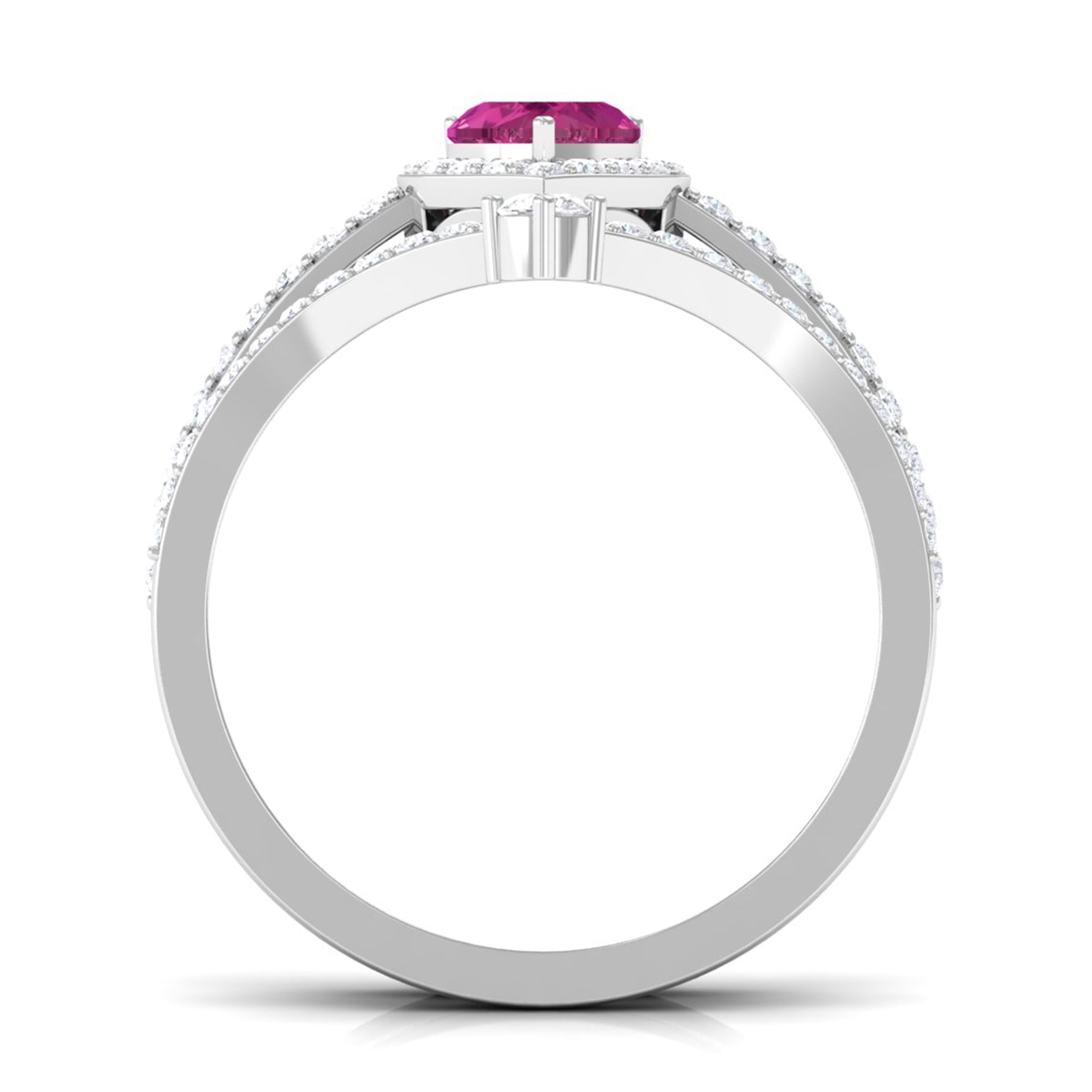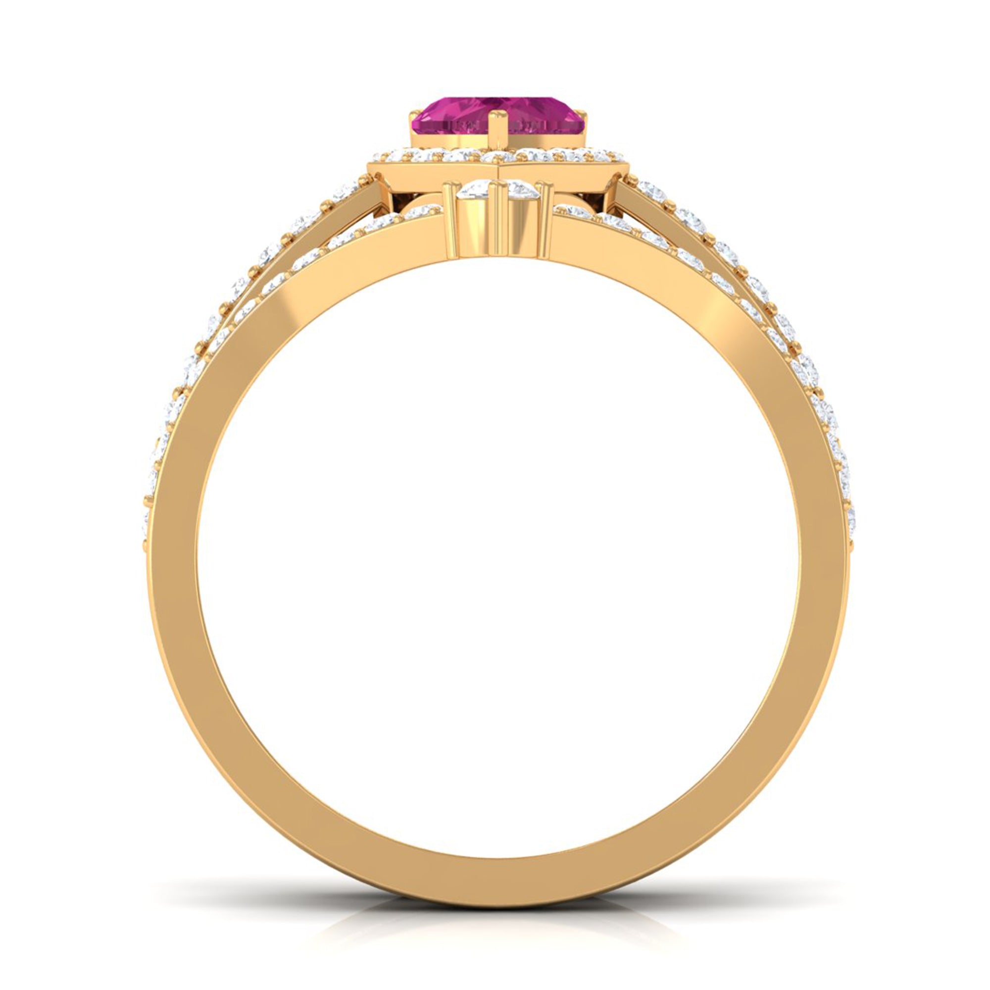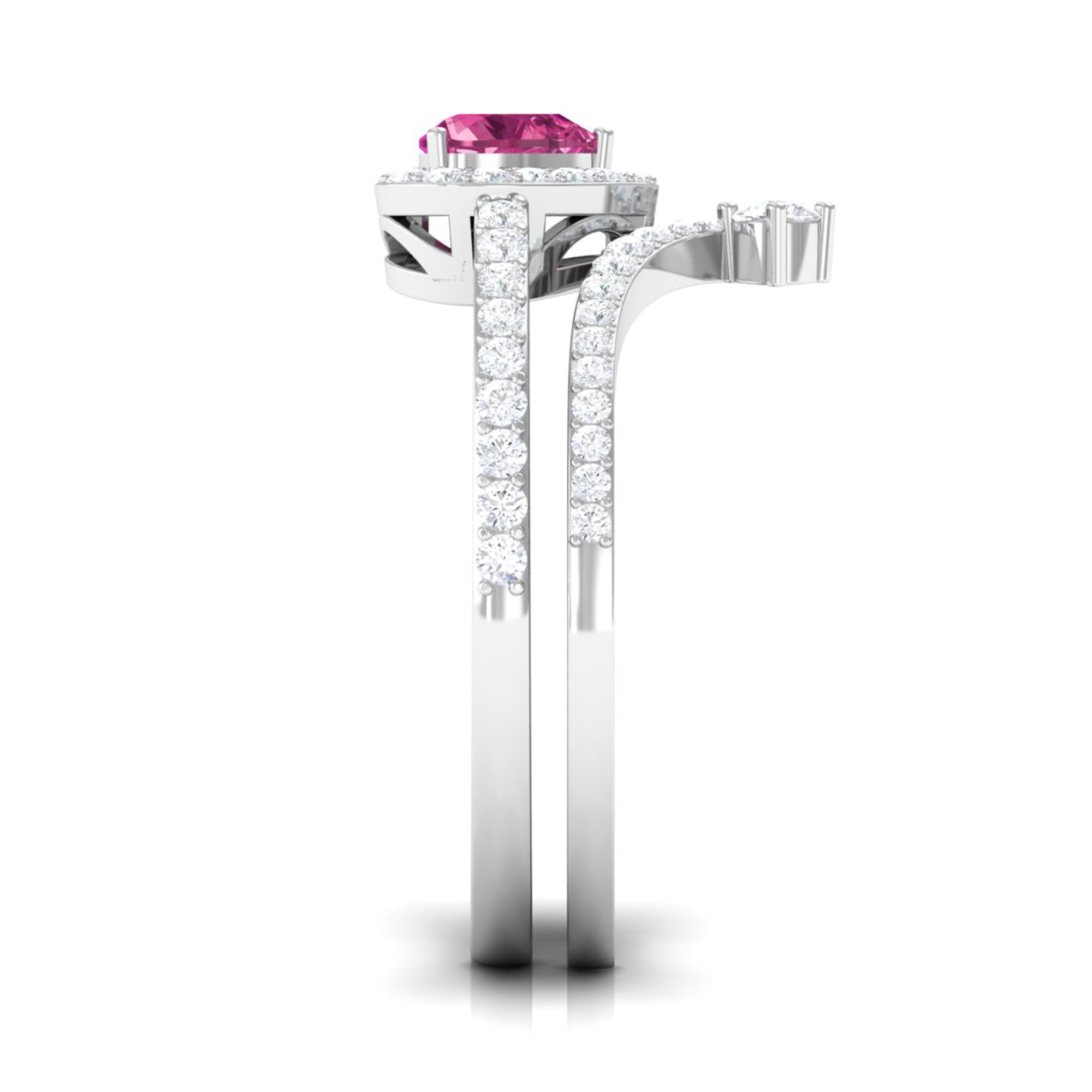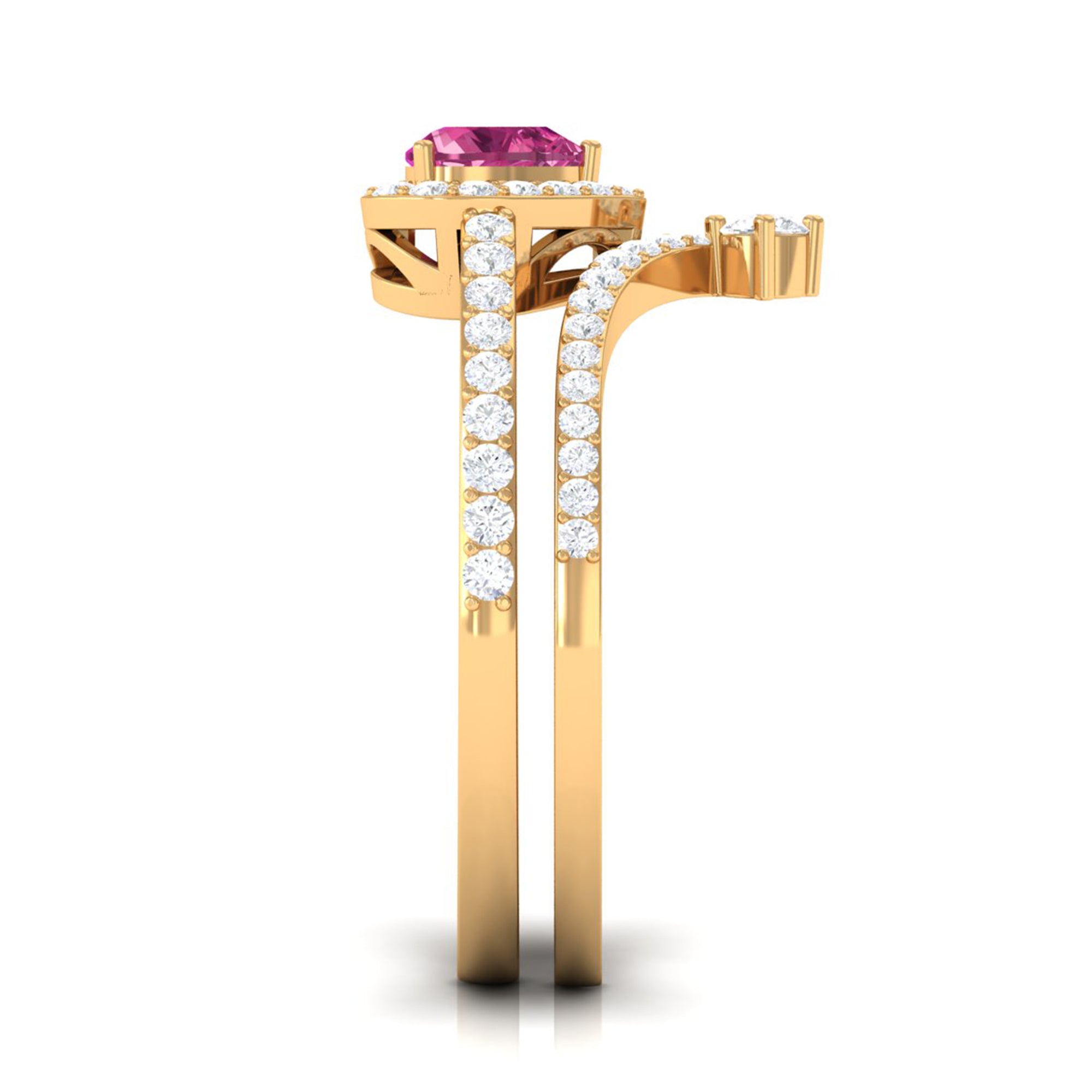 Genuine Pink Tourmaline Ring Set with Moissanite