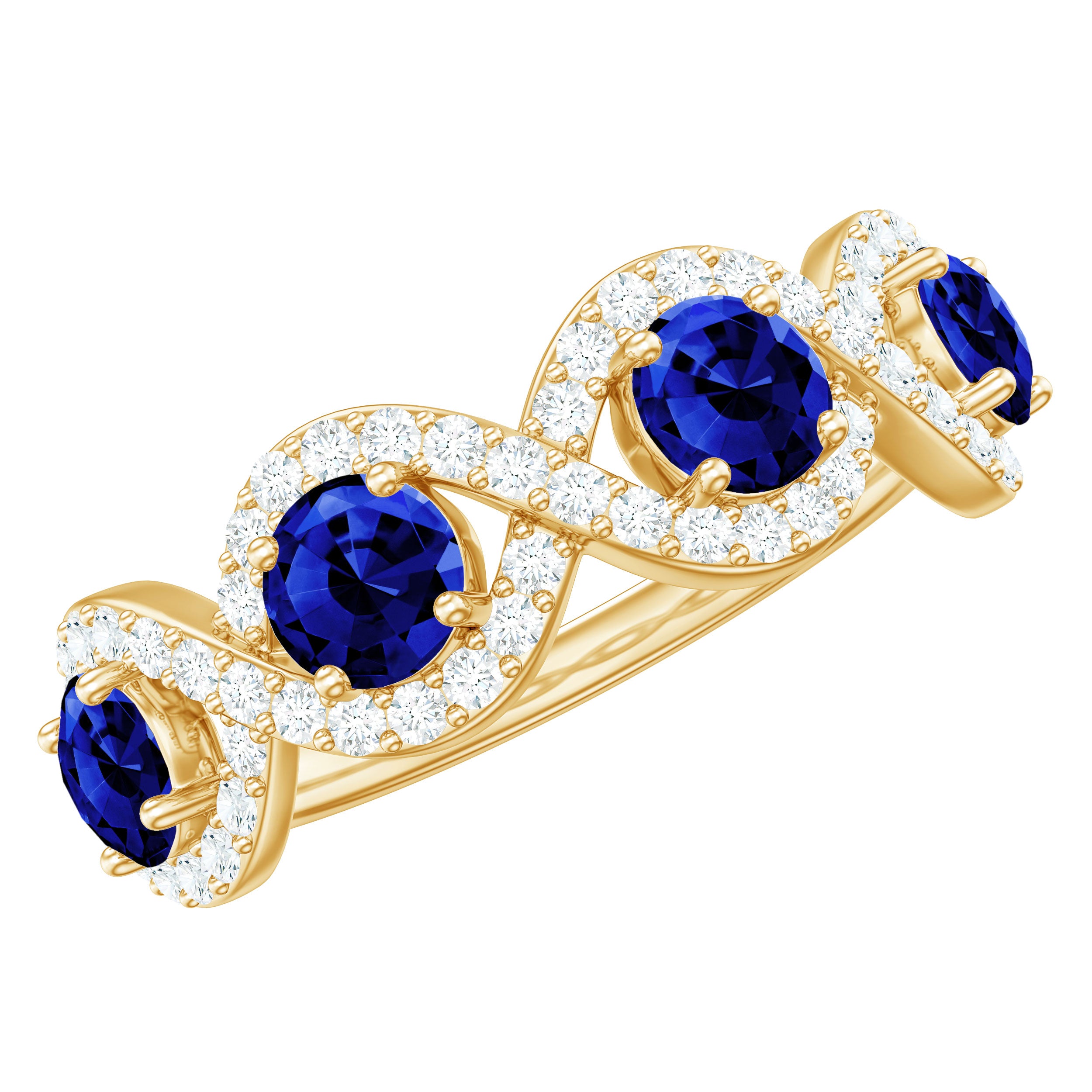 2 CT Lab-Created Blue Sapphire and Diamond Braided Half Eternity Band Ring