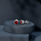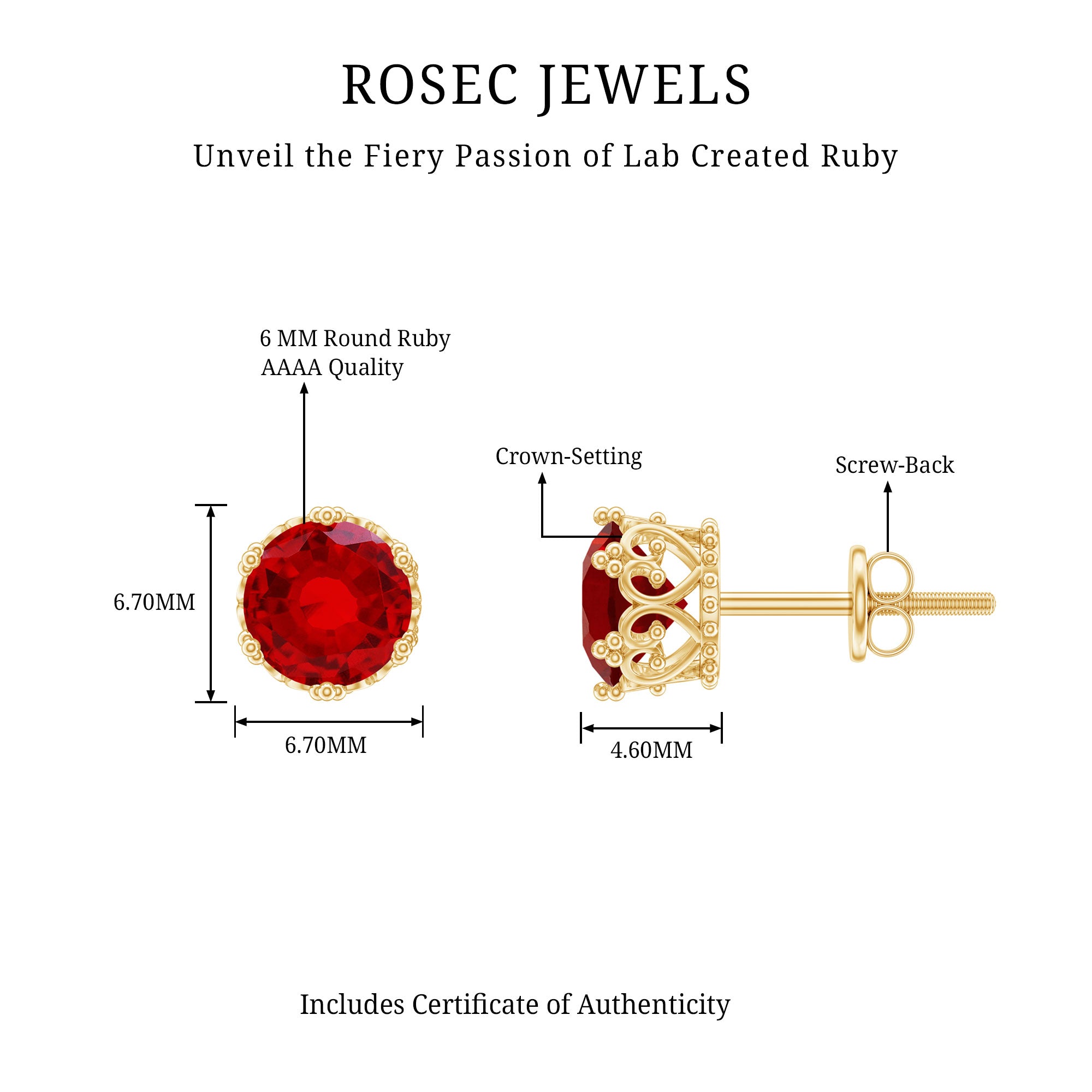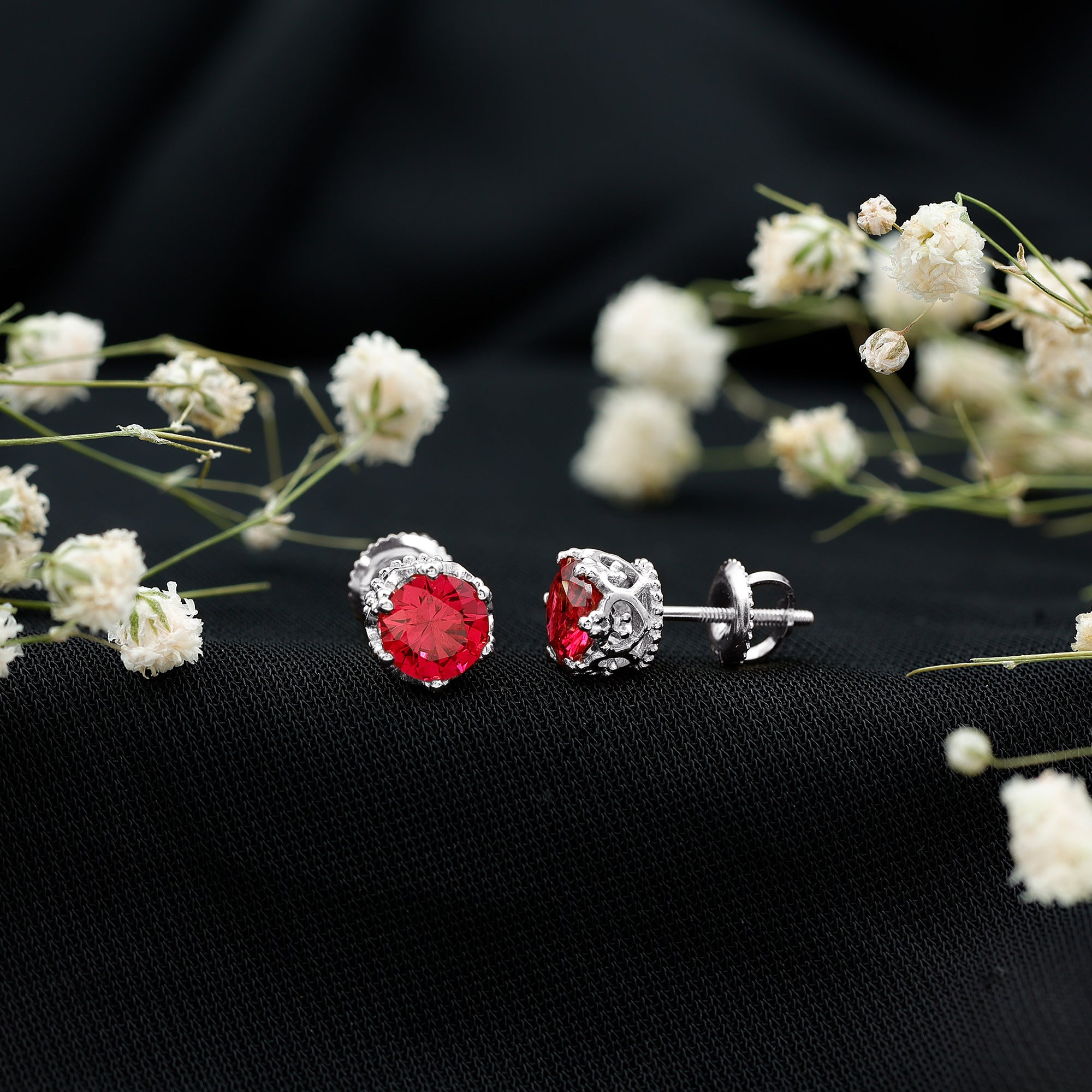 Presenting The Hand Picked Crown Stud Earring with Solitaire Gemstone to empower your Look. The Screw Back Finding Stud Earrings are embellished with 6 MM Round Cut Lab Created Ruby in Crown Setting studded as Single stone. Solid Gold composition of Crown Setting Creates a Charming Appeal.