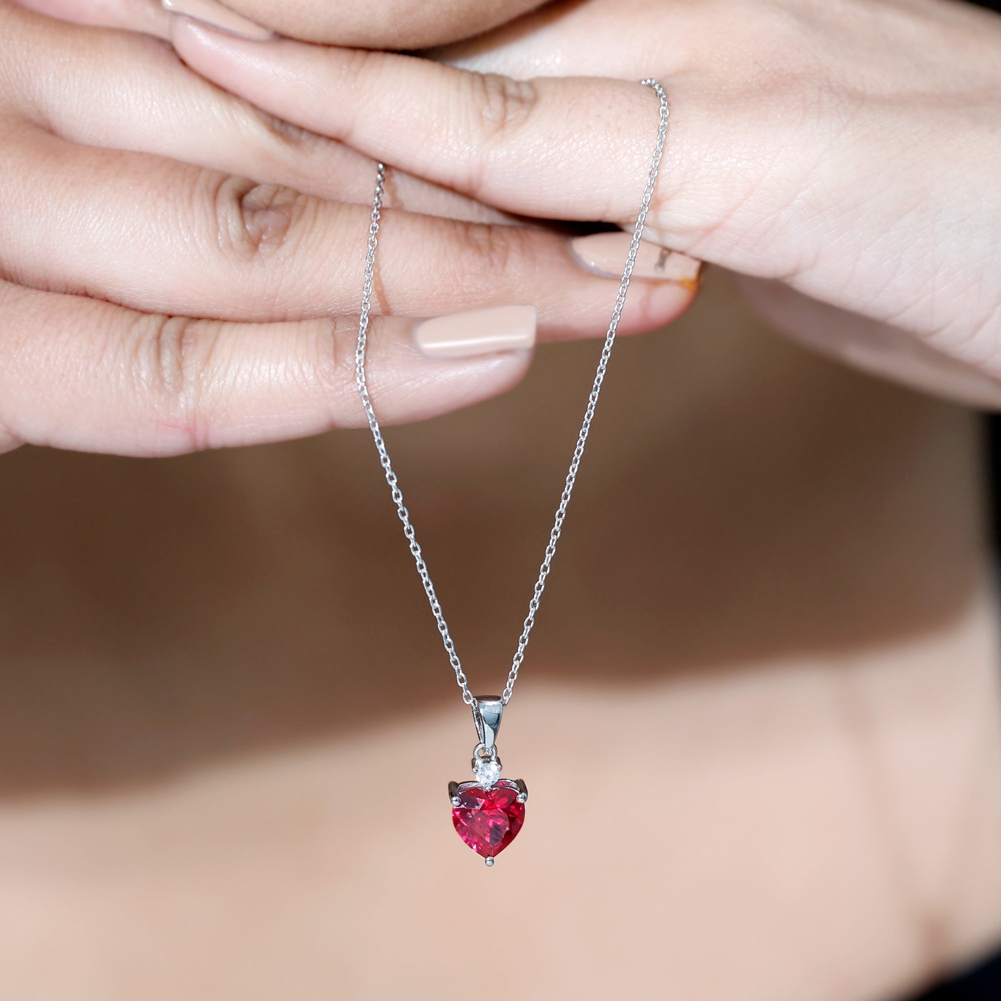 2 CT Lab Grown Ruby Heart Pendant Necklace with Moissanite