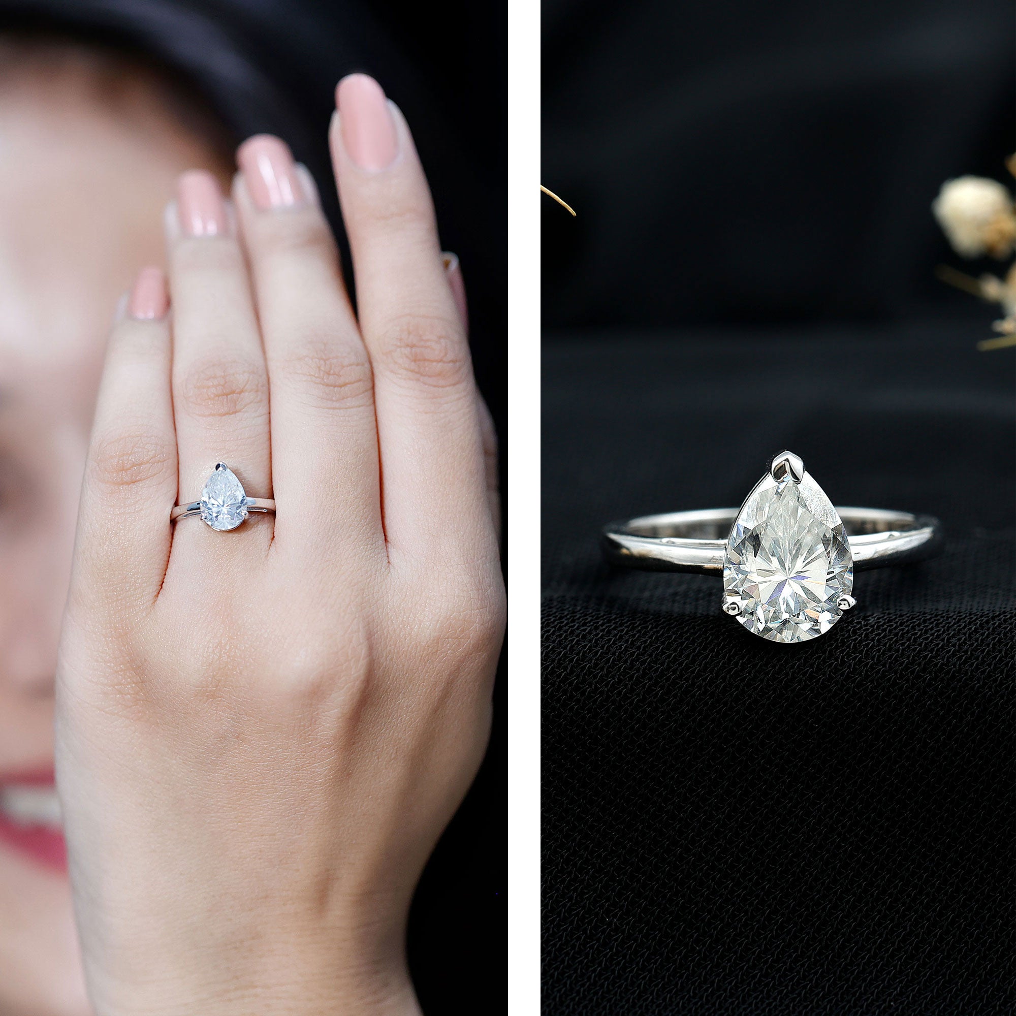 2 CT Moissanite Pear Shaped Engagement Ring for Women