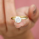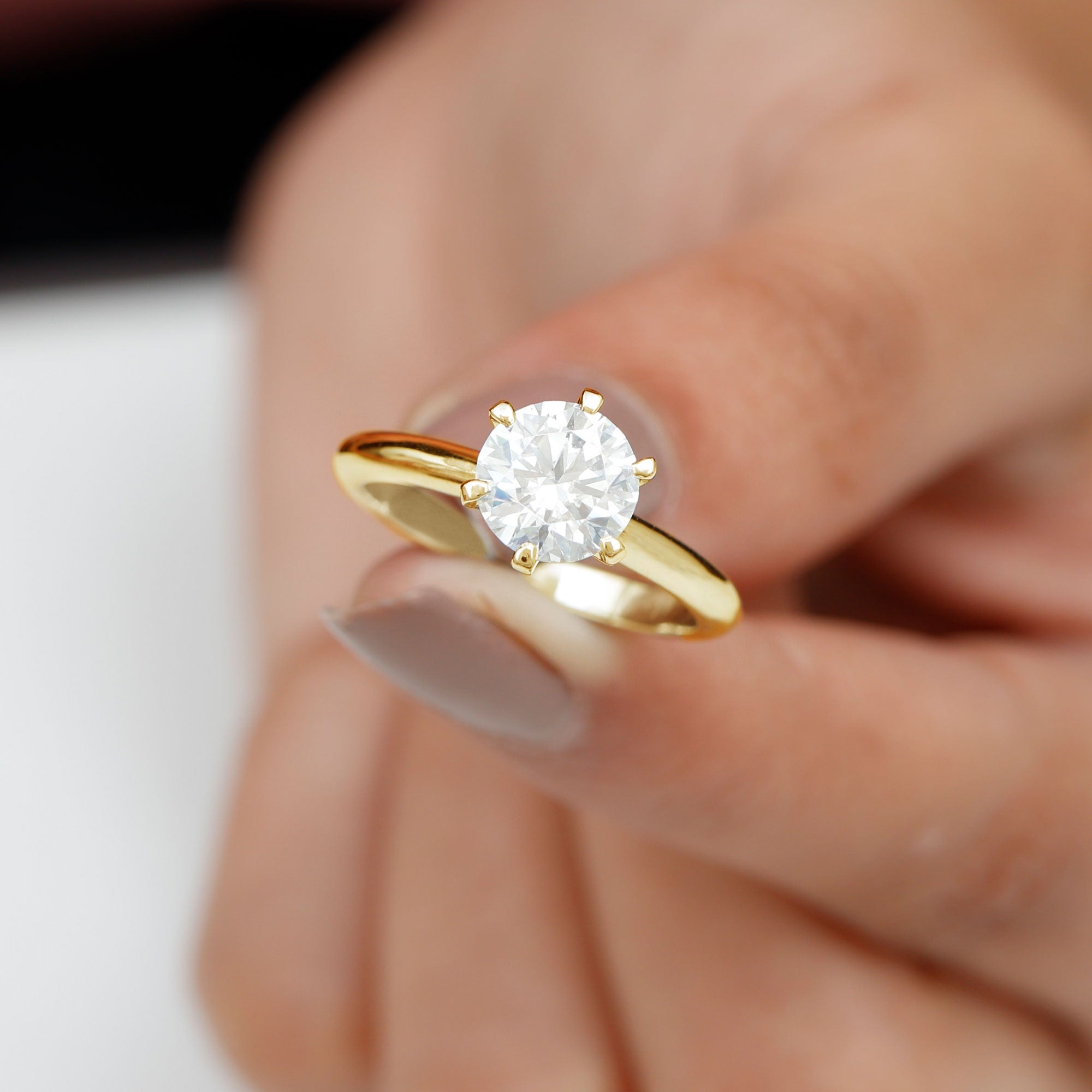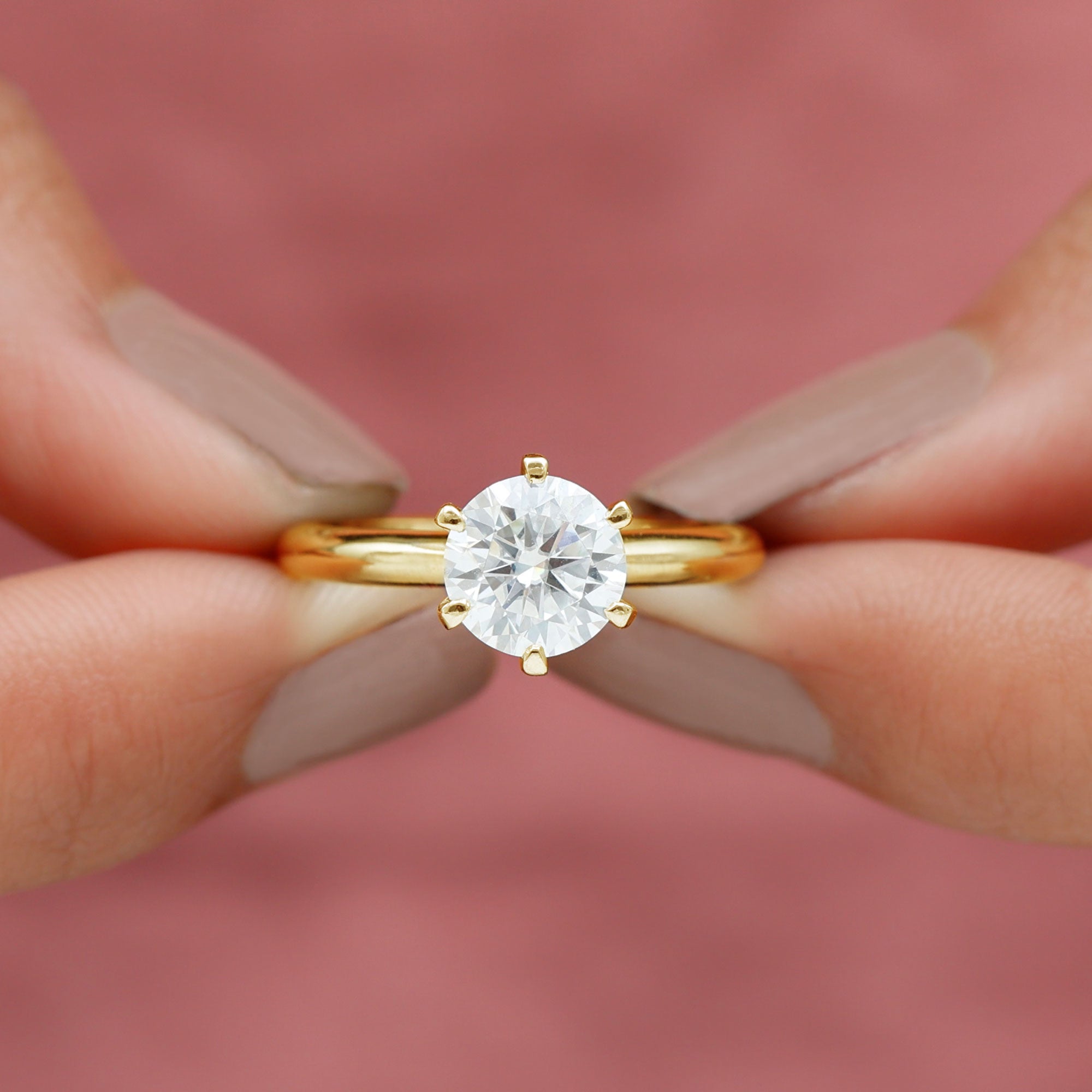 Elegant, refined, and full of meaning - this Solitaire Moissanite Engagement Ring is a true celebration of everlasting love. Designed for those who cherish simplicity with substance, this timeless piece features a brilliant 8 MM round-cut Moissanite, securely held in 6-prong setting. With a 2 carat moissanite weight, the center stone shines with dazzling D color and VS1 clarity, offering unmatched brilliance and fire. Ethically sourced and crafted with care, this Solitaire Engagement Ring is a radiant symbol of love that lasts a lifetime. Perfectly suited for any proposal or special occasion, this Round Engagement Ring is a blend of tradition and contemporary charm. Its clean, minimalist band allows the stunning center stone to take the spotlight, making it ideal for everyday wear or unforgettable moments. This Single Stone Ring is meticulously inspected for quality and comes with genuine certification for added confidence. Presented in our signature jewelry box, it’s ready for that unforgettable YES moment or to mark a love that continues to grow.