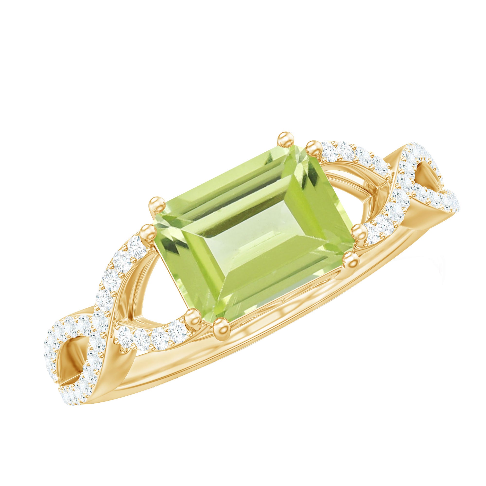 2 CT Emerald Cut Peridot East West Engagement Ring with Diamond