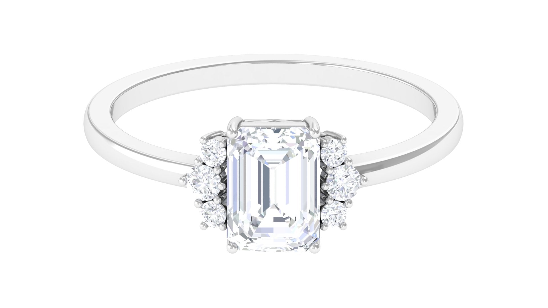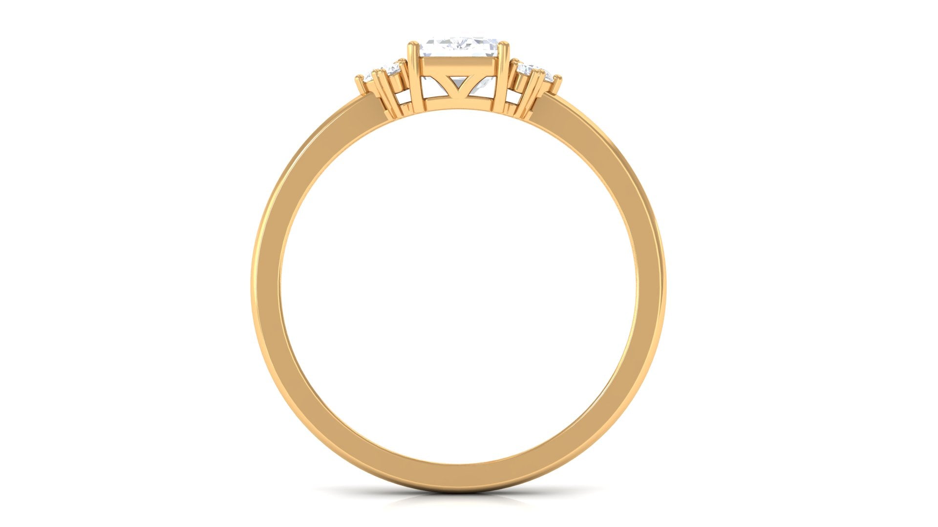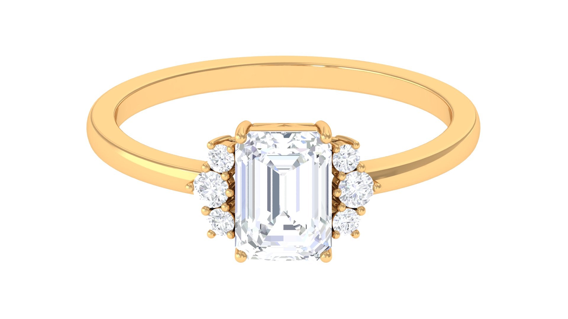 Whether worn as an Engagement Ring or simply a gorgeous gemstone addition, this shimmering Solitaire Engagement Ring is sure to make a standout addition to any jewelry collection. This modern and sophisticated Zircon Engagement Ring is crafted in gold, features an octagon cut simulated diamond set in prong setting with round cut zircon trio on both side of the center stone.