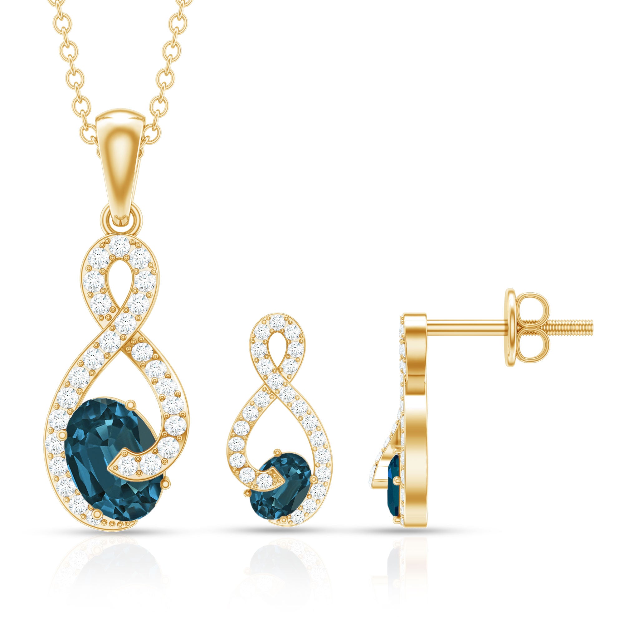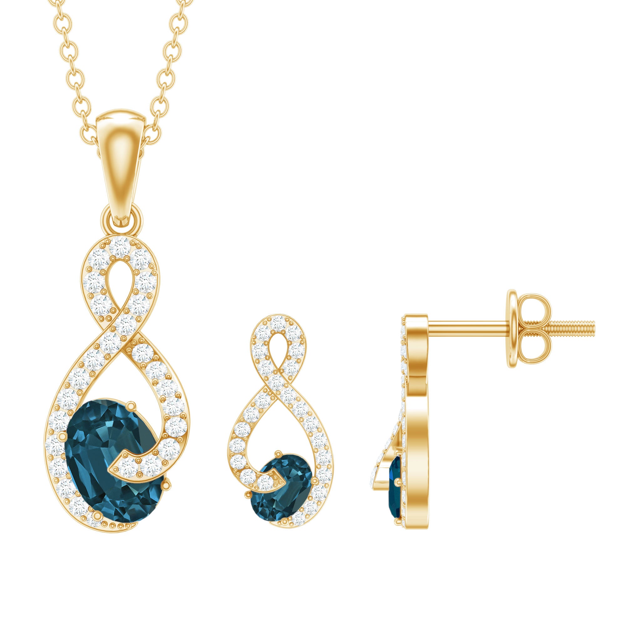 2 CT Oval Cut London Blue Topaz Solitaire Infinity jewelry Set with Diamond stones