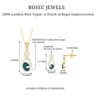 This Gorgeous London Blue Topaz and Diamond jewelry Set is crafted with love for your lady love. It is embellished with Oval Shape London Blue Topaz as Solitaire and Round Shape Diamond stones forming an Infinity Pattern in Prong Setting with Solid Gold. Get this Beautiful Pendant Earring Set and surprise your love this Valentines.