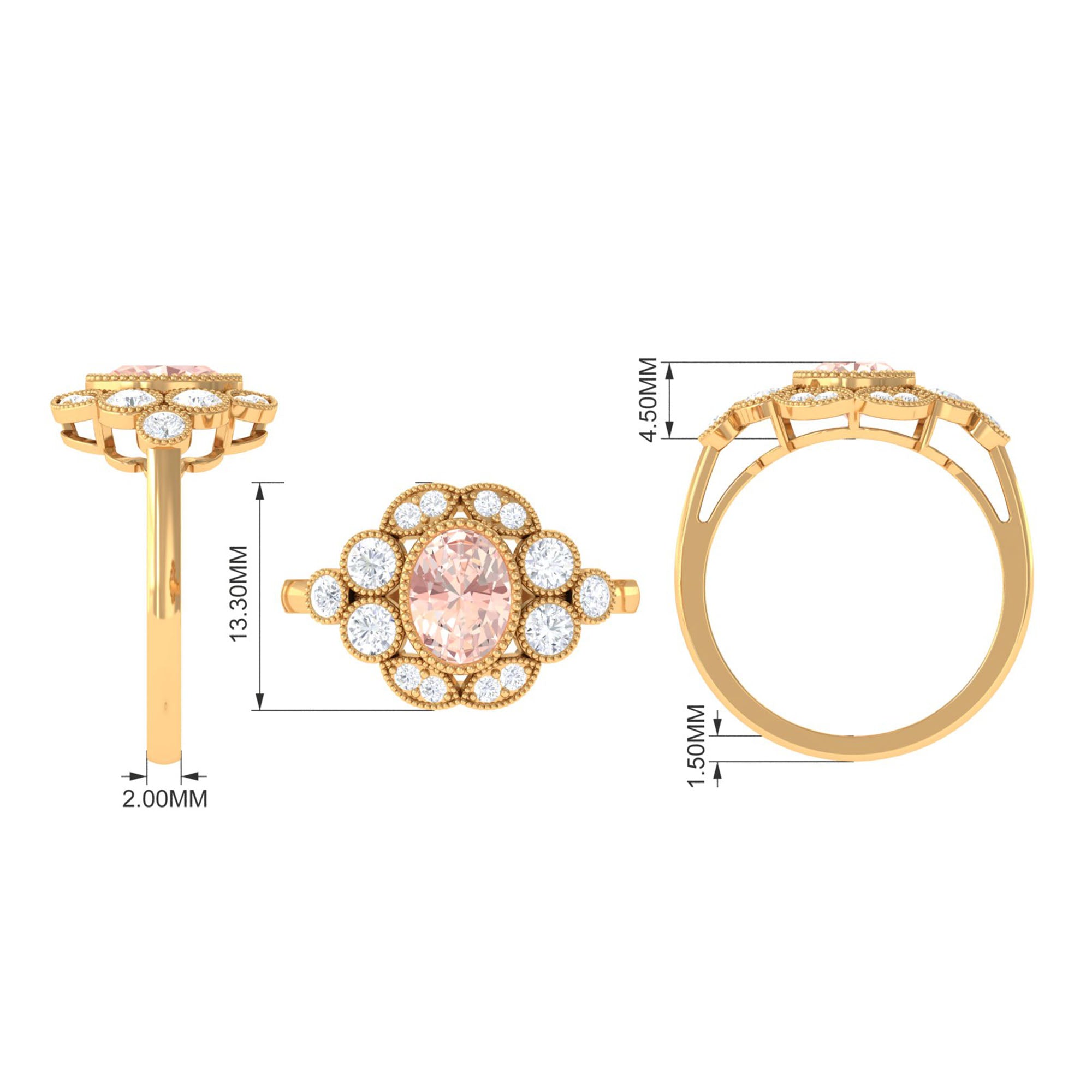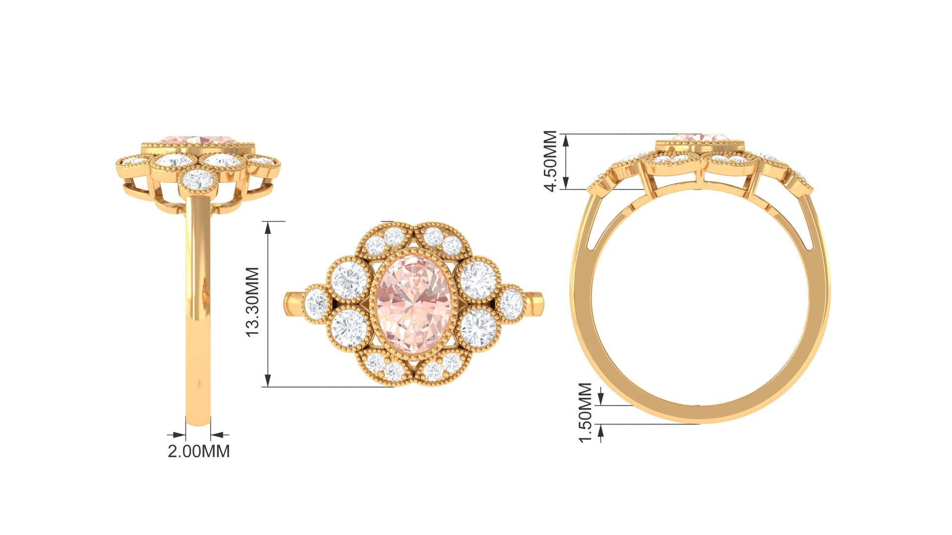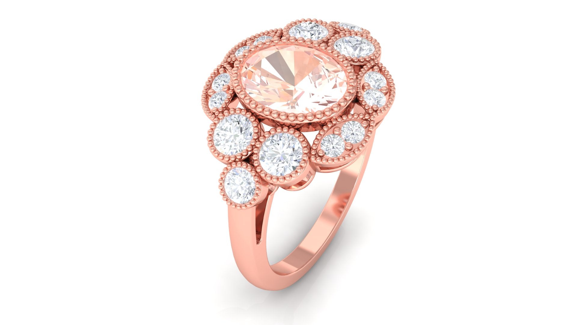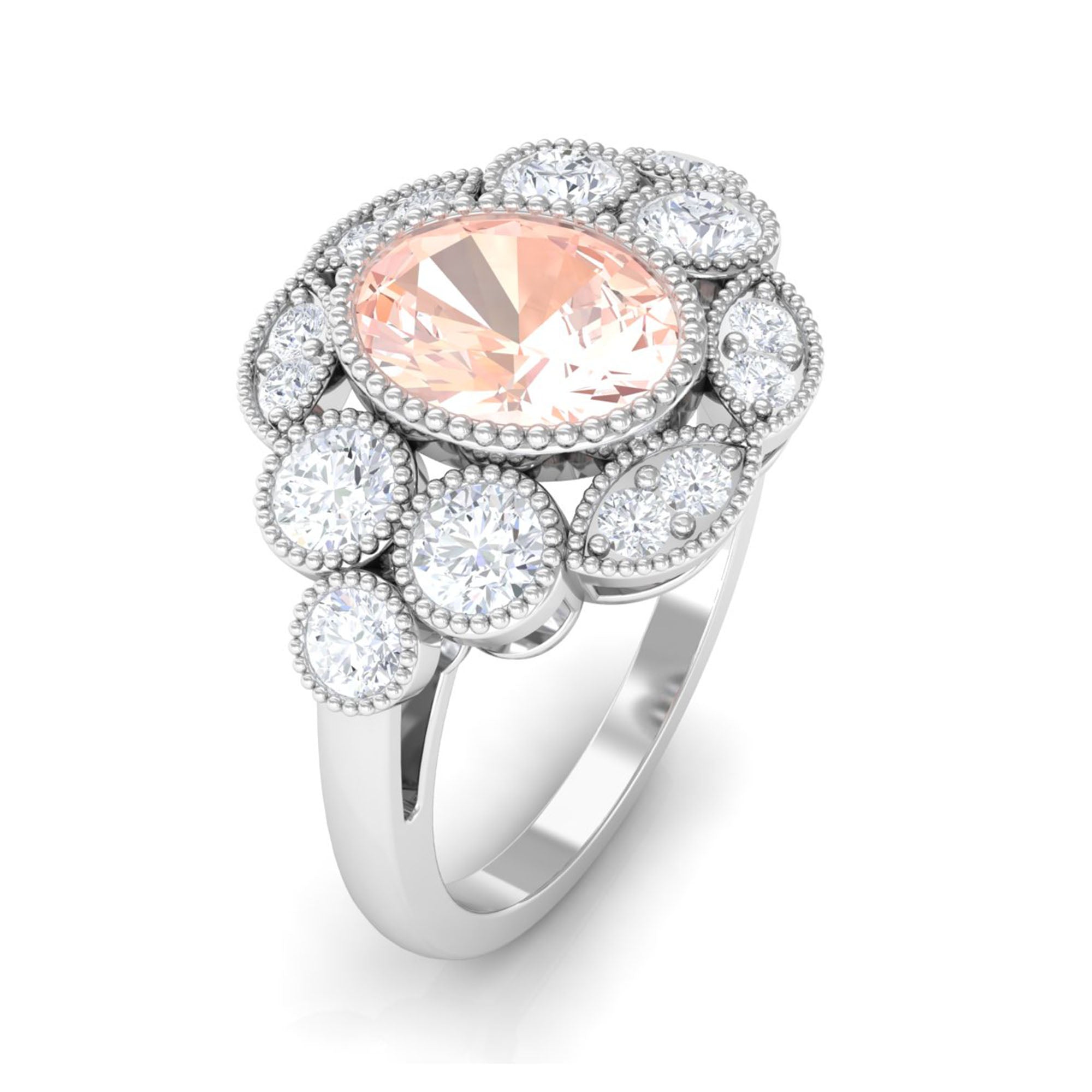 2 CT Oval Morganite Statement Engagement Ring with Diamond Halo