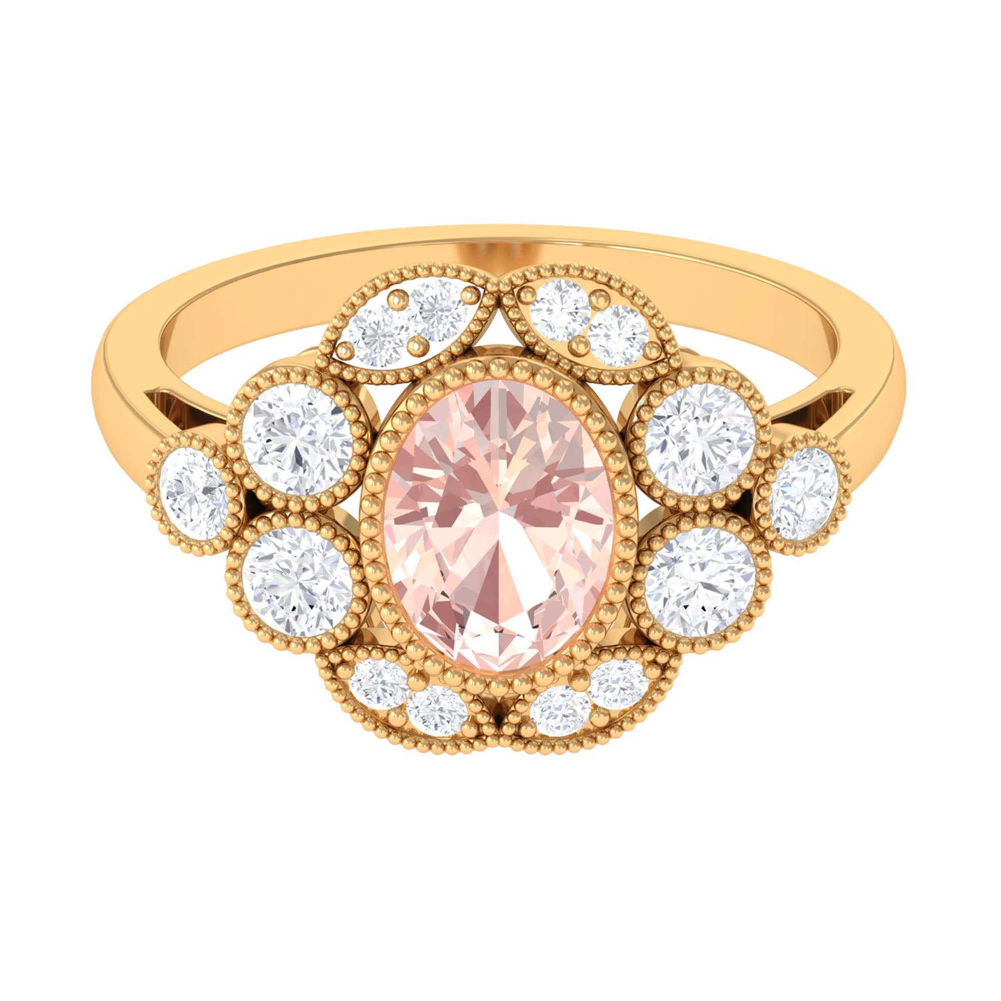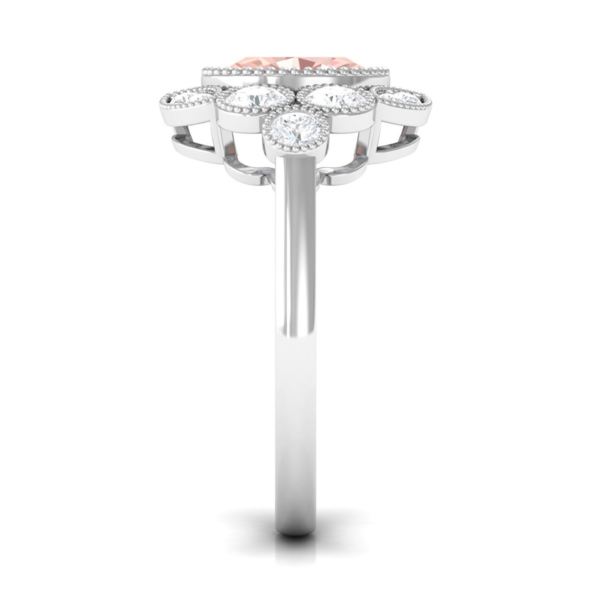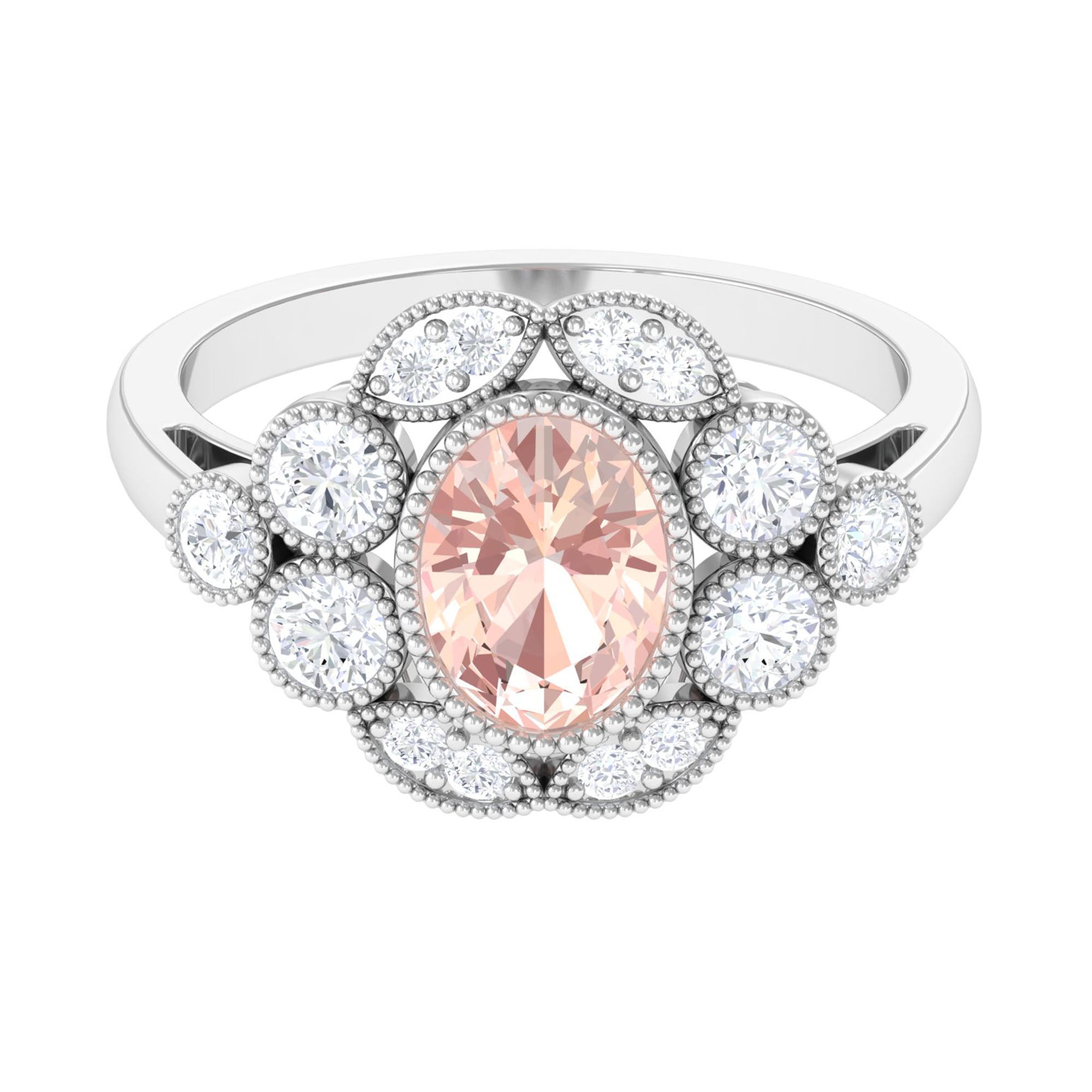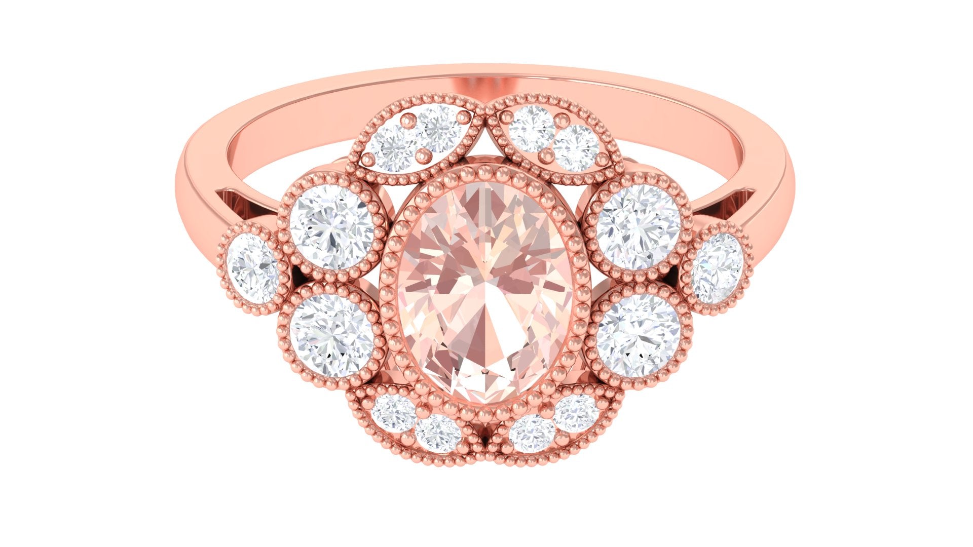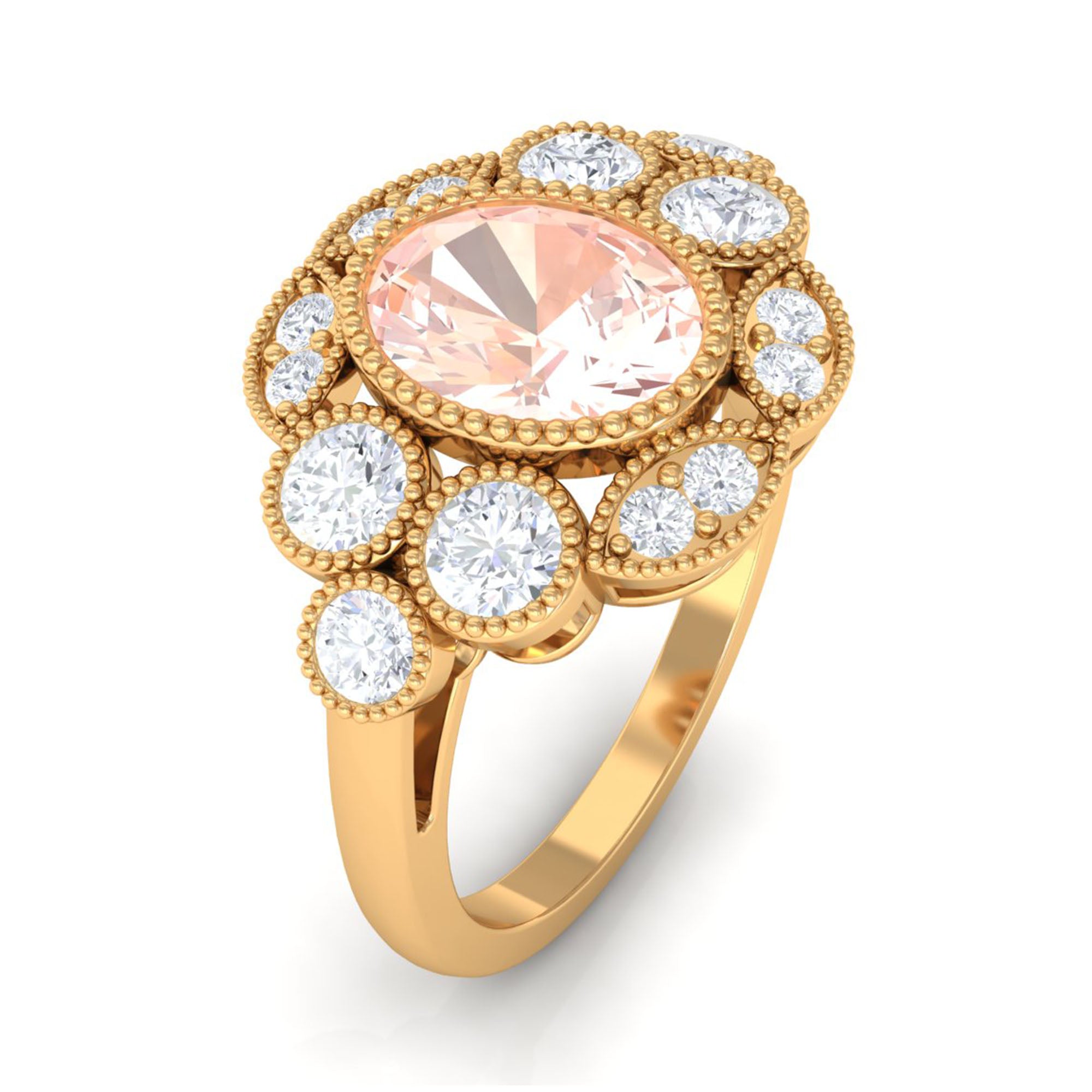 2 CT Oval Morganite Statement Engagement Ring with Diamond Halo