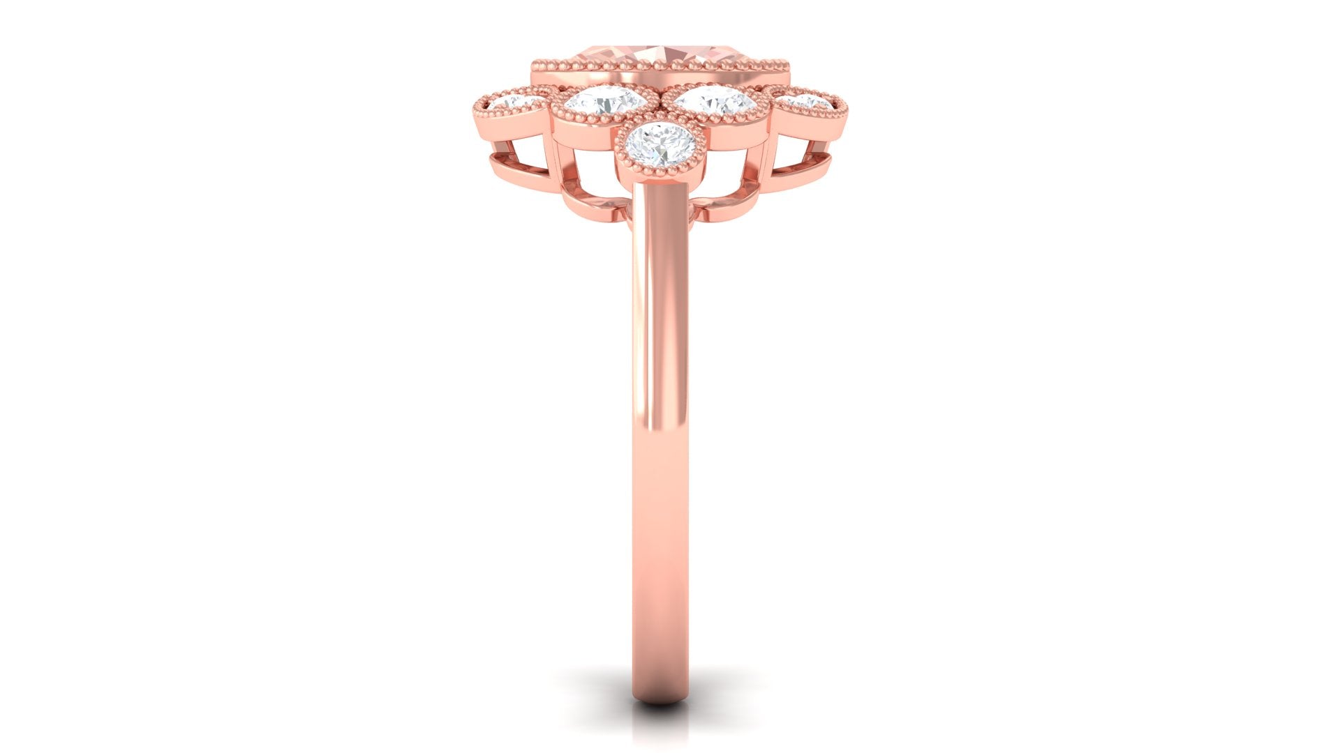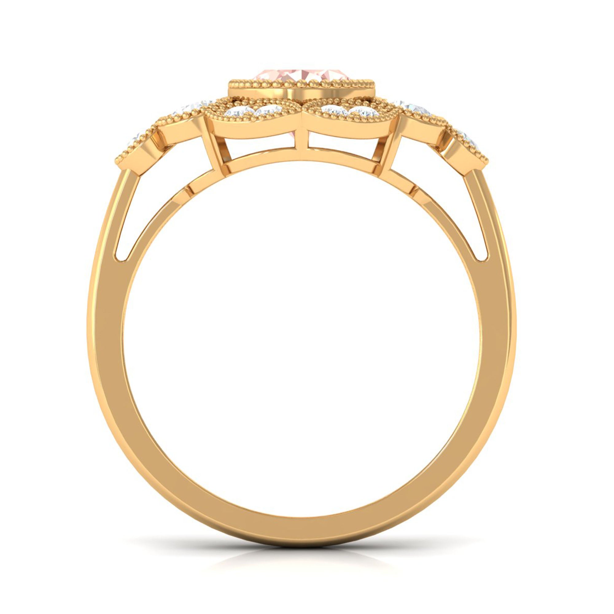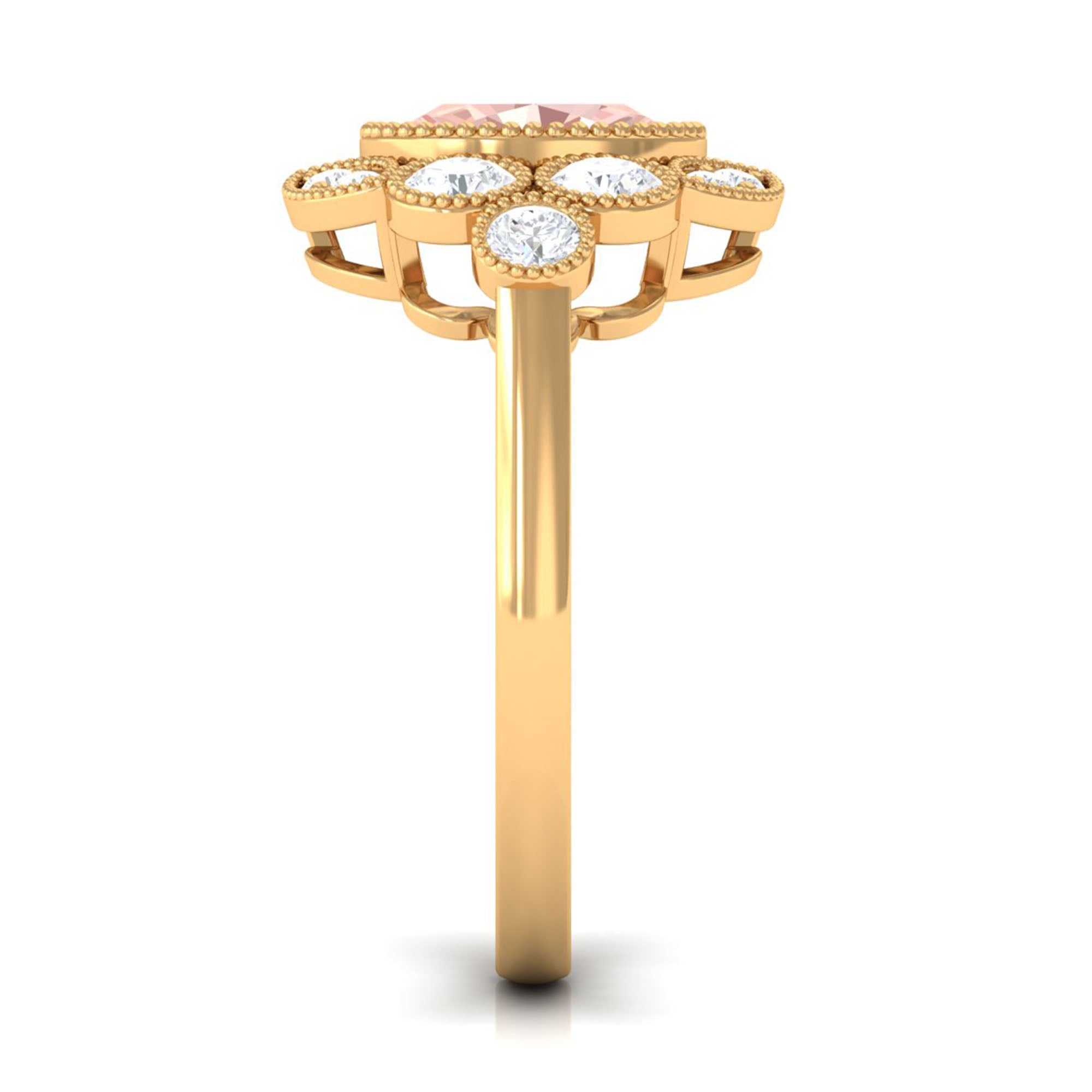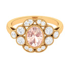Make a grand and unforgettable statement of your love with this breathtaking Statement Engagement Ring. Featuring a dazzling Oval Cut Morganite at the center, surrounded by a halo of shimmering Round Diamond stones, this ring is an enchanting piece of fine jewelry that will leave your lady overwhelmed. The Gold Beaded Details of the ring add a touch of elegance and sophistication, making it even more exquisite and beautiful. Give this extraordinary Oval Morganite Ring to your special someone and let her know just how much she means to you.