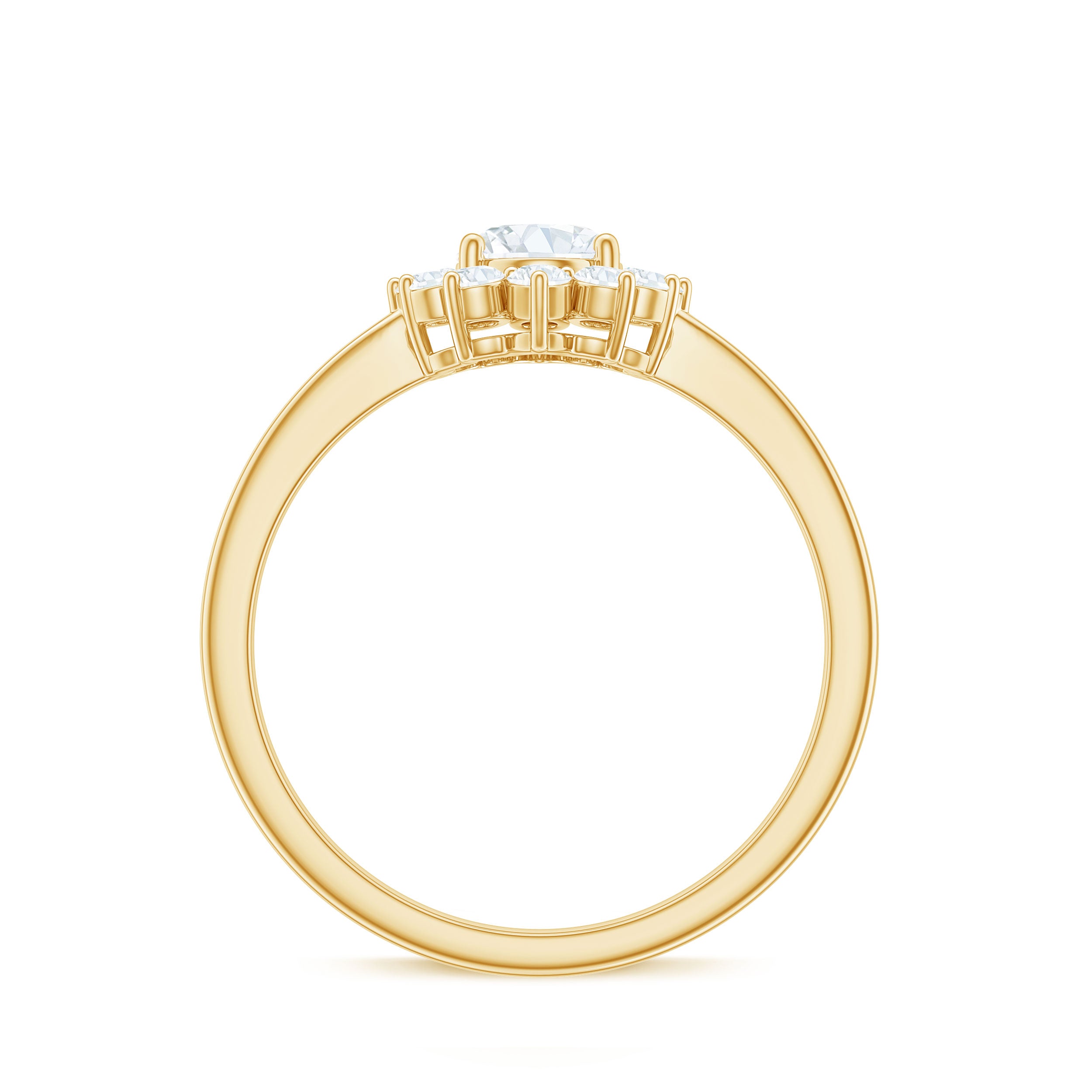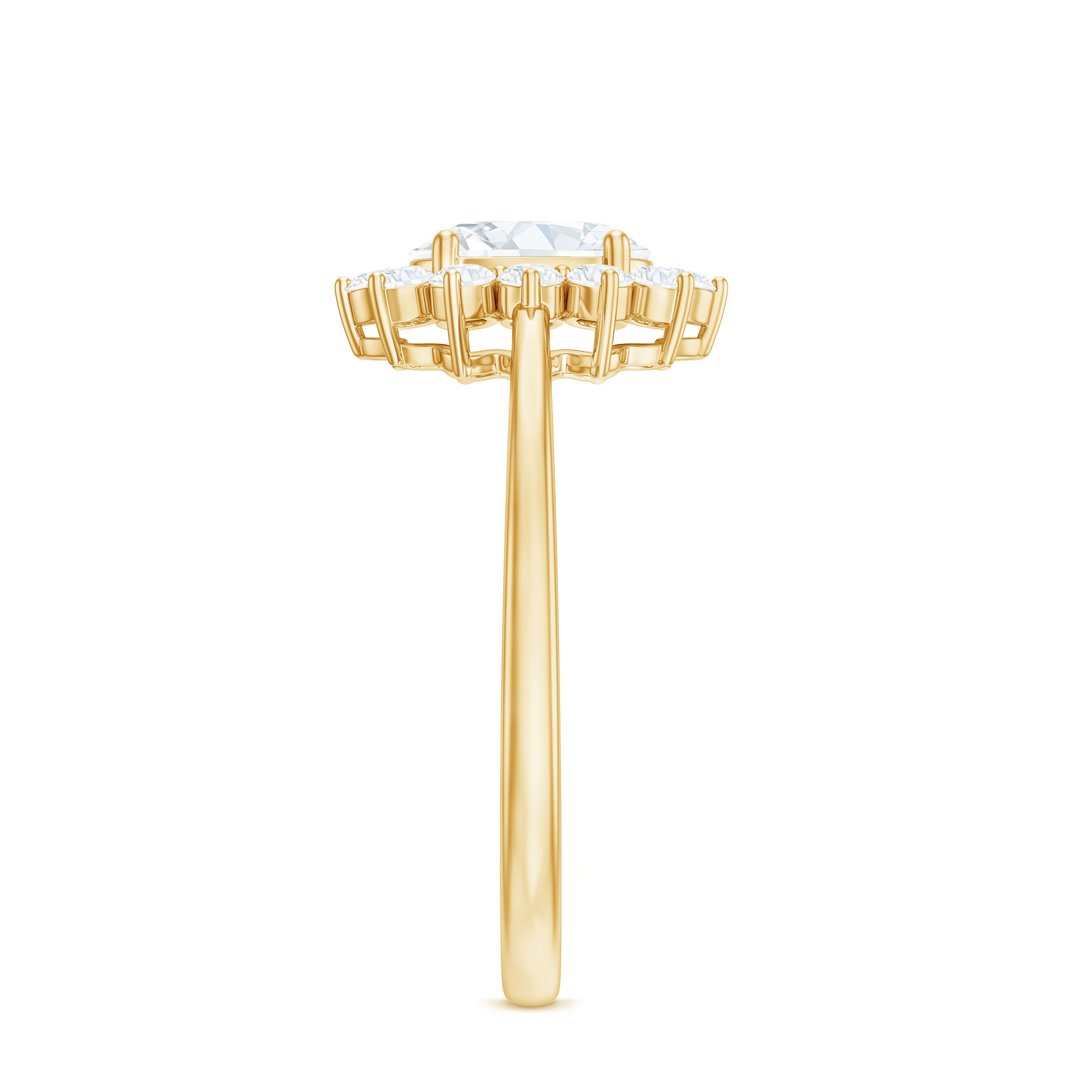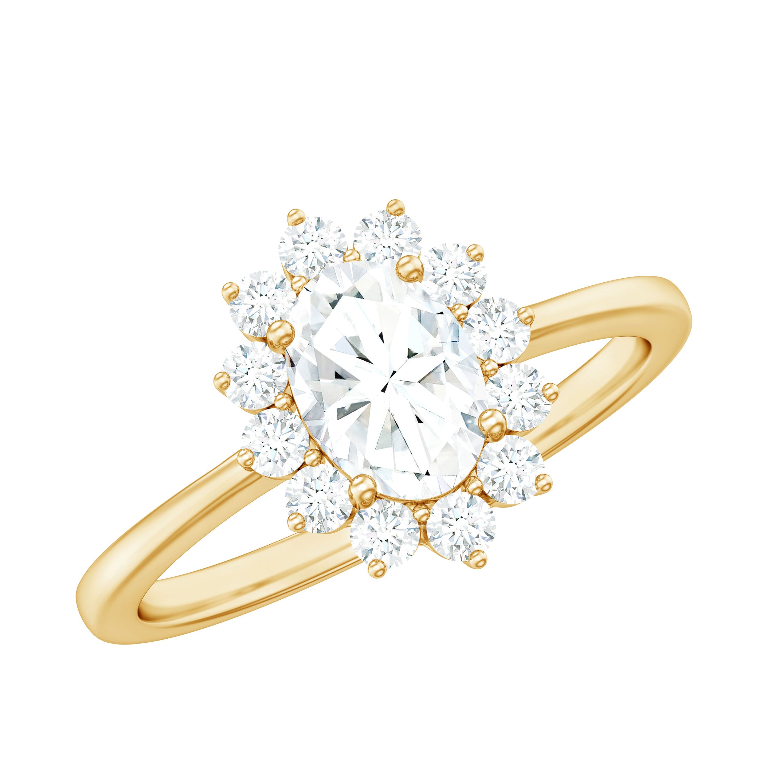 Make her feel like a princess on your special day with this Princess Diana Inspired Ring adorned with Oval Shape Zircon is set as a Solitaire with dainty zircons creating a Halo. This Engagement Ring is crafted with Solid Gold for a luxurious appeal.