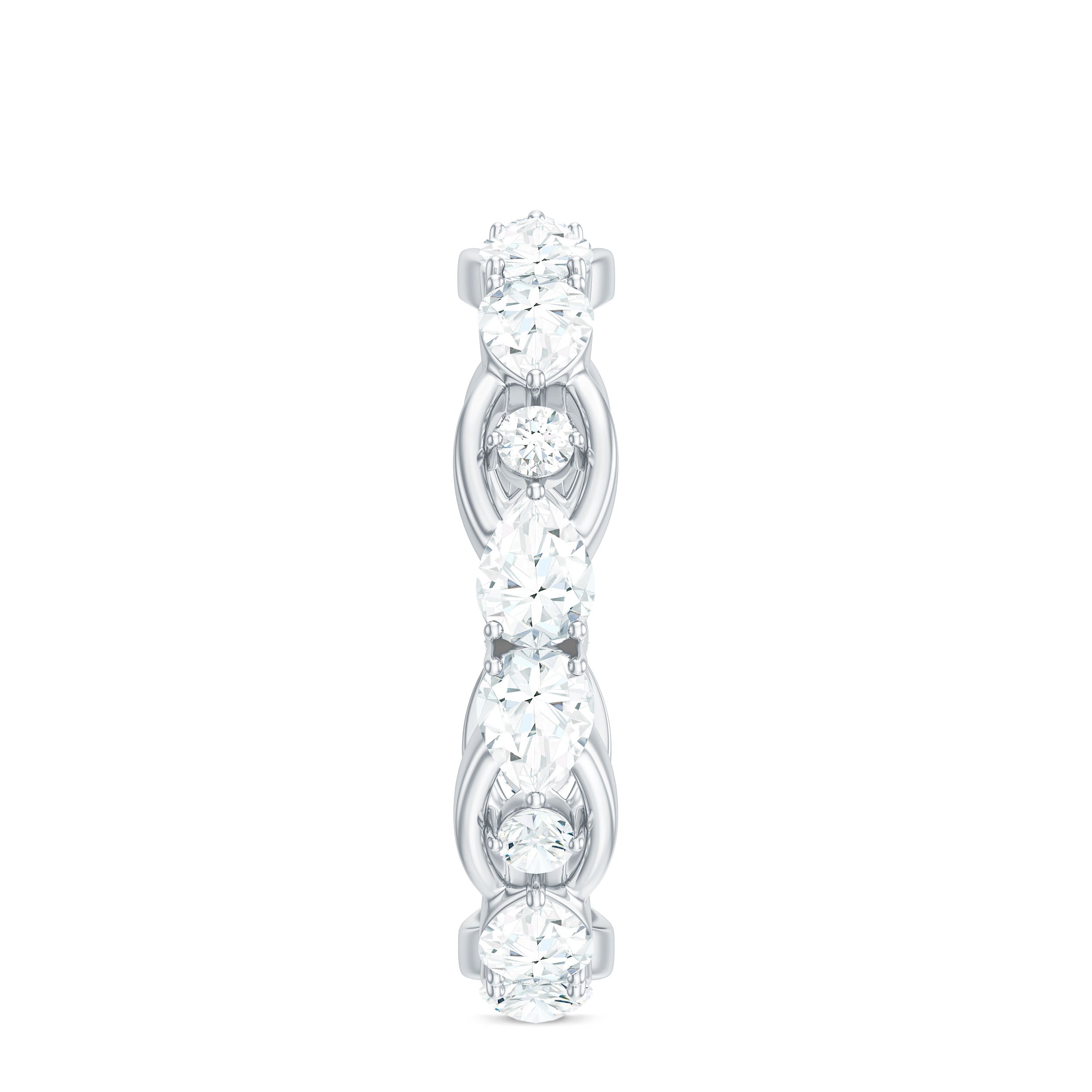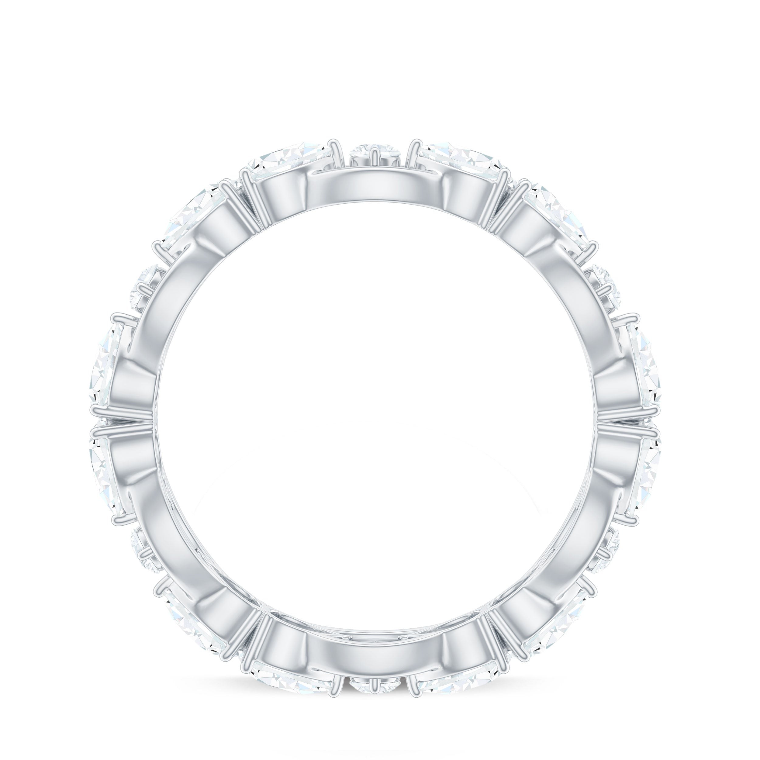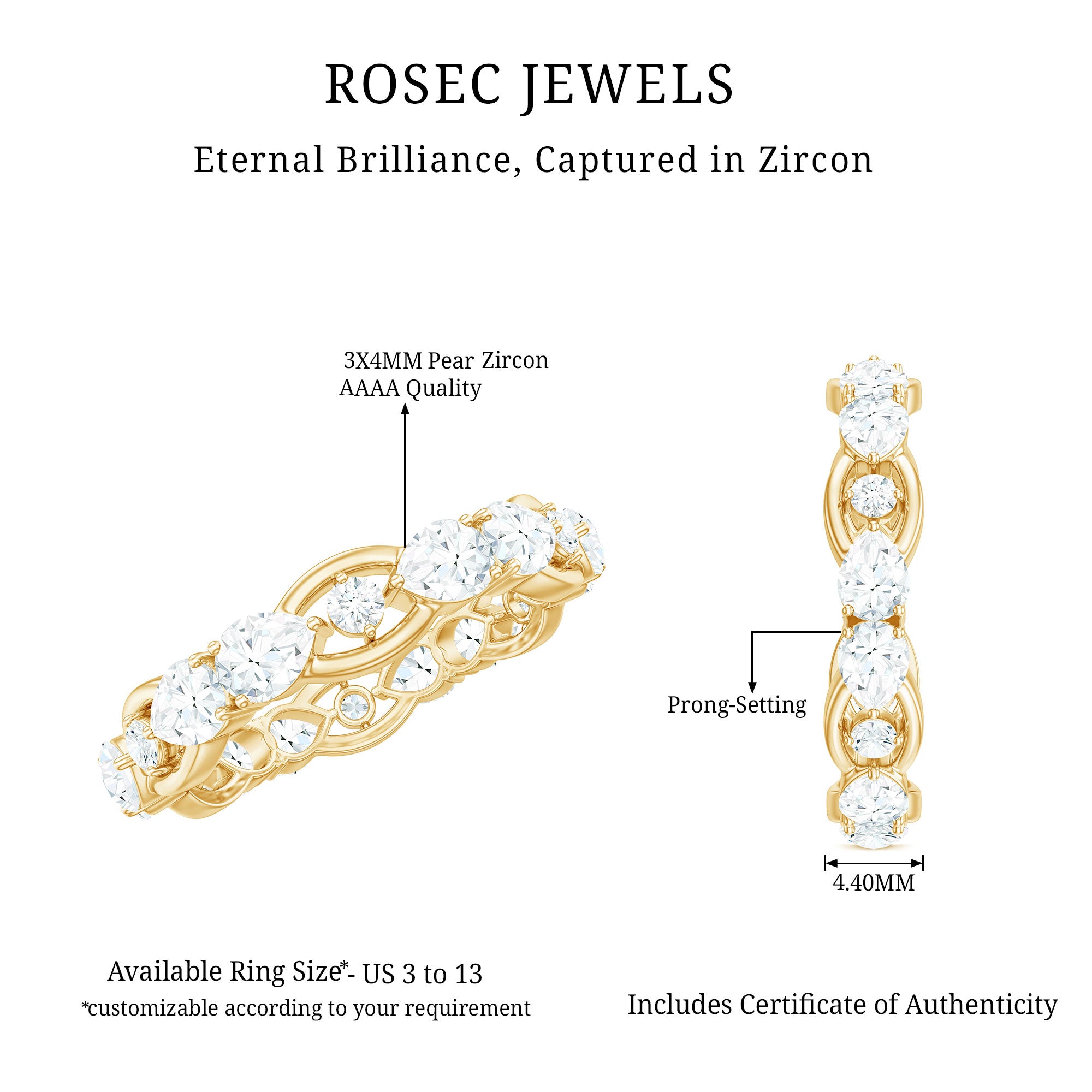 This eternity ring features Round Cut Zircon in Prong Setting with Pear Shape Zircon in East West Style. The East-West setting gives the ring a modern and edgy look, perfect for those who want a unique and eye-catching piece of jewelry. The eternity style also symbolizes never-ending love and commitment, making it an ideal gift for a special occasion or anniversary.