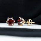 2 CT Round Cut Garnet Floral Solitaire Stud Earrings