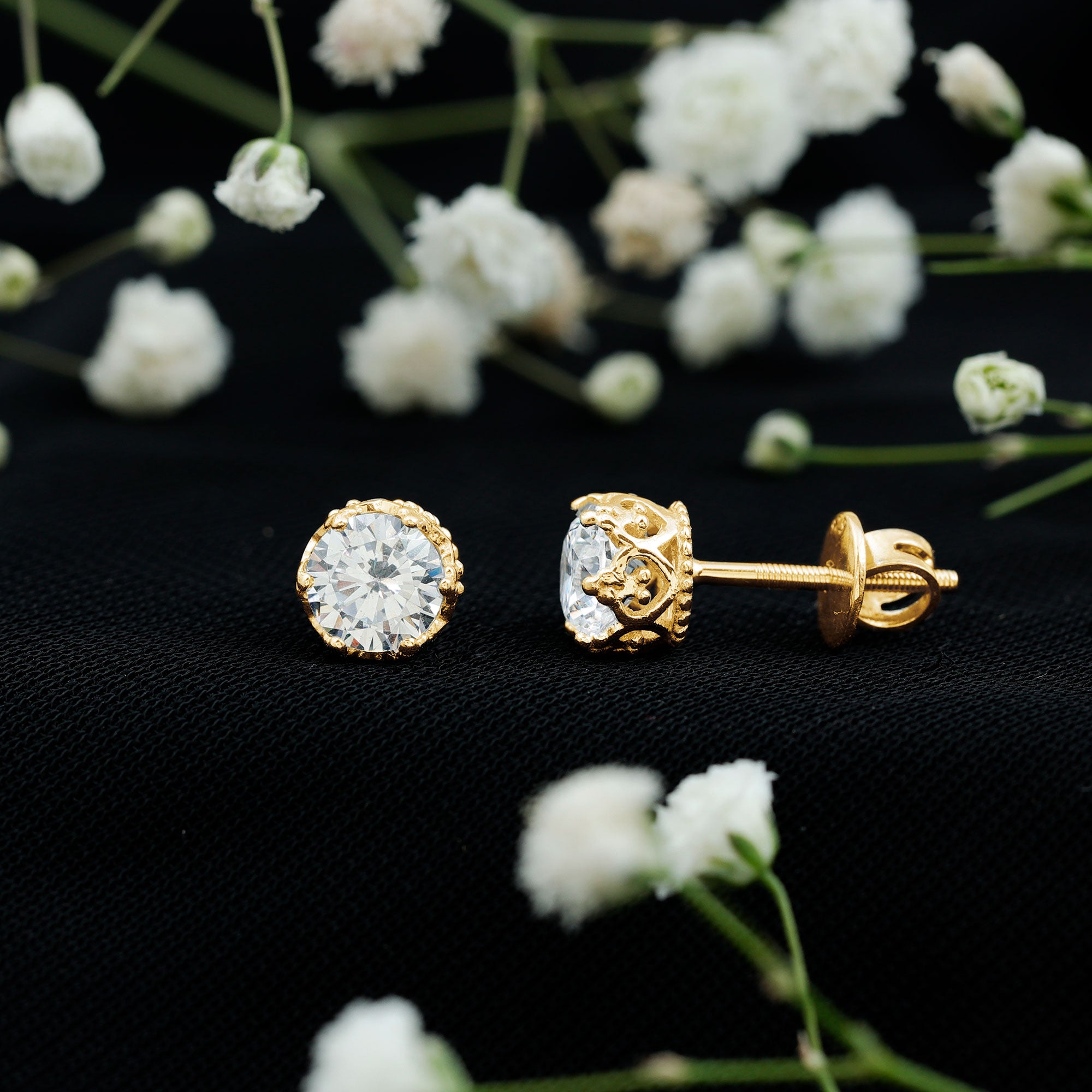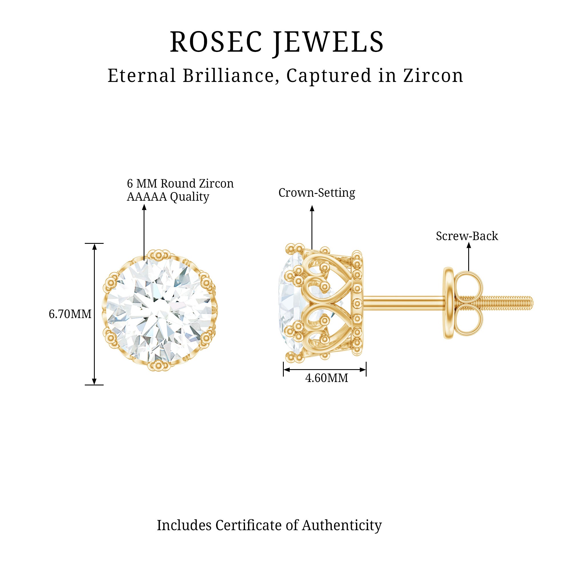 Turn heads wherever you go with these stunning Solitaire Stud Earrings that bring classic sparkle with a royal twist. Each earring features a brilliant 6 MM cubic zirconia of AAAAA quality, with a total weight of approximately 2 carats (1 carat per stud). The stones are designed to catch the light beautifully, giving off a dazzling shine that feels elegant and eye-catching. The crown style setting adds a regal touch, lifting the cubic zirconia just enough to enhance its brilliance and create that irresistible glow. Adding even more charm, the metal is finished with delicate beaded detailing that brings in a hint of traditional craftsmanship while keeping the overall look modern and stylish. It is a lovely blend of old-world inspiration and contemporary design. Designed for comfort and confidence, these Cubic Zirconia Earrings come with secure screw-back closures, making them ideal for all-day wear. Whether you are dressing up for a special occasion or adding a touch to your everyday outfits, these CZ Stud Earrings fit right in. Timeless, glamorous, and easy to love, these Everyday Earrings are a must-have for anyone who enjoys jewelry with a royal feel and lasting sparkle.