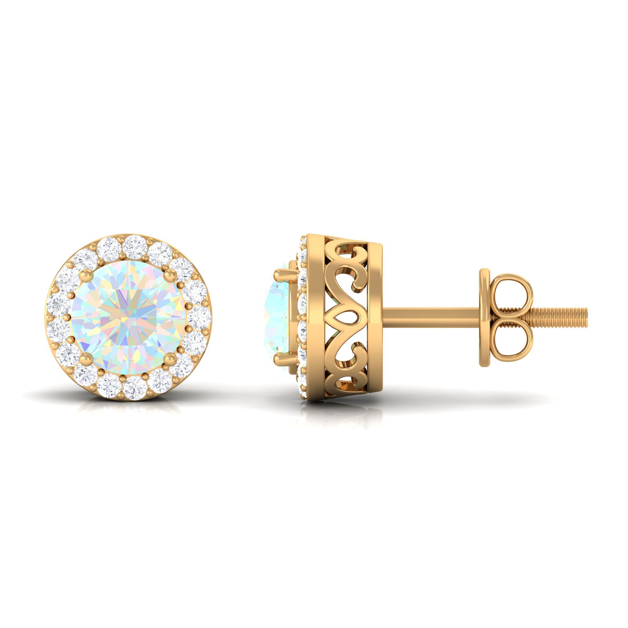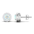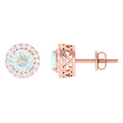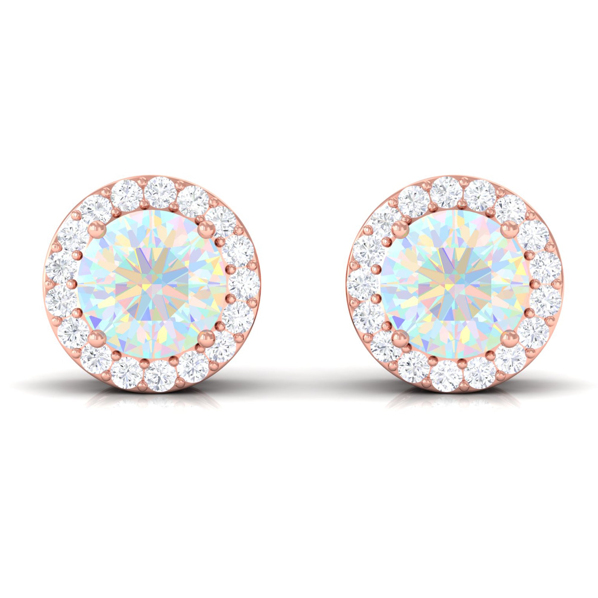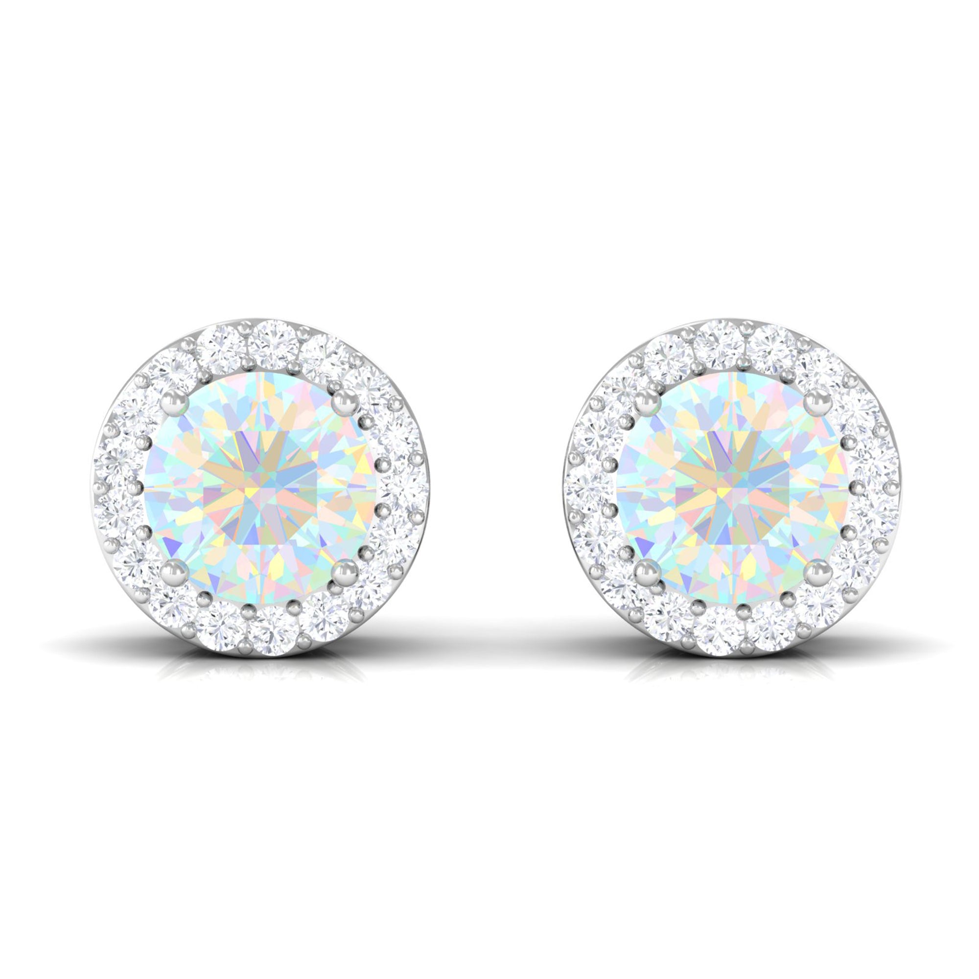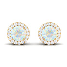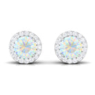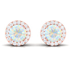 2 CT Round Ethiopian Opal Minimal Stud Earrings with Diamond Halo in Prong Setting