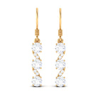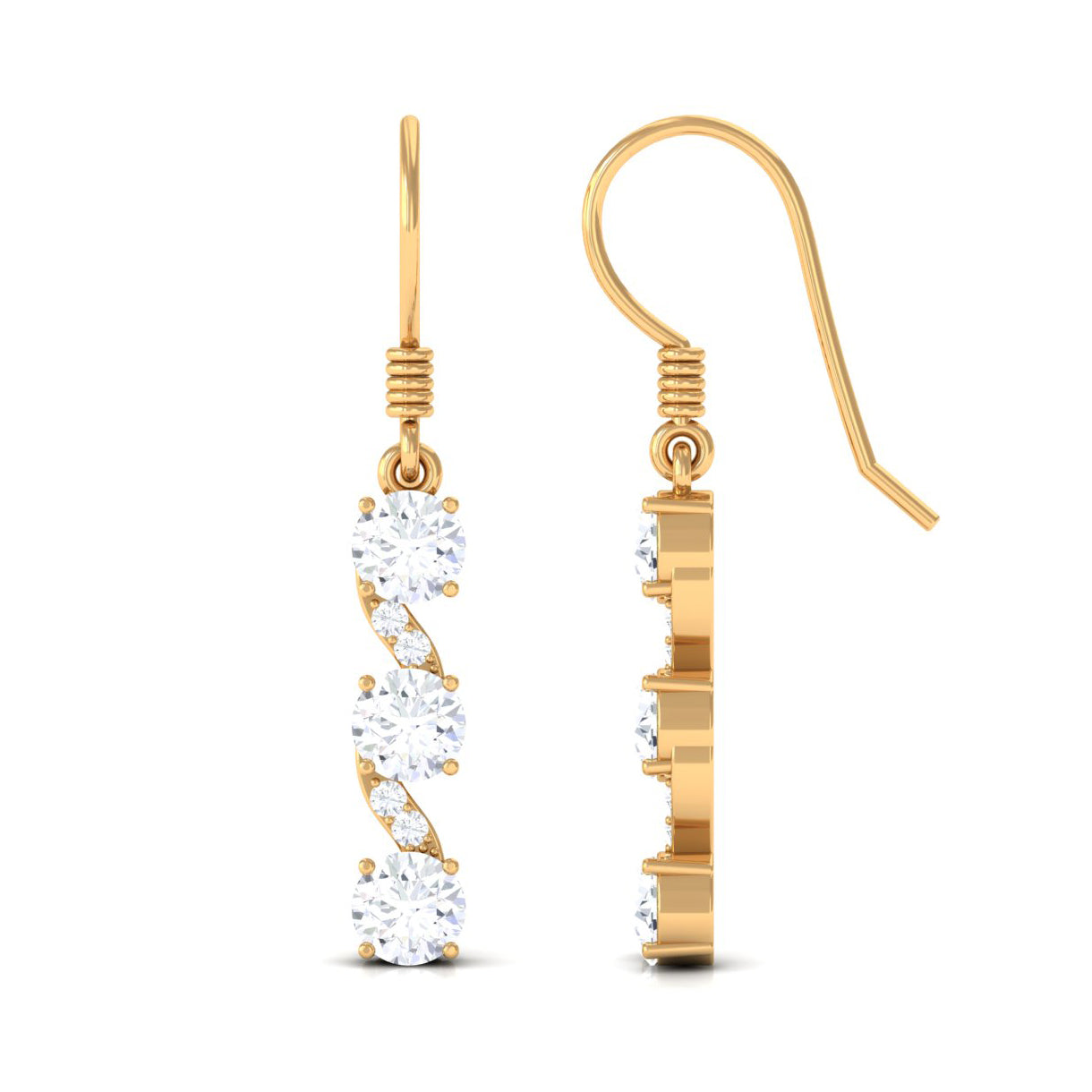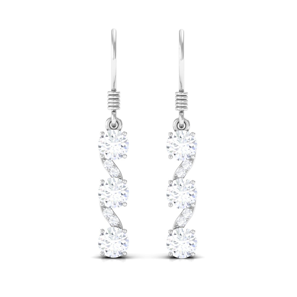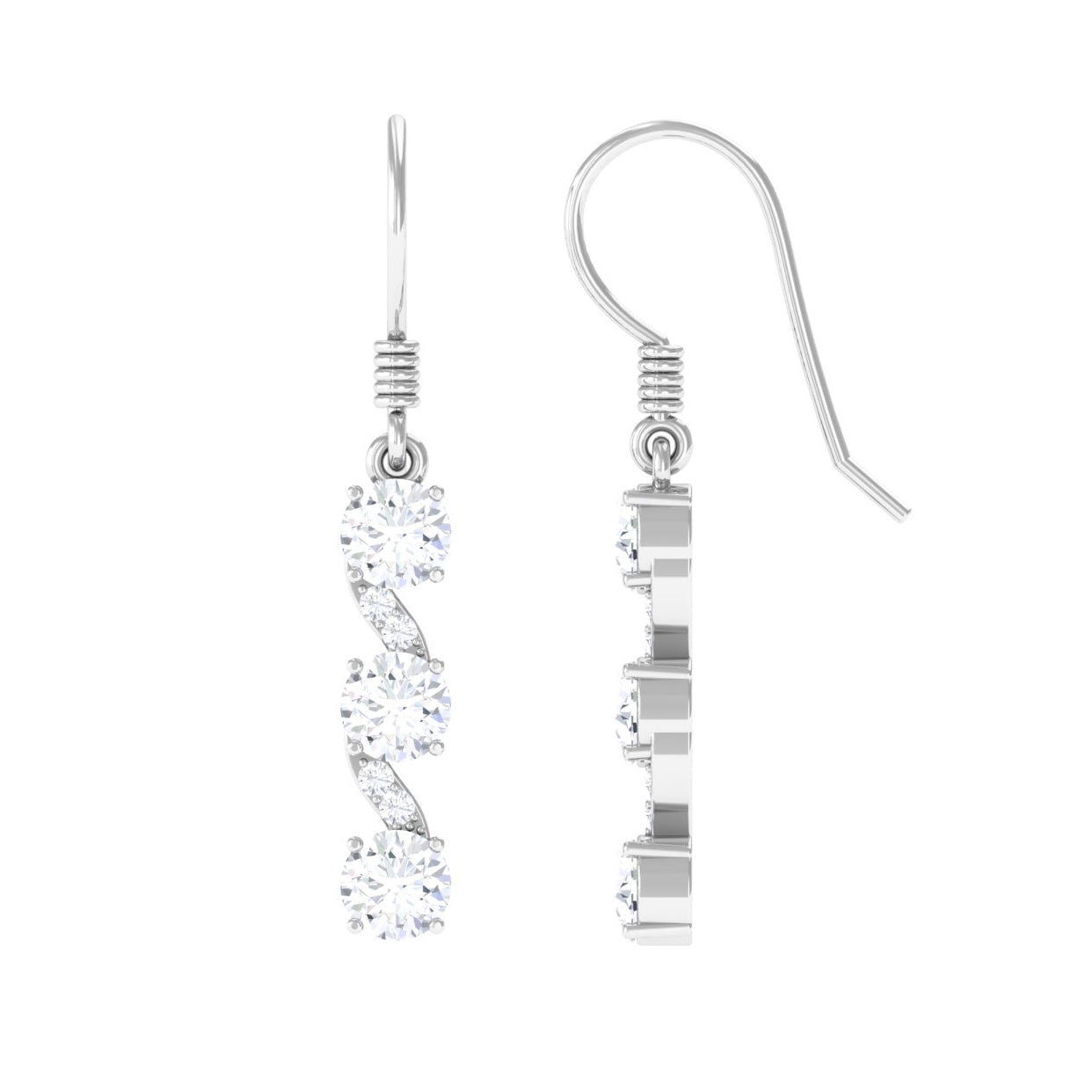 Elevate your style with round Moissanite three stone dangle drop earrings. A captivating design that combines sophistication and brilliance.