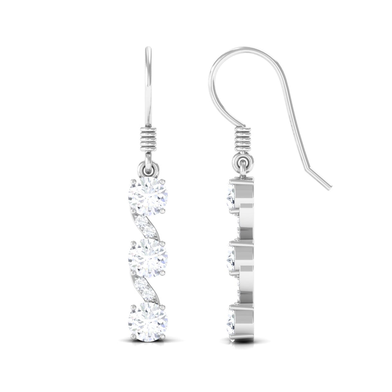 2 CT Round Moissanite Three Stone Dangle Drop Earrings