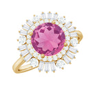 2 CT Round Pink Tourmaline Cocktail Ring with Moissanite Double Halo
